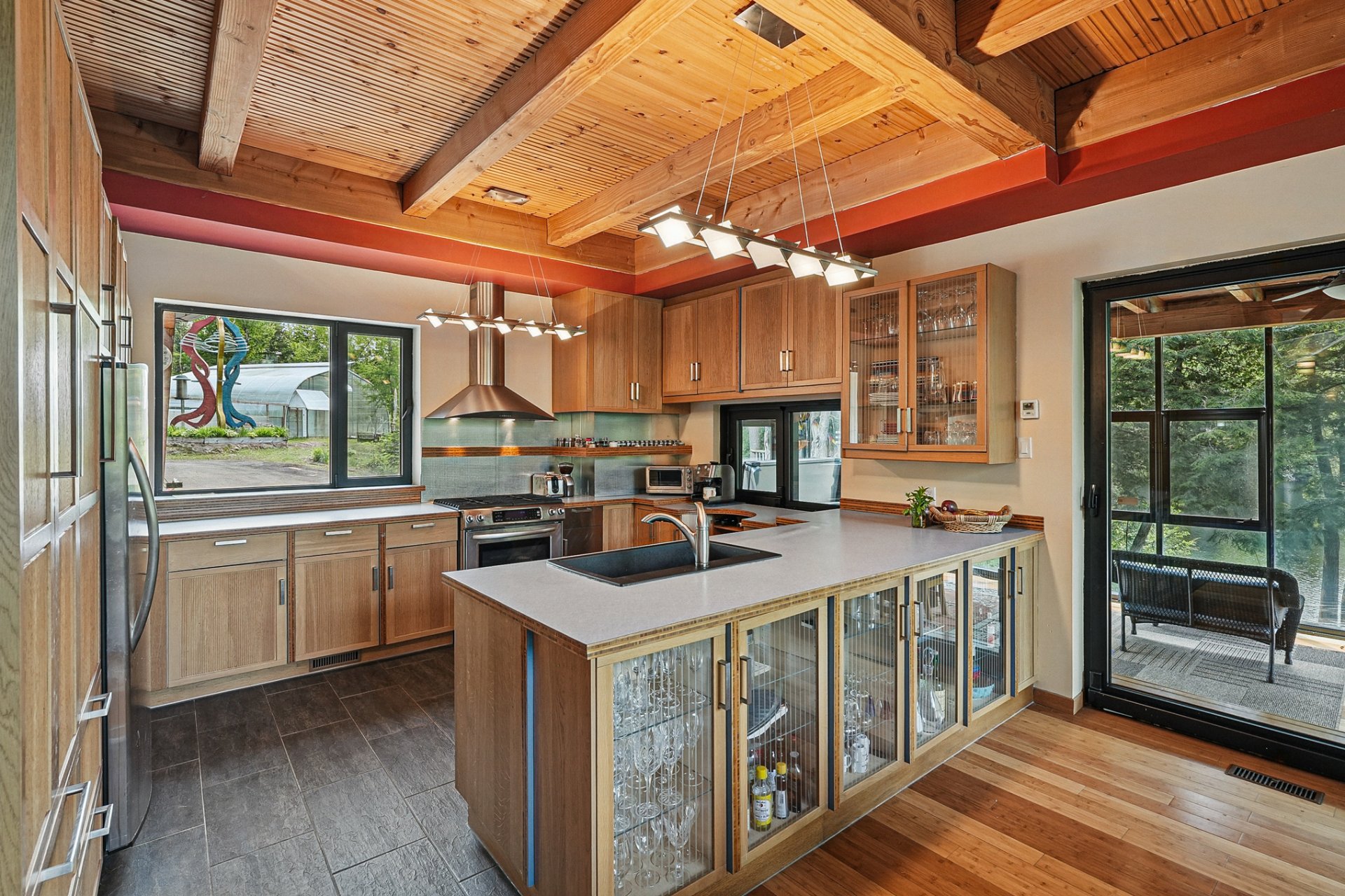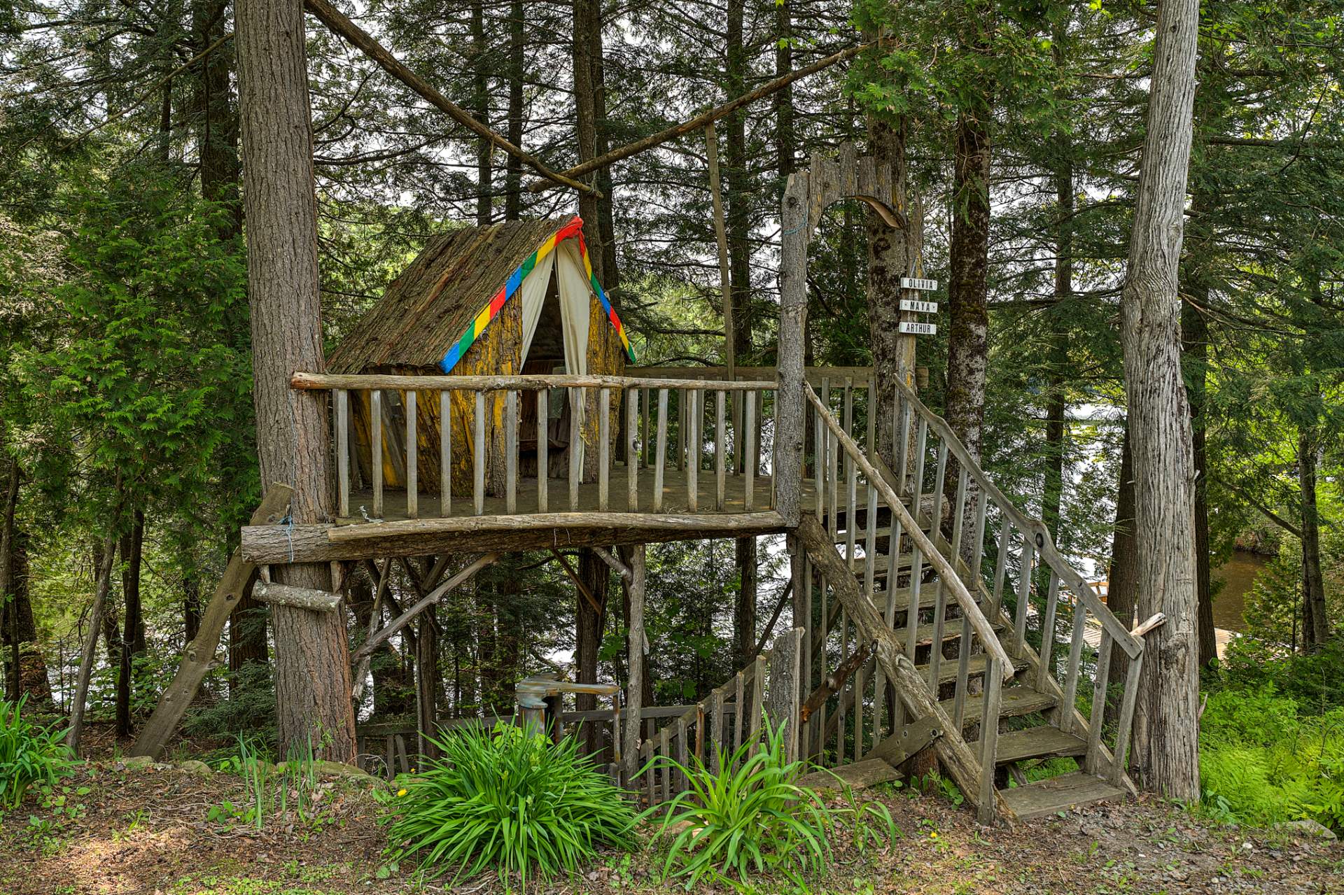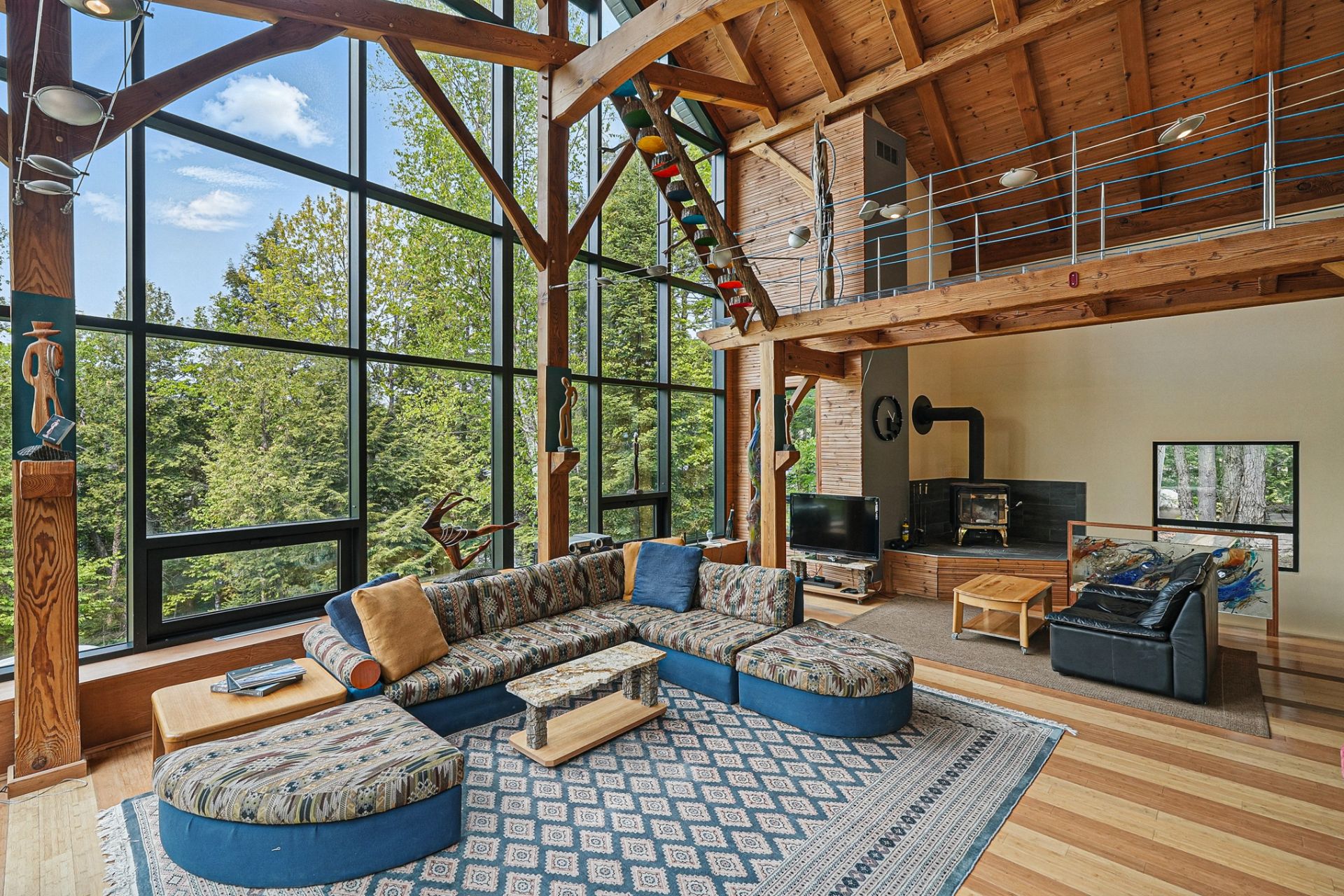 Functional, Inspiring Living Spaces. Designed for everyday ease and inspiration, the estate also includes. An indoor garage with a 220V charging station for electric vehicles. A second garage beneath the house, ideal for snowmobiles, ATVs, or utility vehicles. A spacious workshop with double doors, perfect for large-scale projects. 3 storage sheds. A charming treehouse with lake and garden views -- a dream space for children