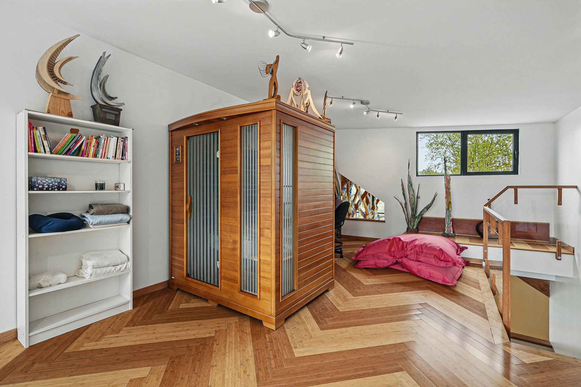 Every space has been thoughtfully designed to offer comfort and well-being. 5 bedrooms, each offering peace and privacy. 5 bathrooms, finished with high-quality materials. 2 spacious living rooms and a full relaxation suite with sauna, massage table, and custom-made cushions. A large solarium with an integrated spa, overlooking the lake.