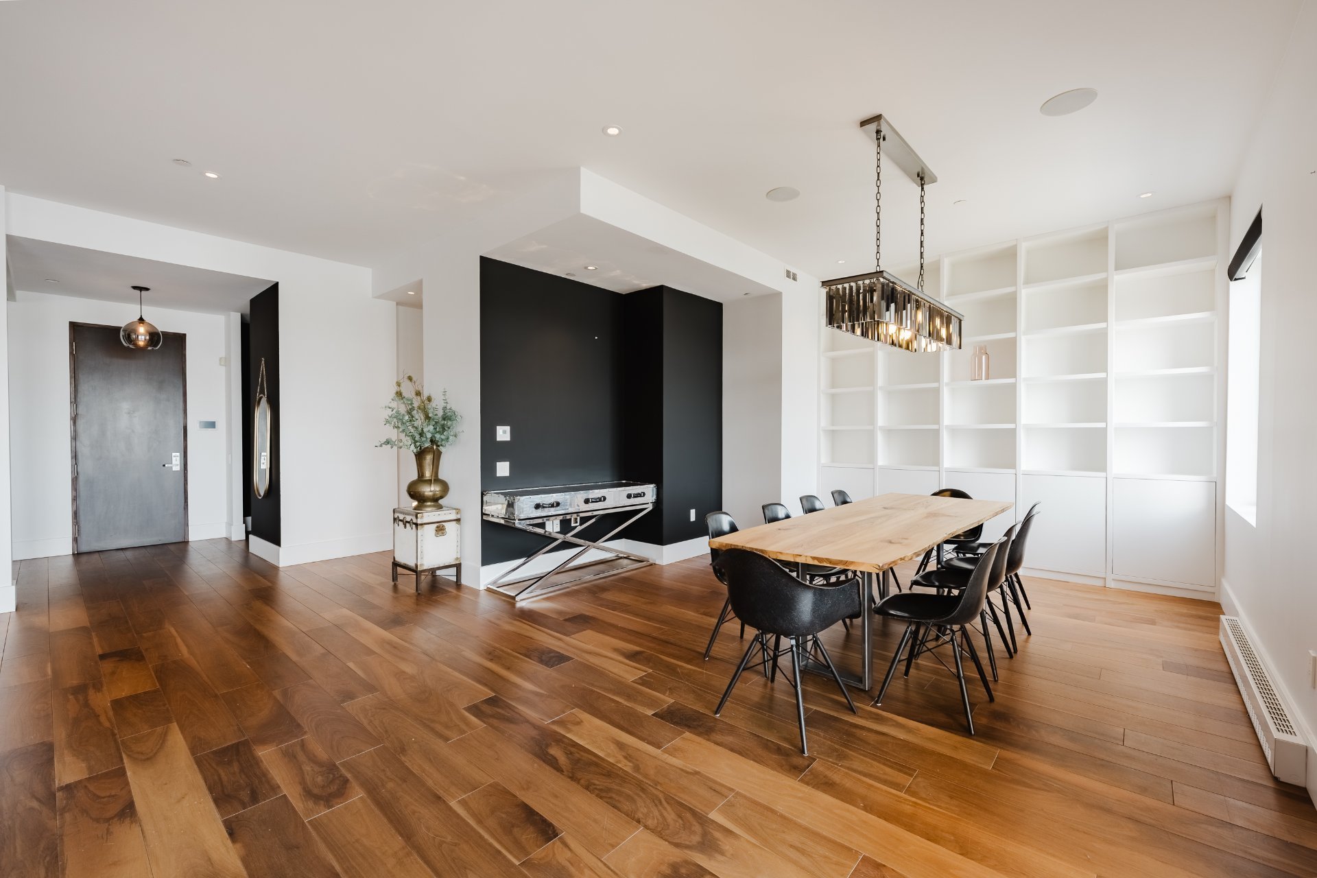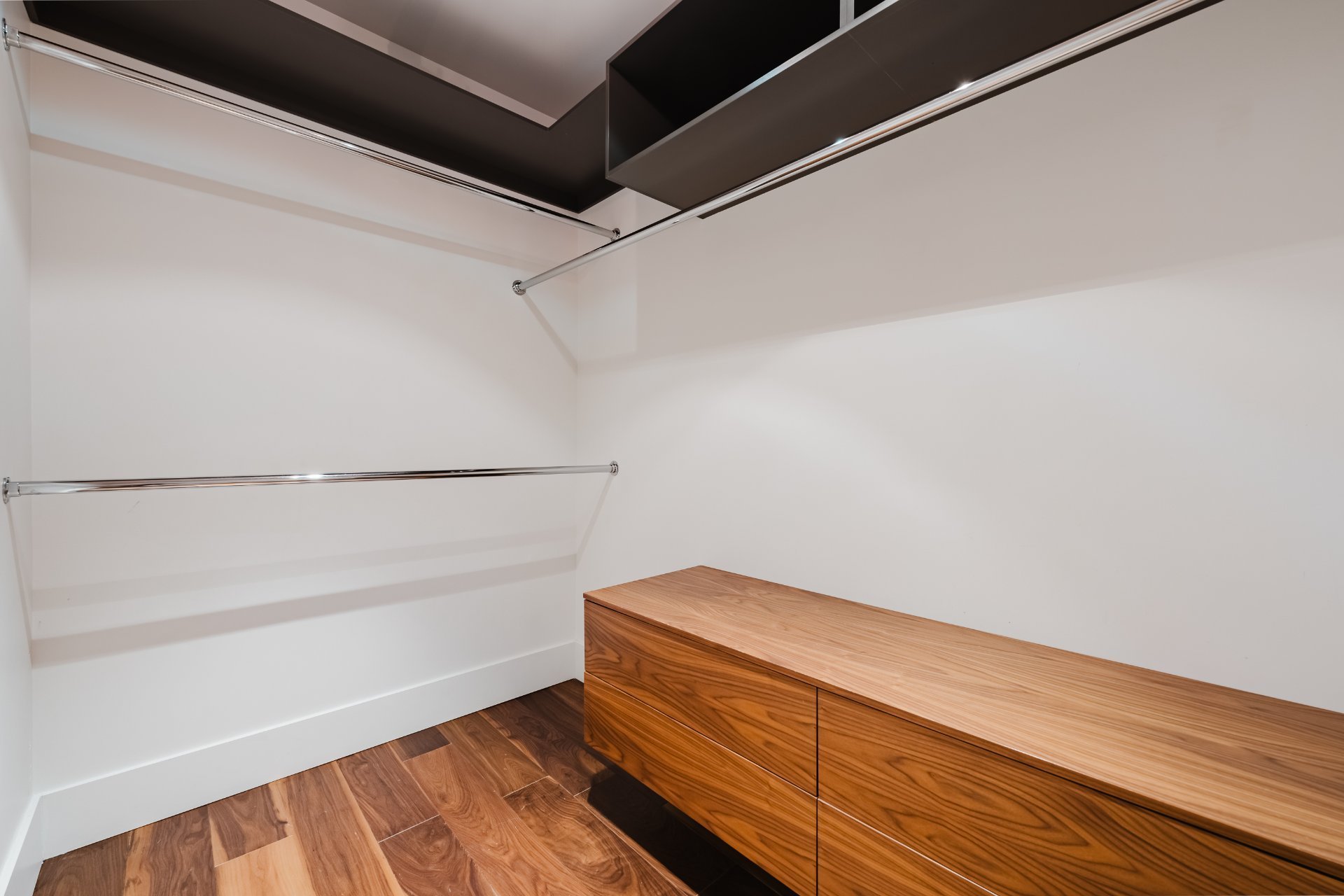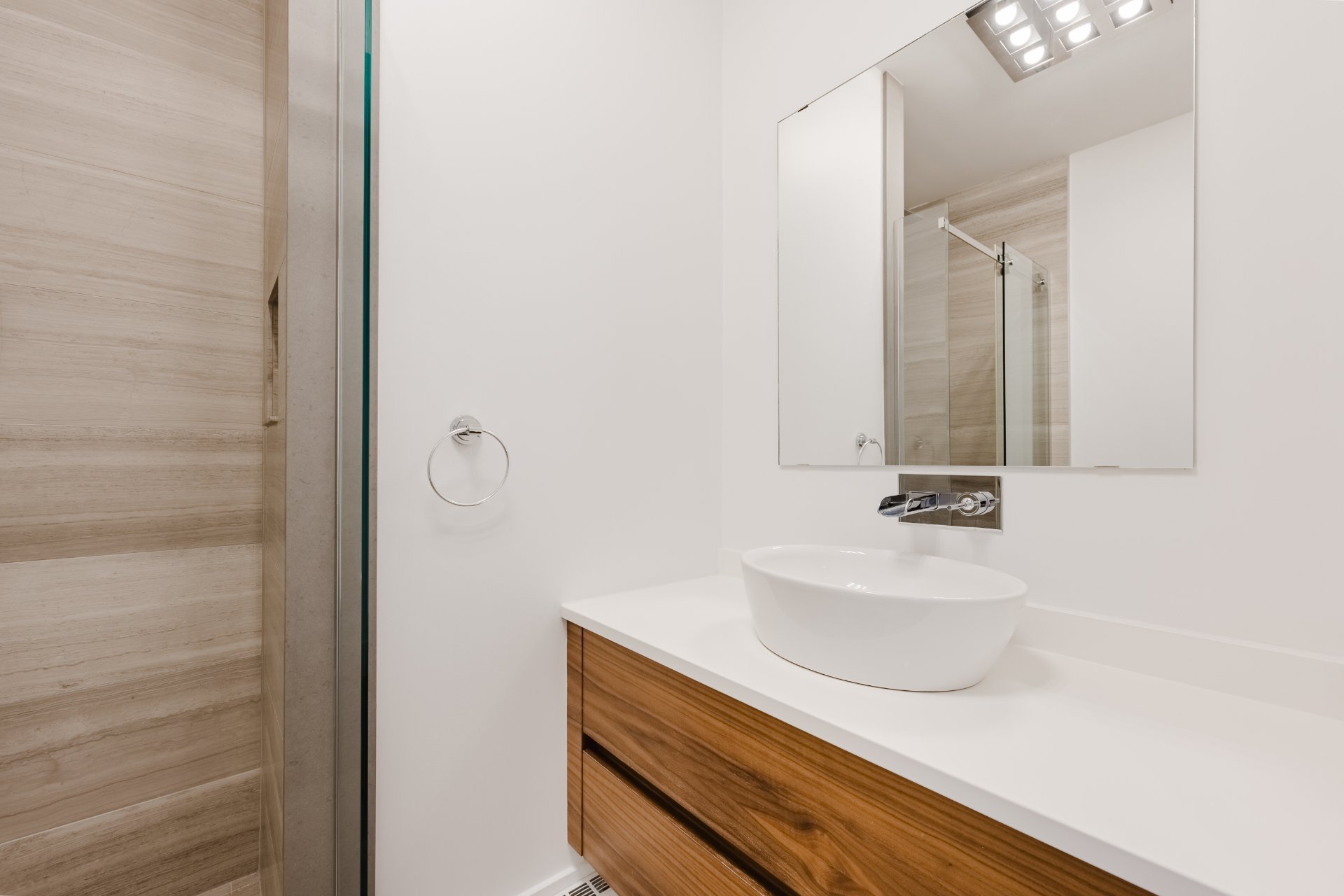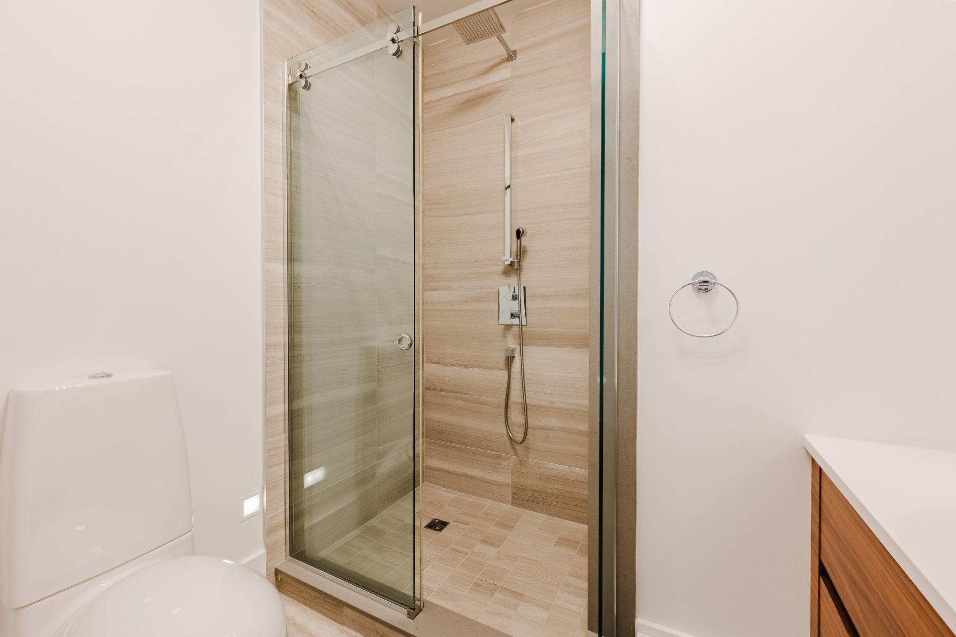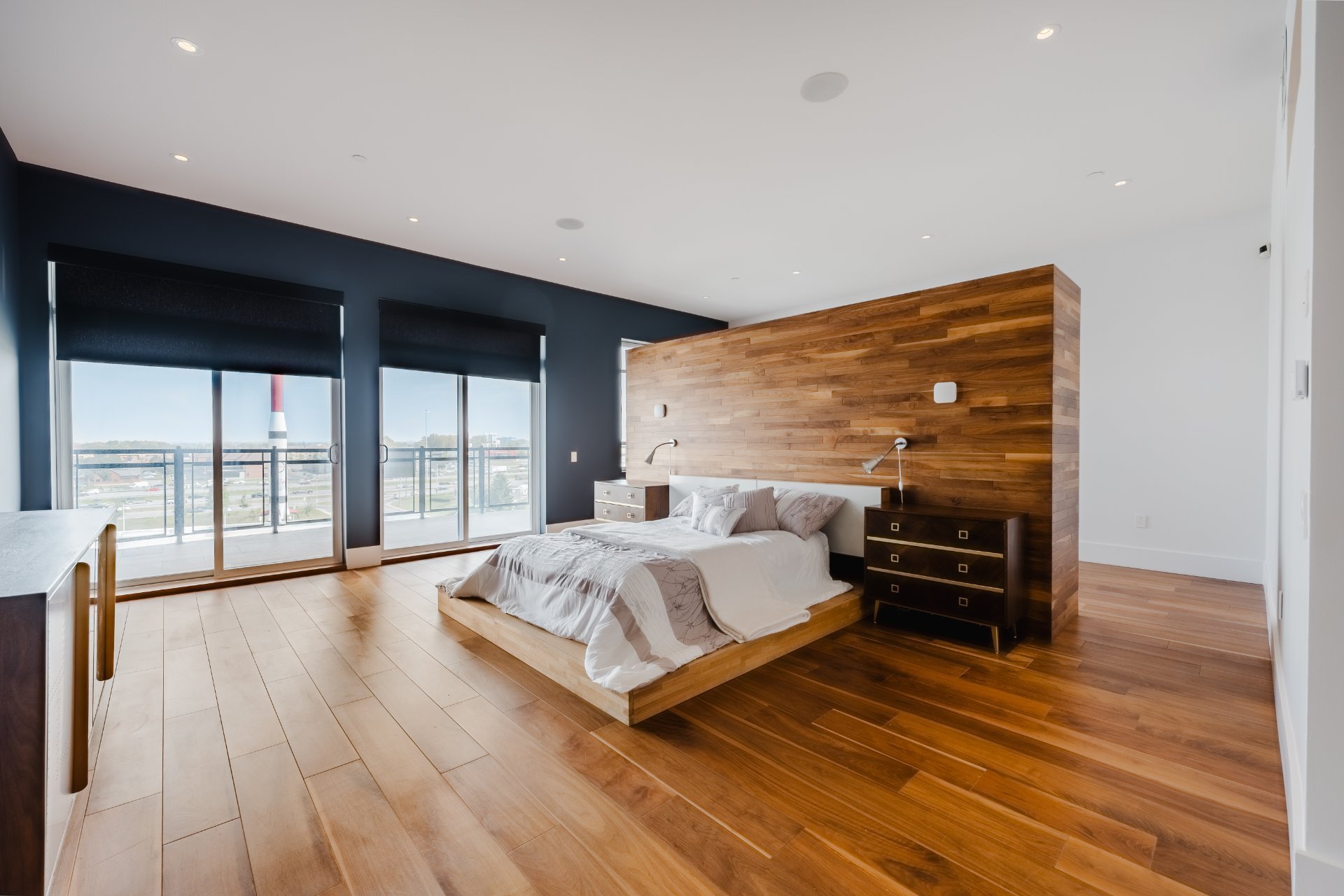 Located on the top floor, this spacious unit offers spectacular panoramic views of the city. The living area, with its generous windows, enjoys remarkable natural light thanks to the large windows that line the dining room and living room, opening onto a first balcony. The modern, chef-worthy kitchen features quartz countertops, two lunch counters, and ample storage.