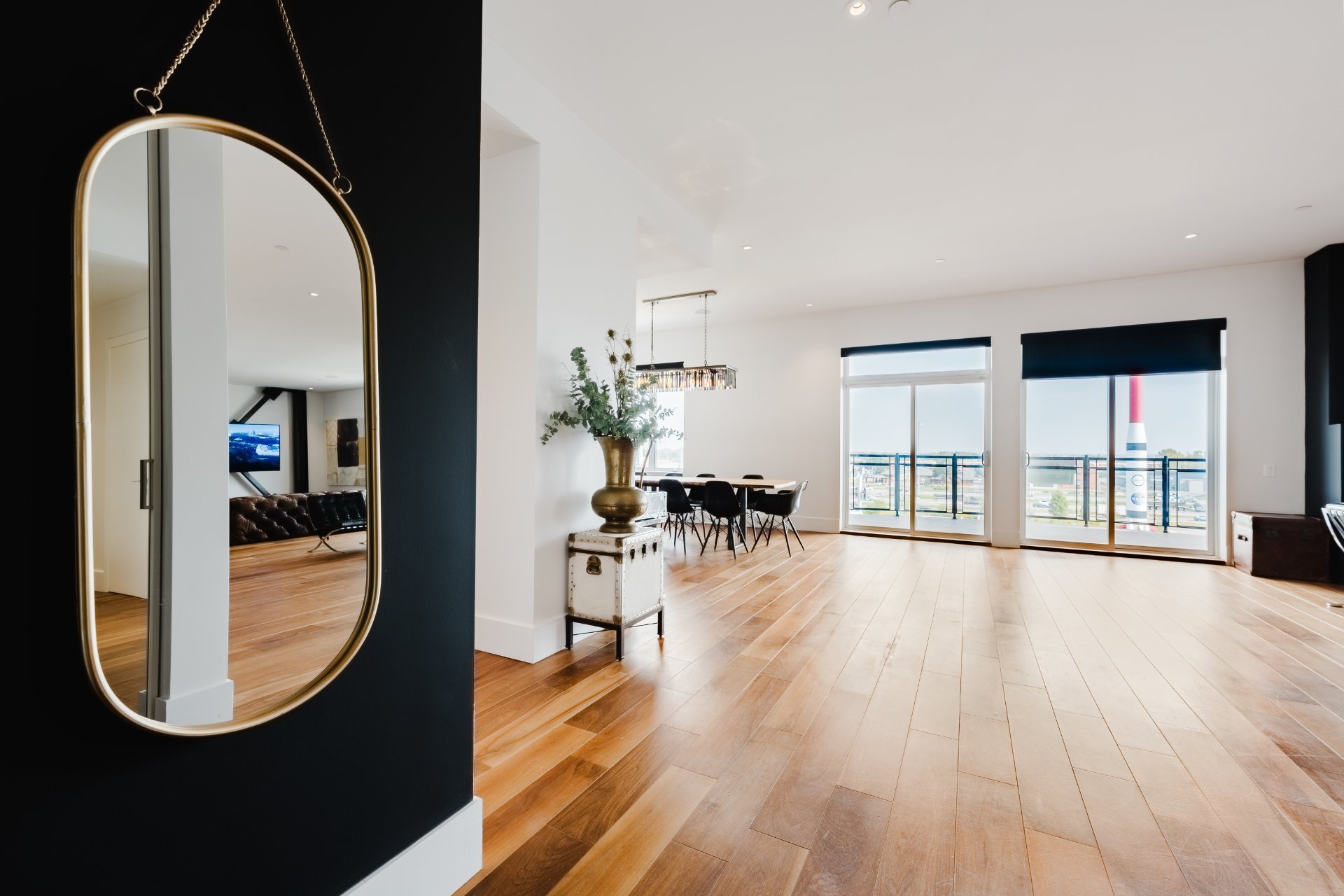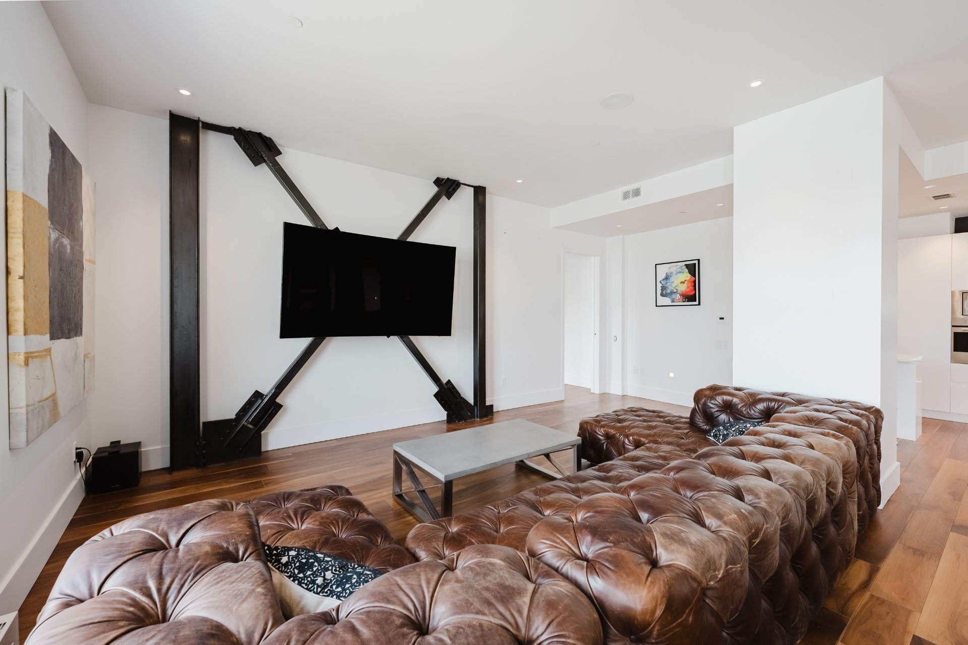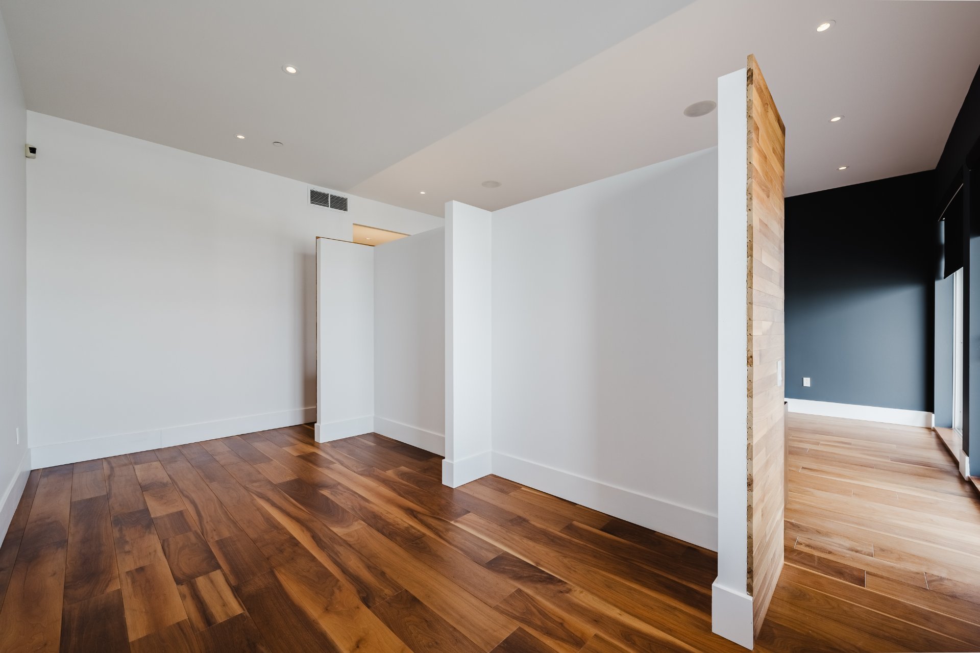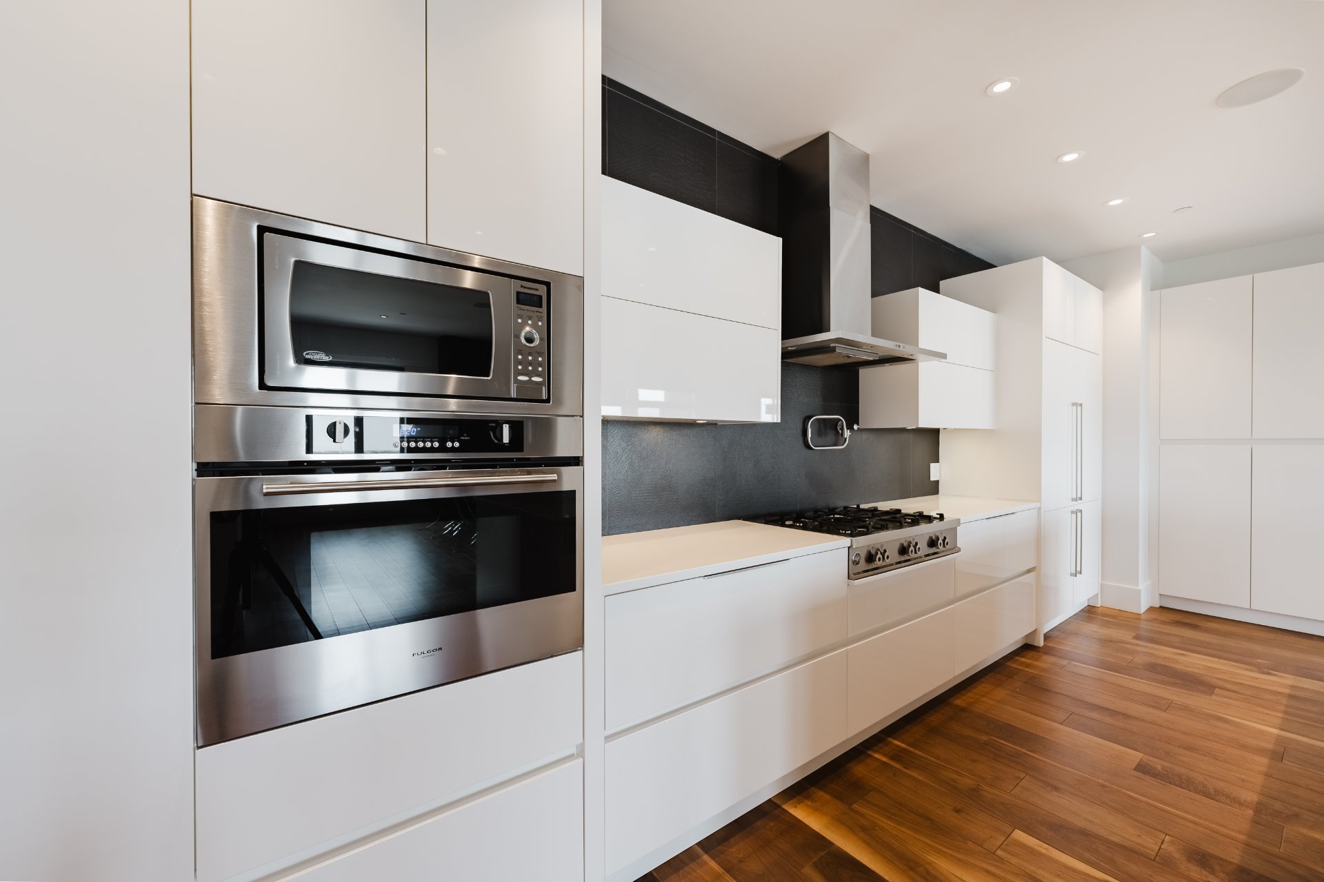 Located on the top floor, this spacious unit offers spectacular panoramic views of the city. The living area, with its generous windows, enjoys remarkable natural light thanks to the large windows that line the dining room and living room, opening onto a first balcony. The modern, chef-worthy kitchen features quartz countertops, two lunch counters, and ample storage.