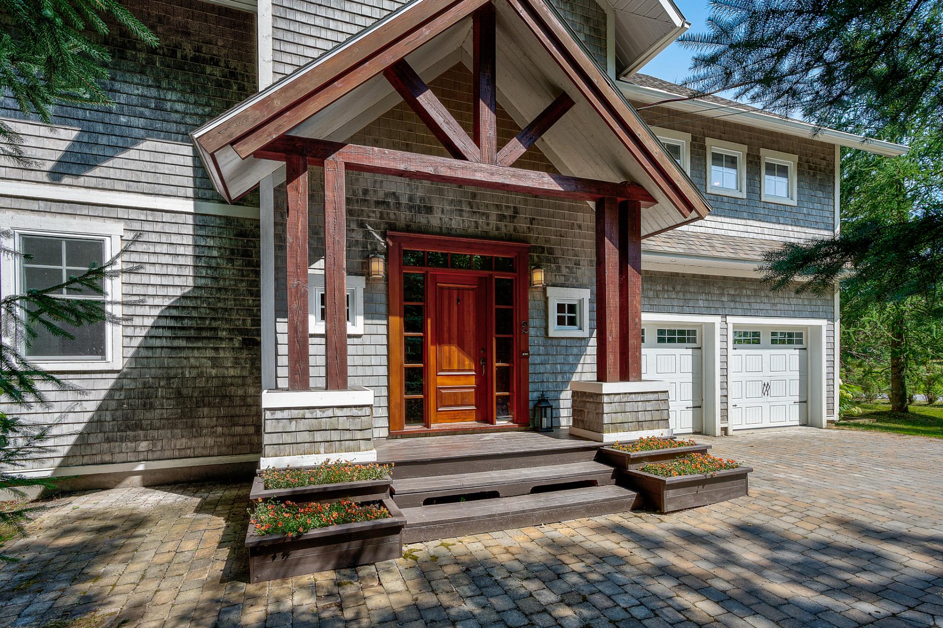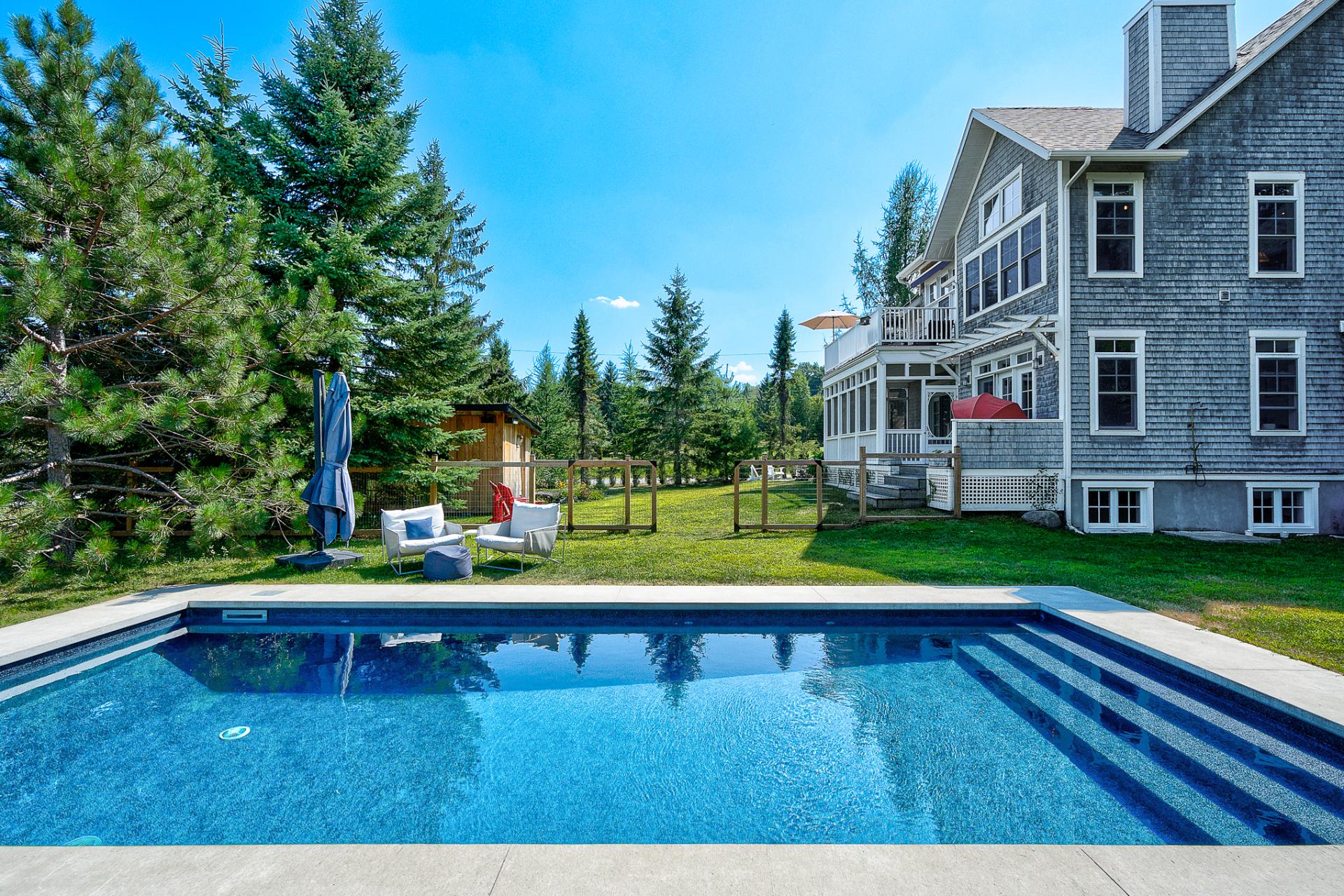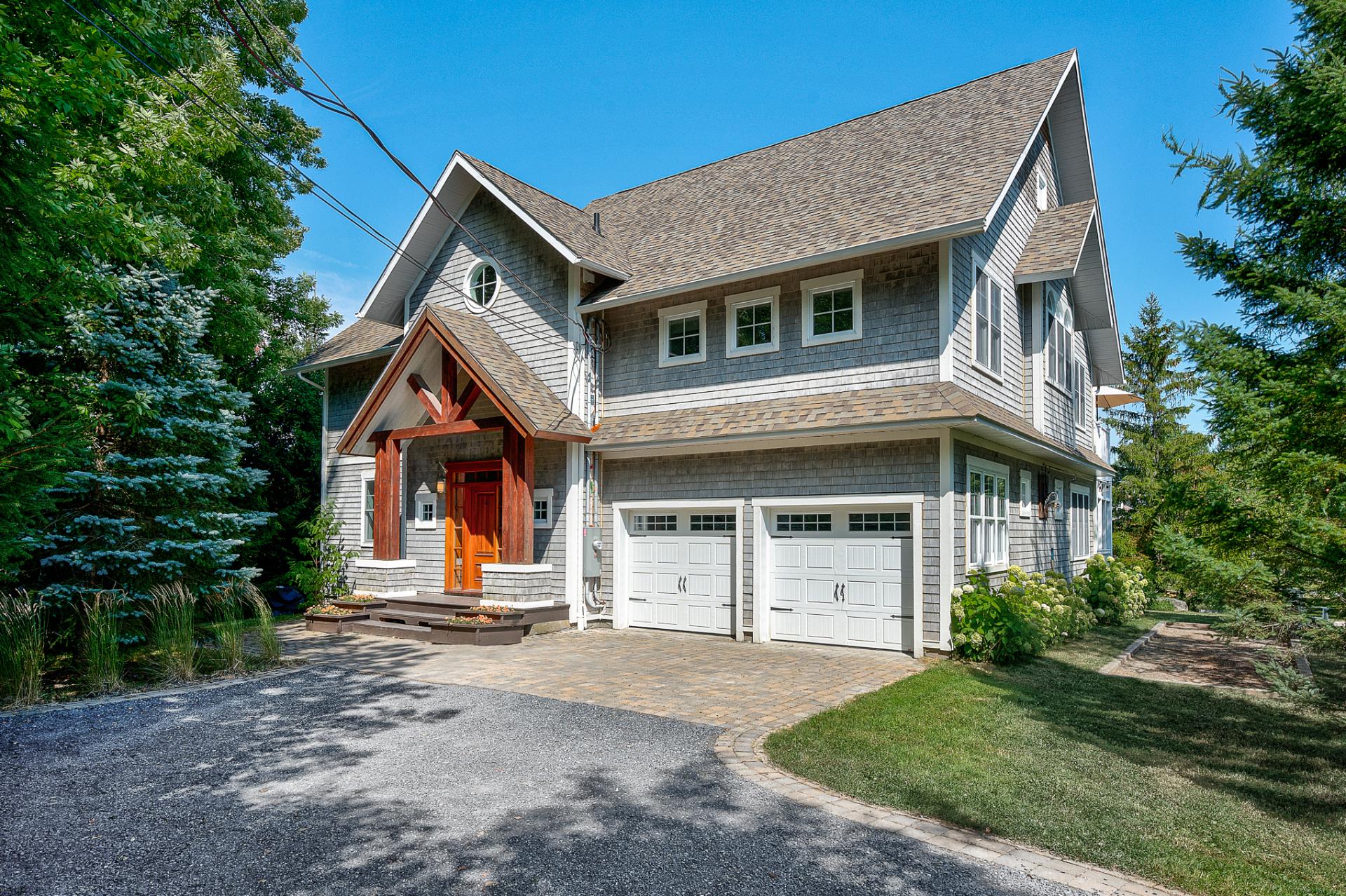 This irresistibly charming property offers notarized access to Brome lake and its own dock space. The home evokes the casual elegance of East Coast residences, with wood shingles, warm woodwork, exposed beams, and rustic accents. An atmosphere of relaxation welcomes you with open, warm, and inviting living spaces--the perfect setting for entertaining. The four bedrooms are spacious and complemented by three full bathrooms. Screened veranda, double garage, and finished basement. Outdoors, the setting is made for gatherings: heated pool, Finnish sauna, outdoor shower, bocce court, and firepit area.