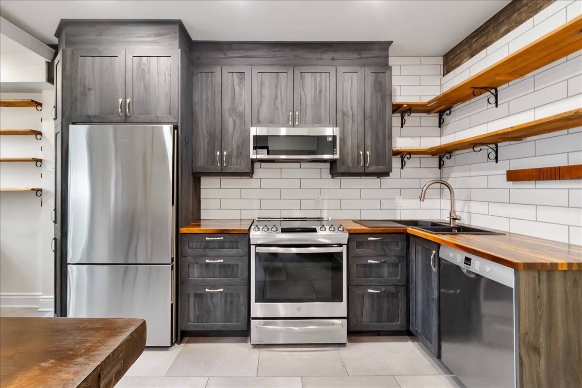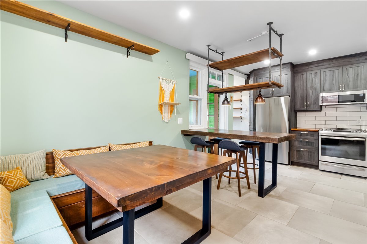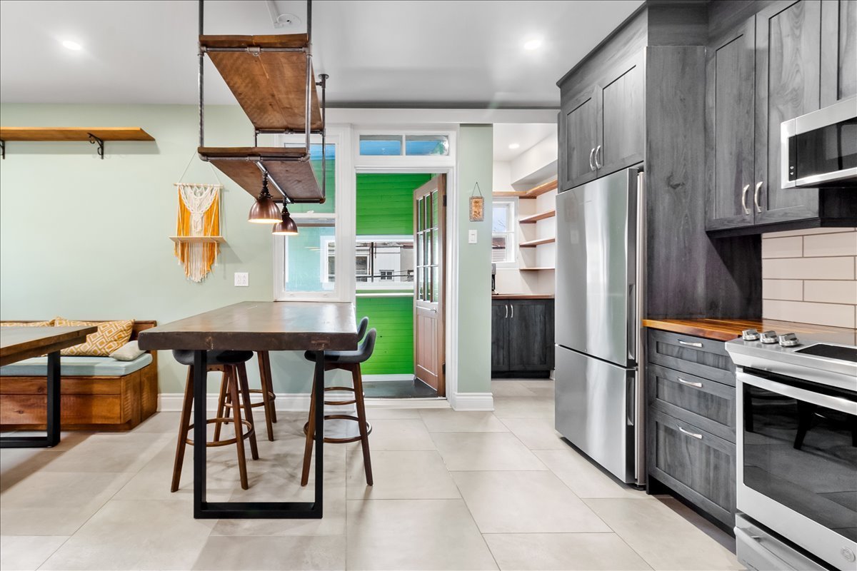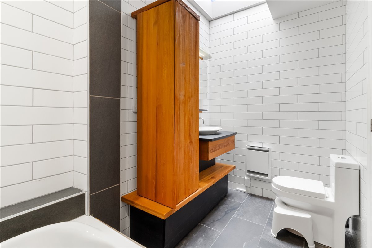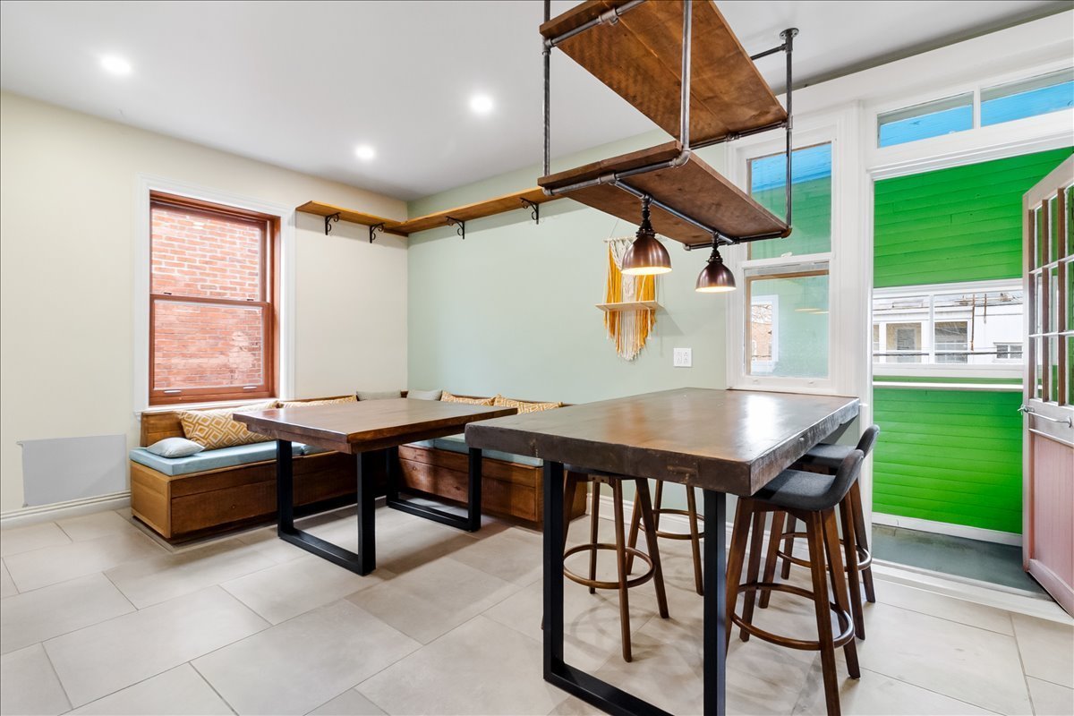 Renovated upper unit of an undivided duplex, located in the heart of Côte-des-Neiges, within walking distance of the metro, shops, and services. Bright open-concept living area offering a seamless flow between the living room, dining room, and kitchen. Modern kitchen with central island and ample built-in storage. Two bedrooms, including a spacious primary bedroom with a dedicated office area. One bathroom and one powder room featuring skylights. Windows on three sides, wall-mounted heat pump, and storage space in the basement.
