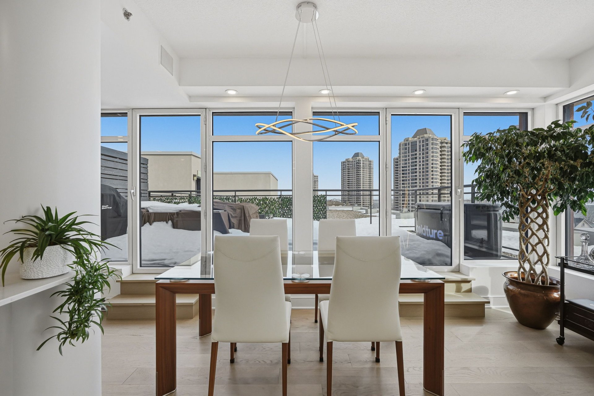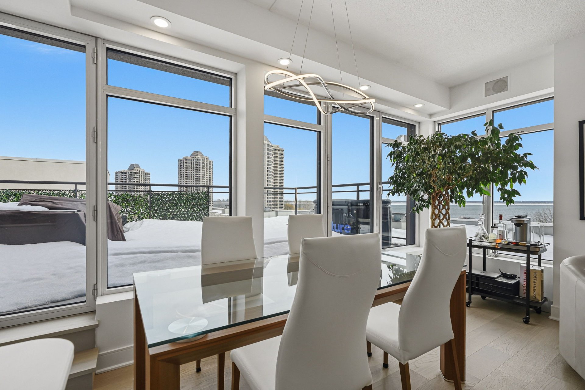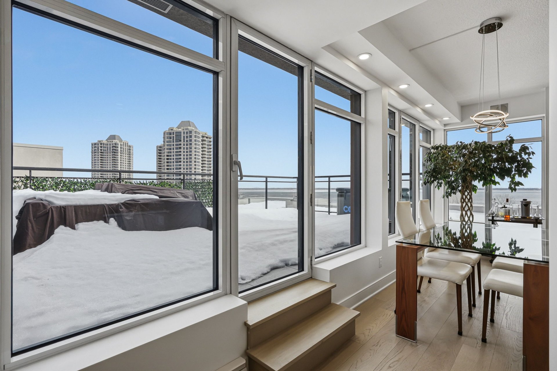 A rare opportunity to acquire a bright penthouse offering panoramic views, a private terrace and three indoor parking spaces, within a building offering sought after services and amenities.