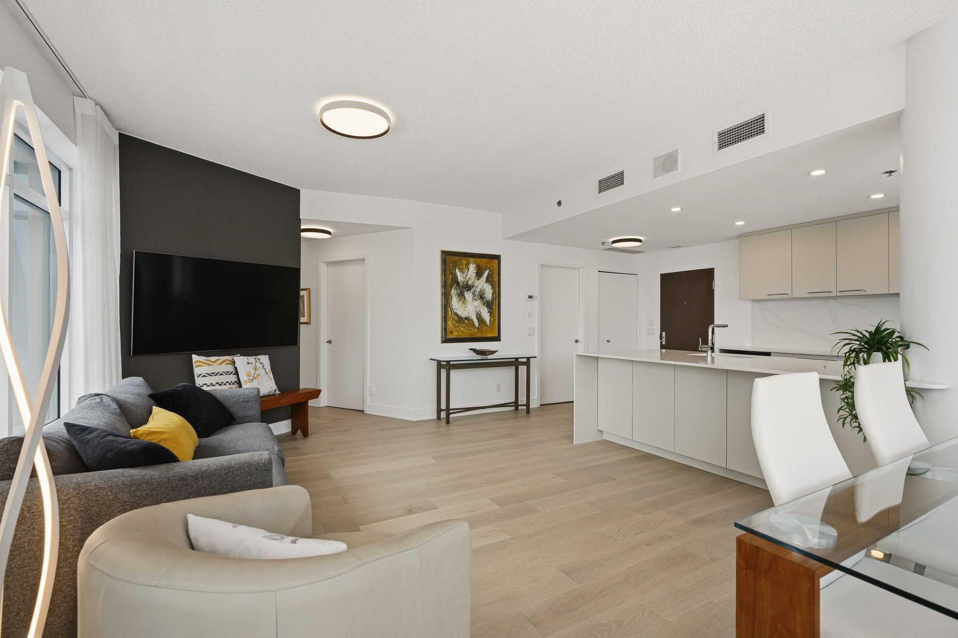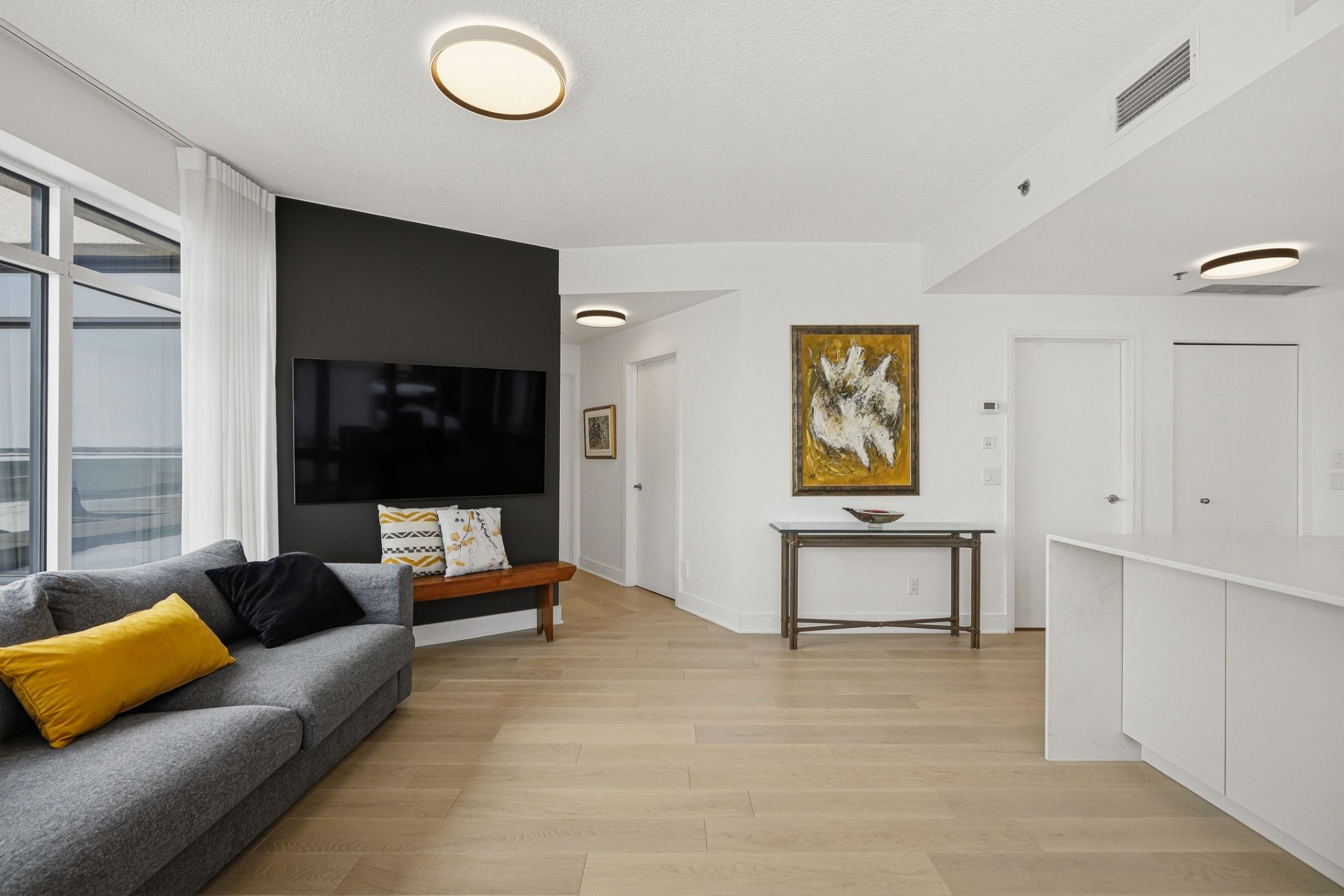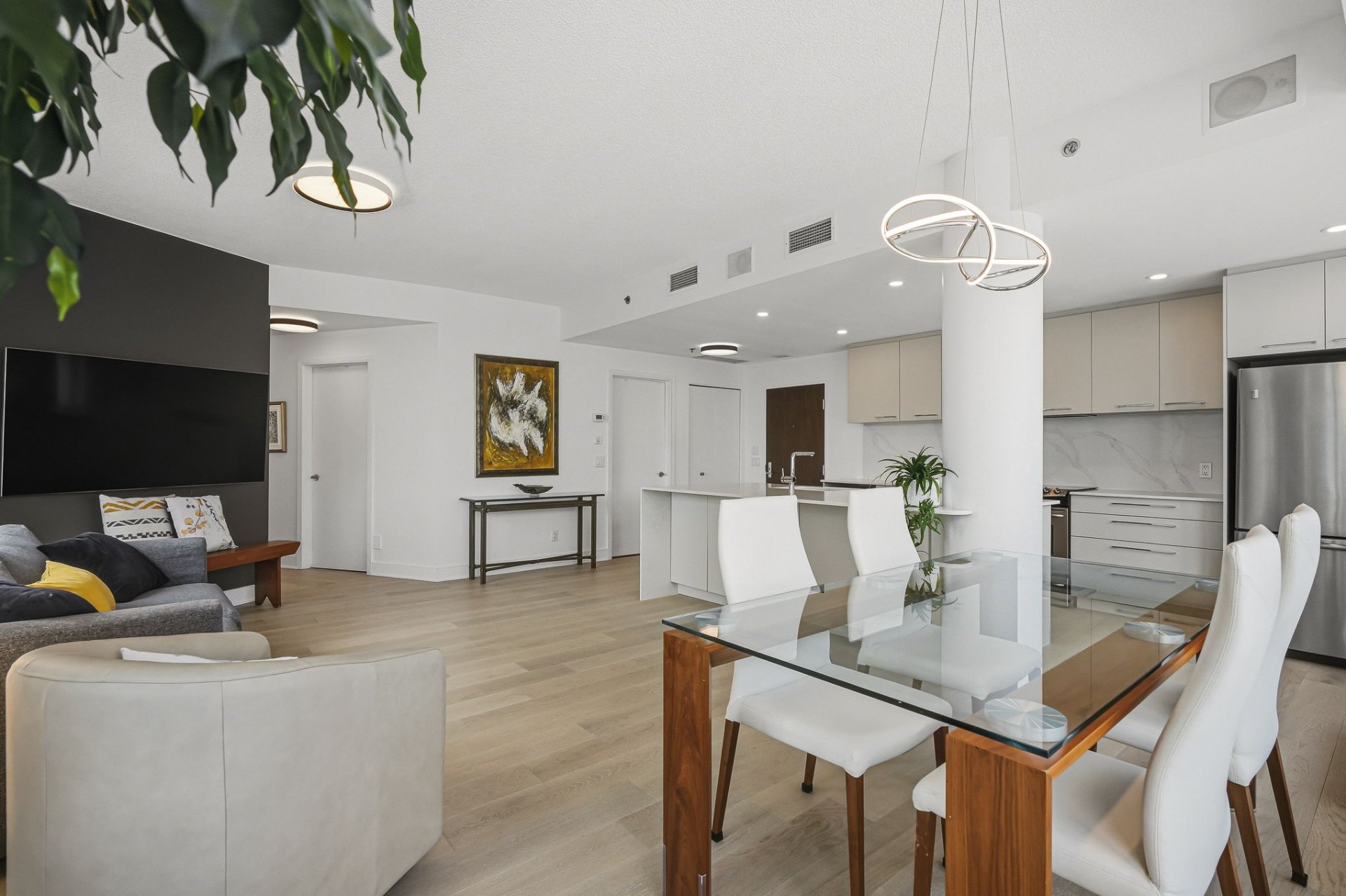 Beautiful recently installed white oak hardwood floors bring warmth and elegance to the living areas.