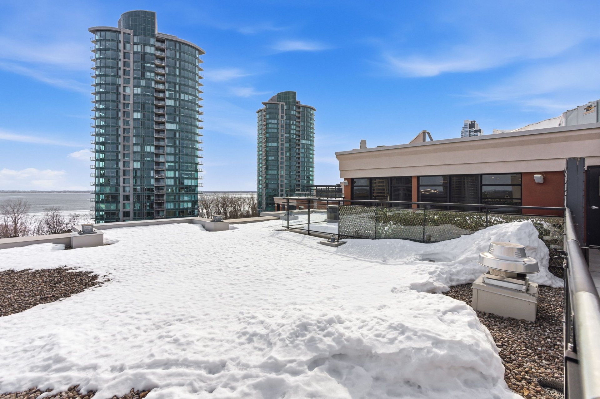Common rooftop terrace with views of the river