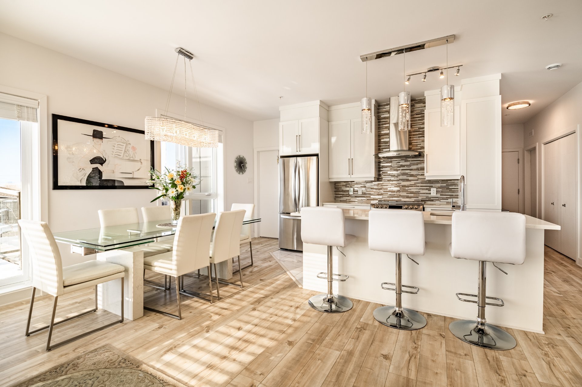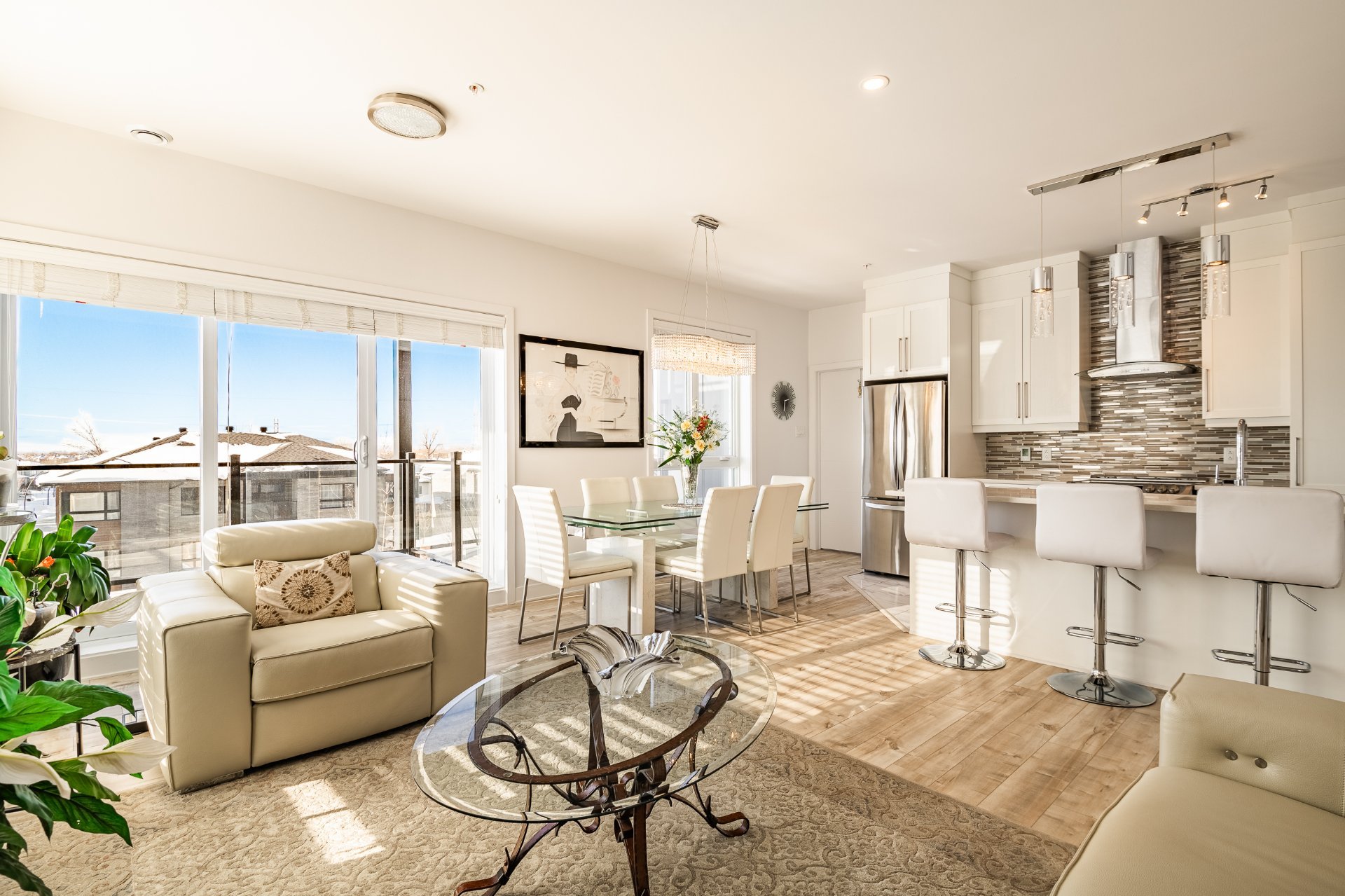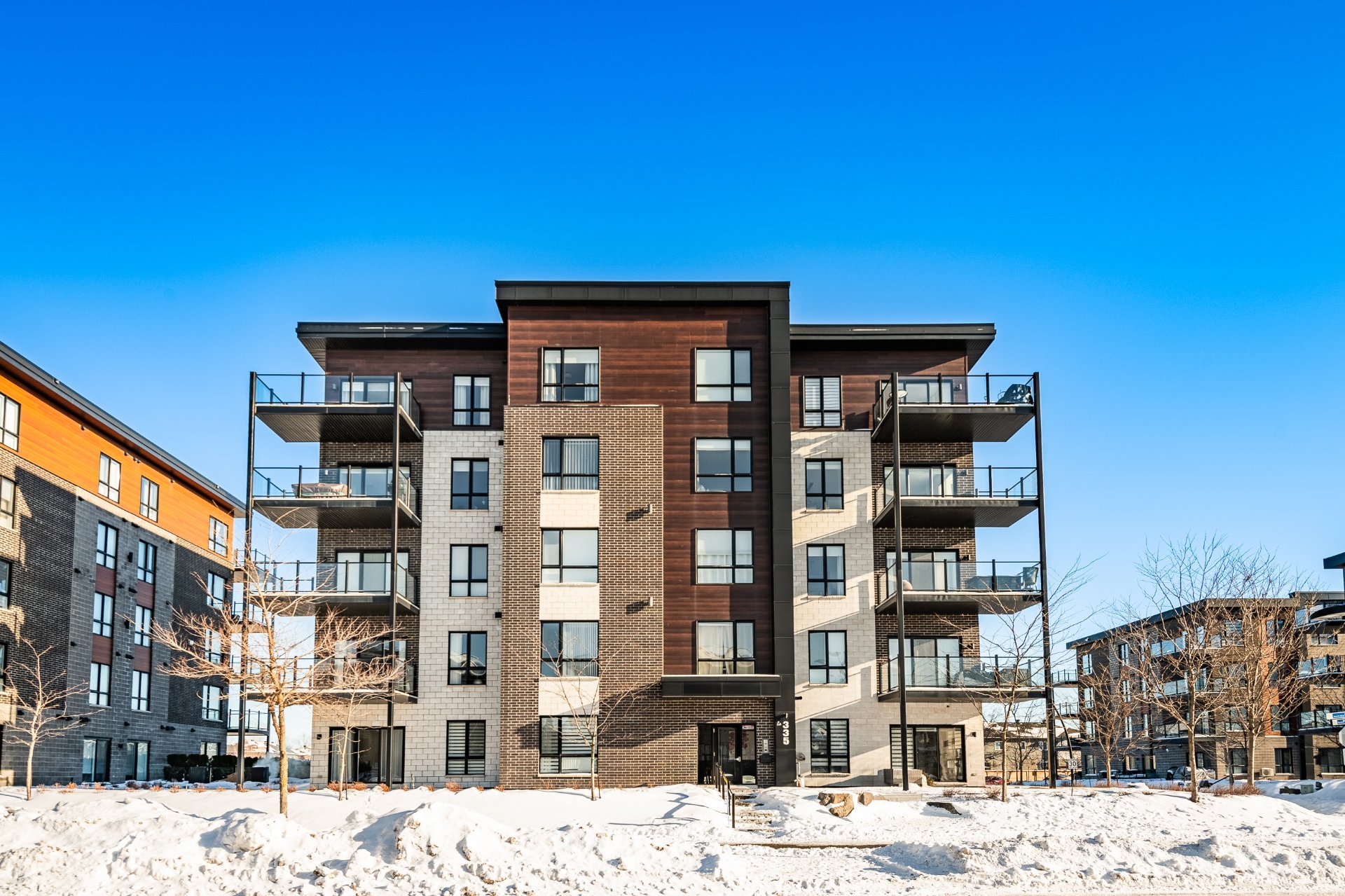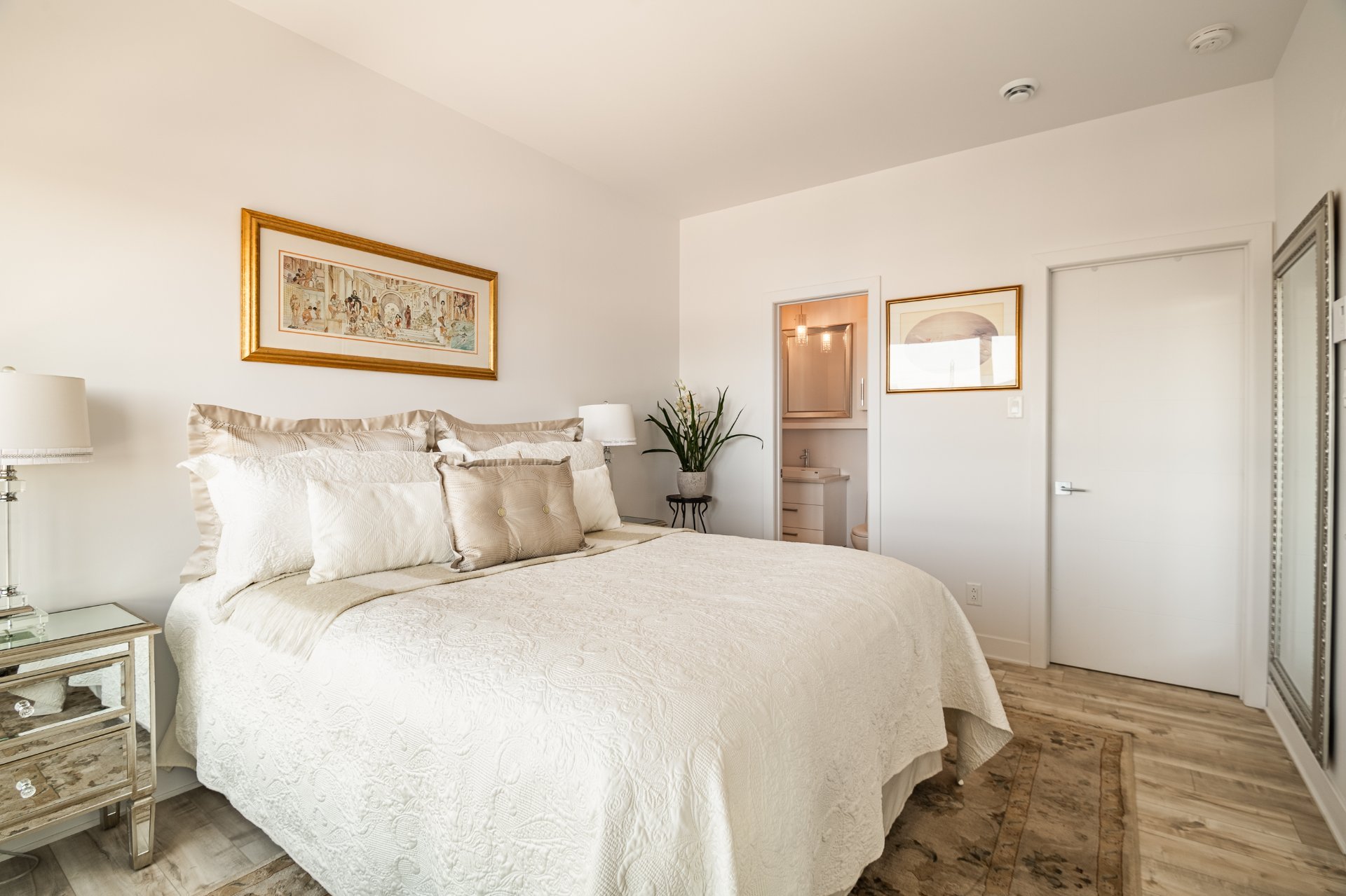 Nestled on the 4th floor, this unit stands out for its refined design and bright atmosphere. It offers two spacious bedrooms, a bathroom, and a shower room adjoining the master bedroom, harmoniously combining aesthetics and functionality. The open-concept living space is enhanced by a contemporary kitchen with quartz countertops, a large island that seats three guests, and optimized storage. The private balcony, with its unobstructed view of the city, is the perfect place to relax. Indoor parking and a meticulously maintained condominium ensure a carefree quality of life.