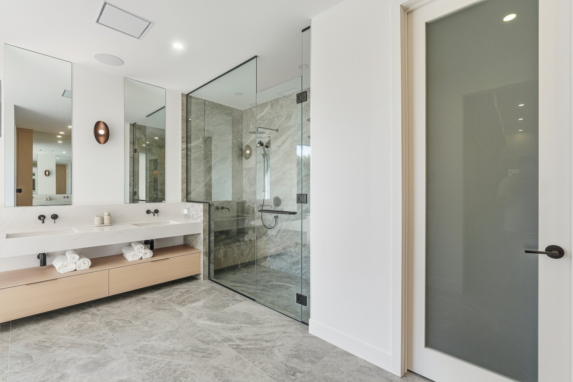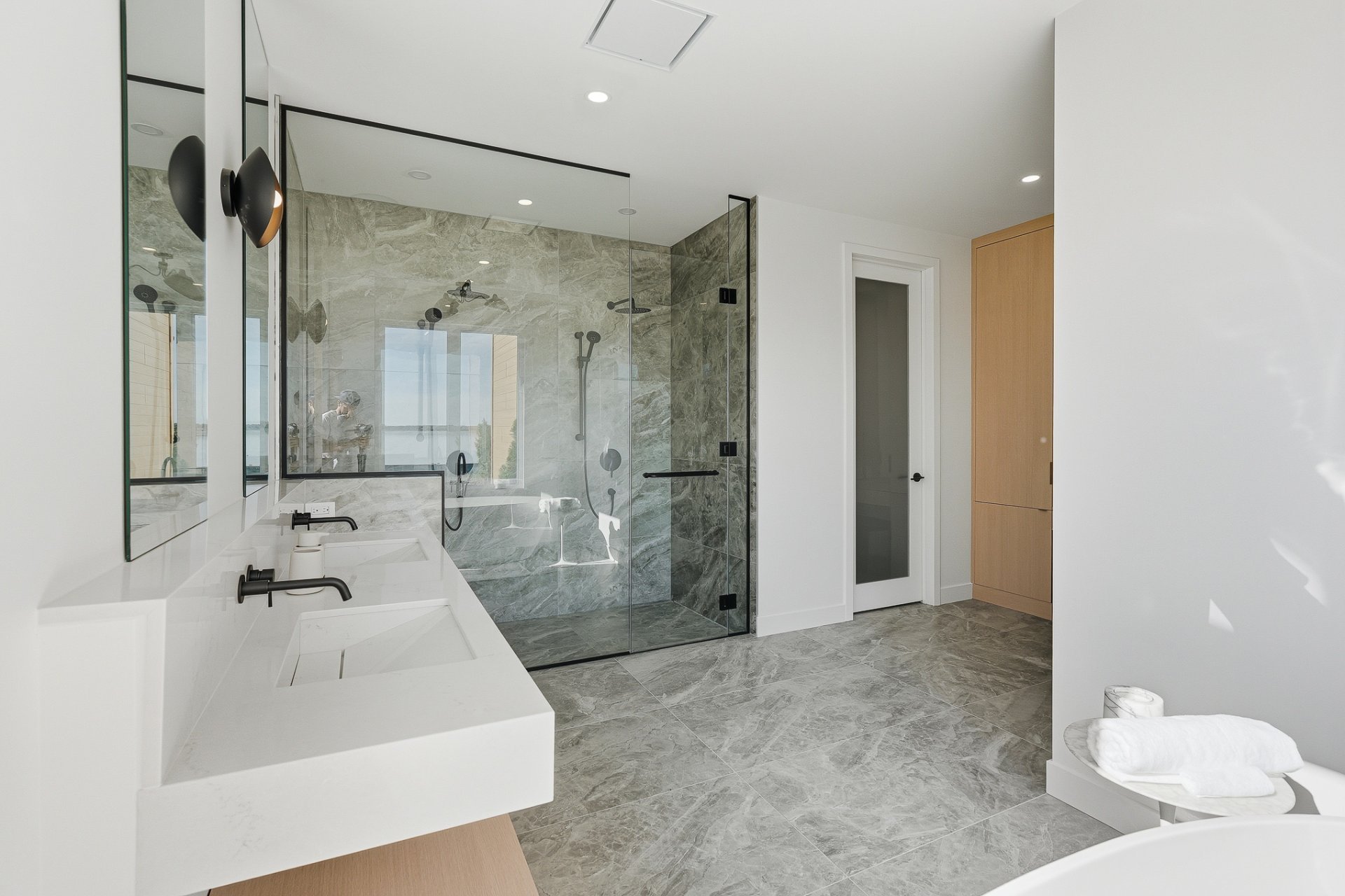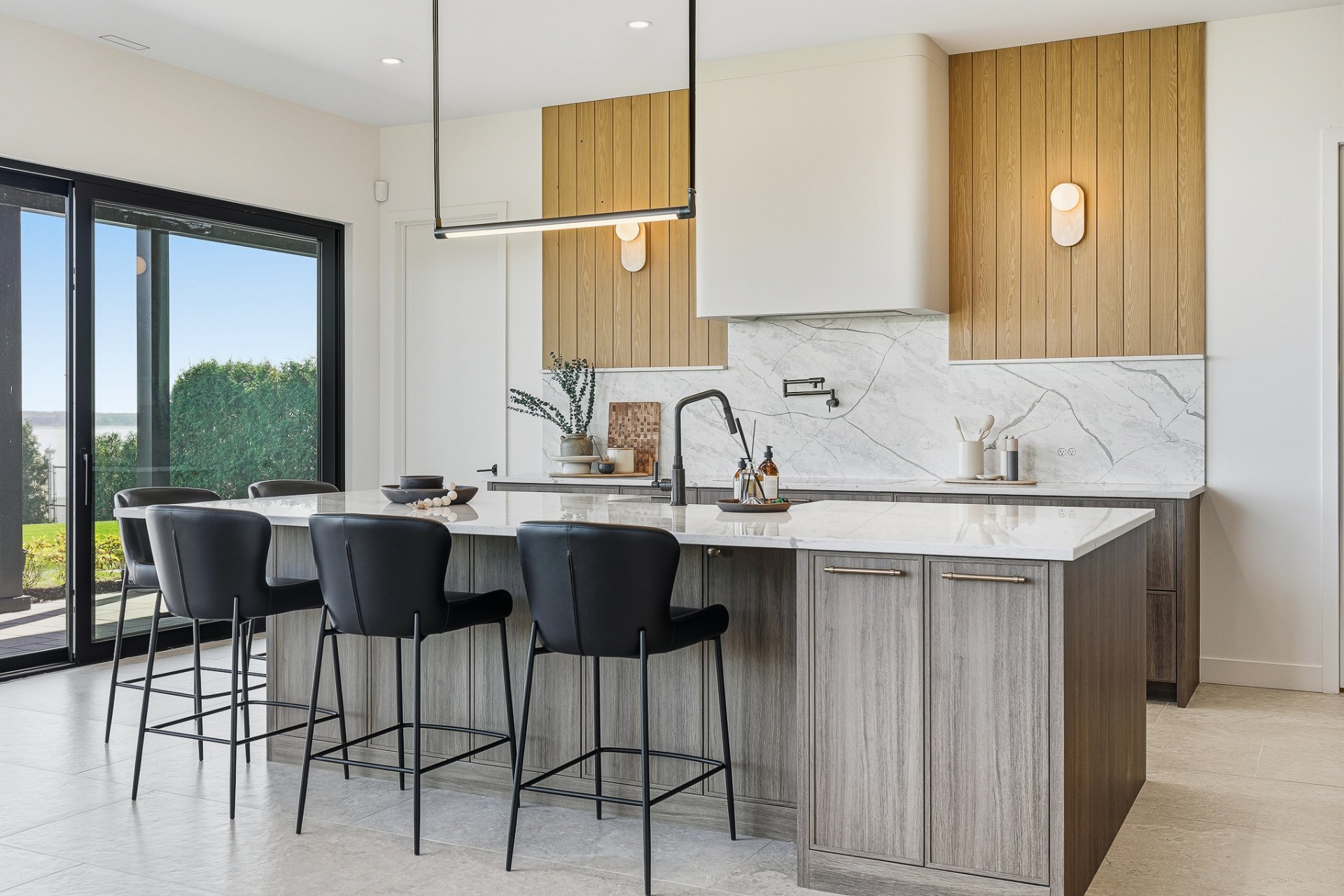 An integrated sound system, security cameras, full smart-home automation, and a custom mudroom complete this uncompromising living environment.
