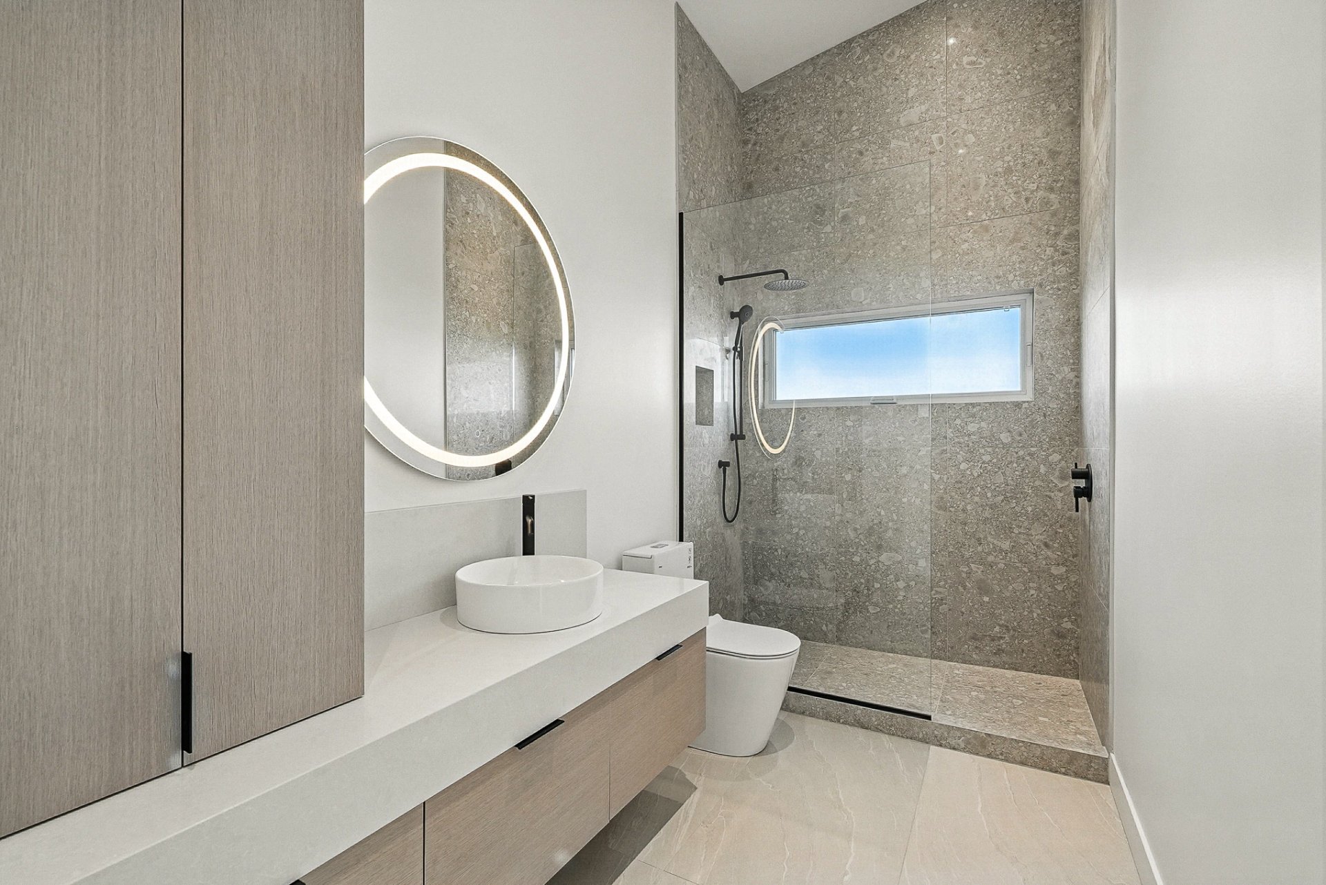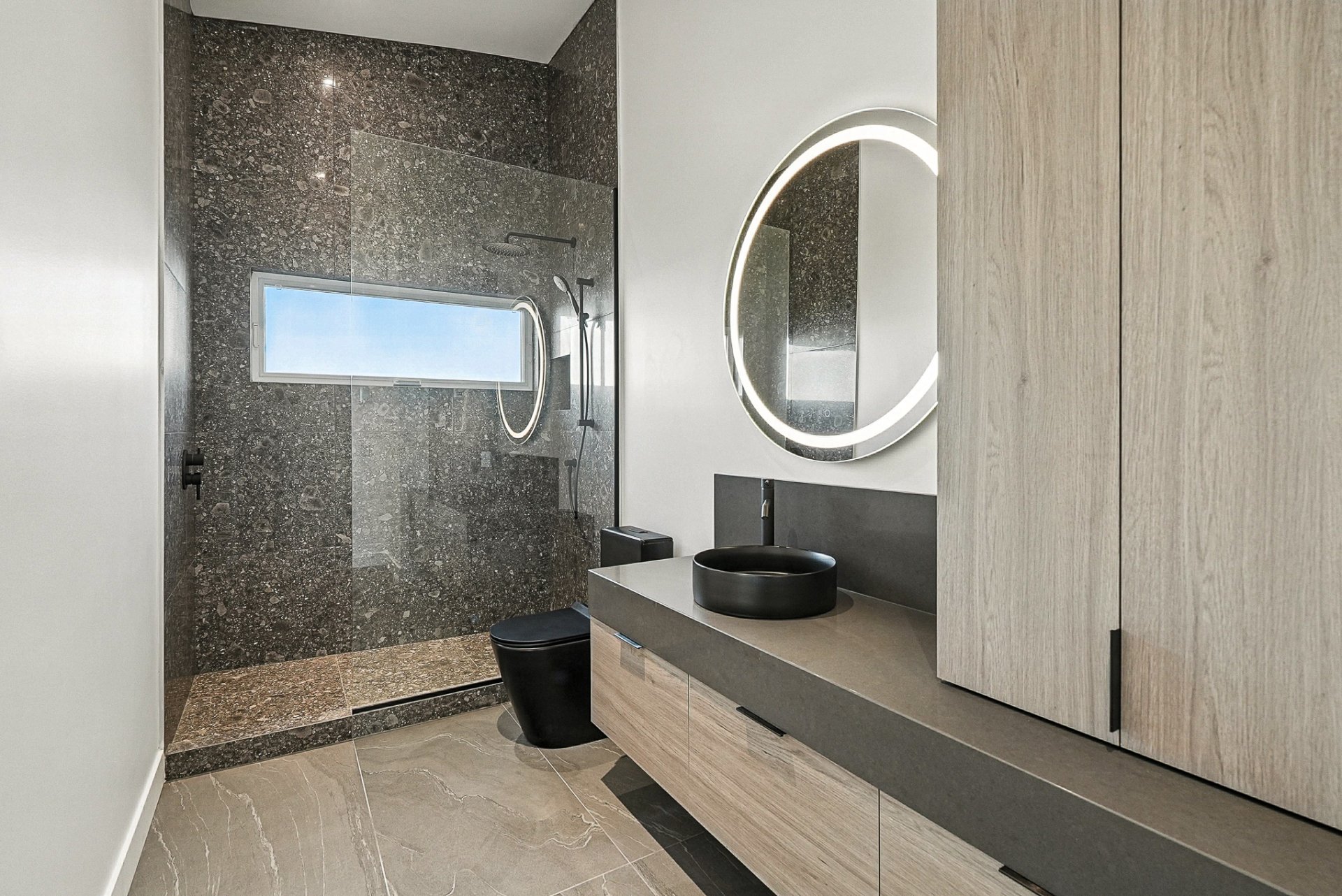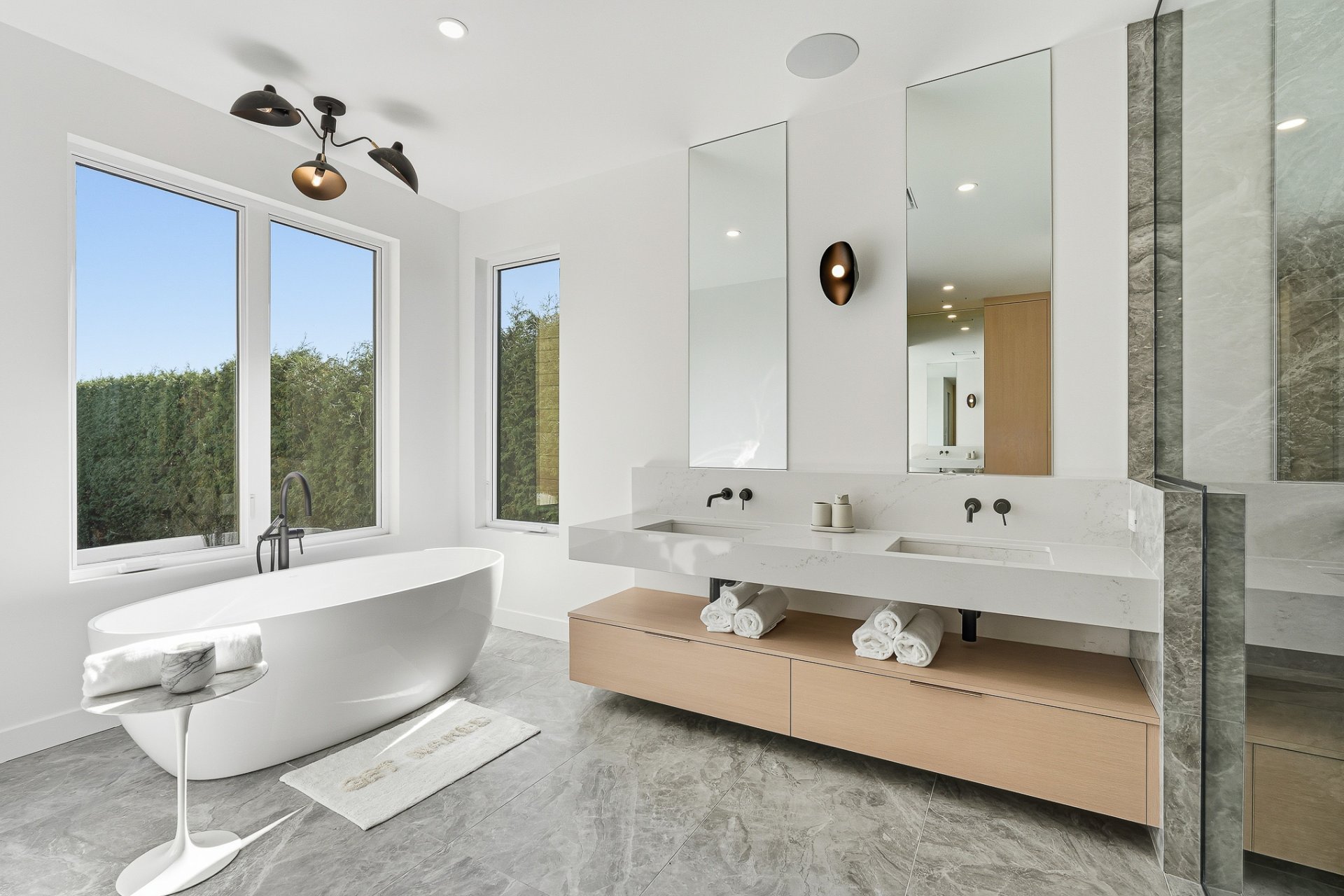 An integrated sound system, security cameras, full smart-home automation, and a custom mudroom complete this uncompromising living environment.