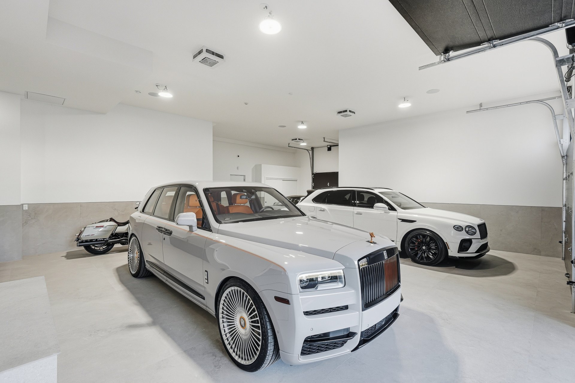 The four-car garage, fully finished in ceramic, and the two private terraces reflect the exceptional craftsmanship found throughout.