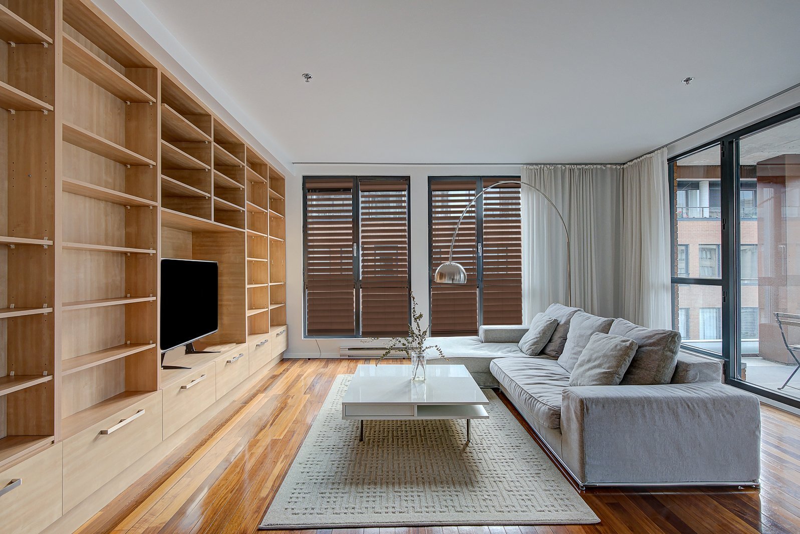 - Refrigerator, stove, microwave, hood, dishwasher, washer, dryer, window treatments, light fixtures (pendant and wall-mounted), built-in living room shelving unit, piping for central vacuum only, gas fees for the gas fireplace, and basic heating and air conditioning.