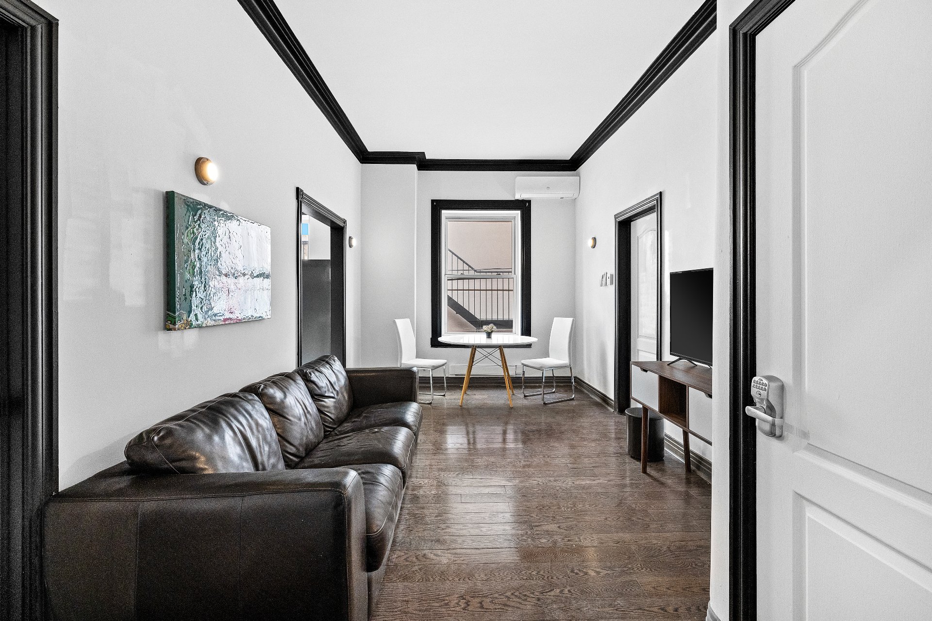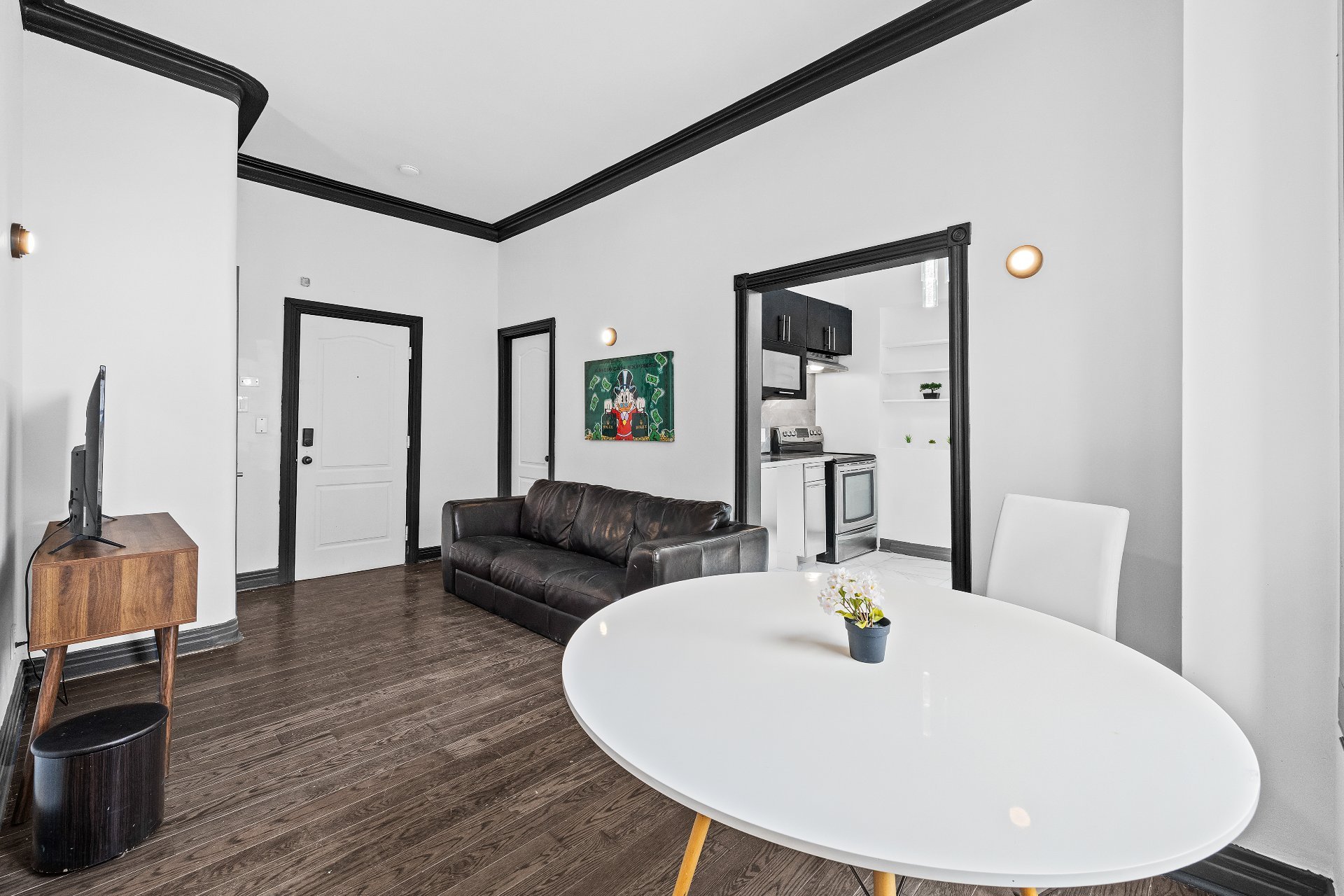 Modern and stylish, this beautifully renovated one bedroom unit at 1226 Drummond offers turnkey living in one of Montreal's most prestigious neighborhoods. Featuring a sleek open layout, quality finishes, and designer furnishings, it's the perfect urban retreat -- just steps from the city's best dining, shopping, and transit. Ideal for professionals or students seeking style, comfort, and unbeatable location. Peel and Lucien L'Allier metro stations only minutes away. Should the tenant prefer an unfurnished option, the furniture may be removed upon request.