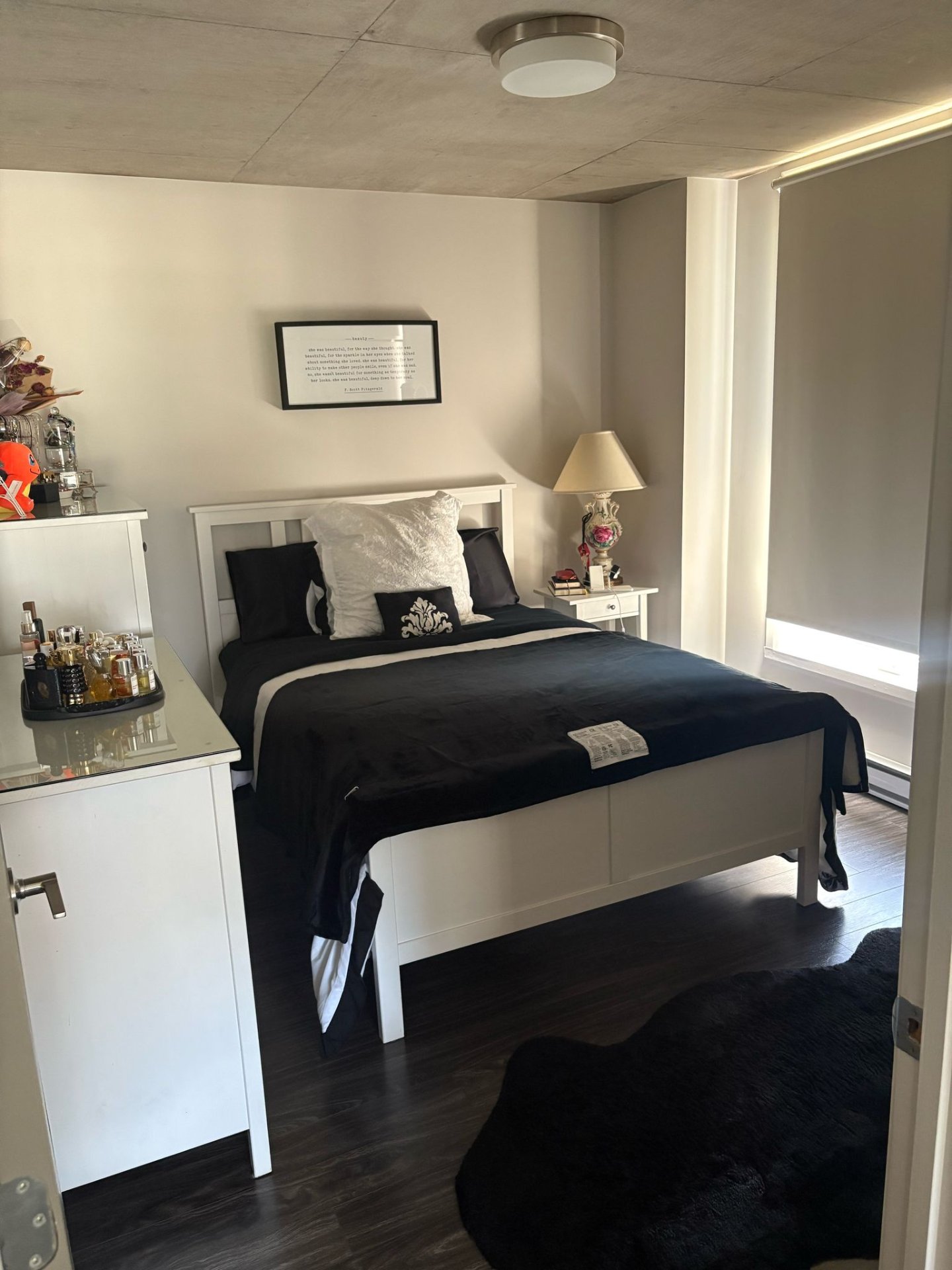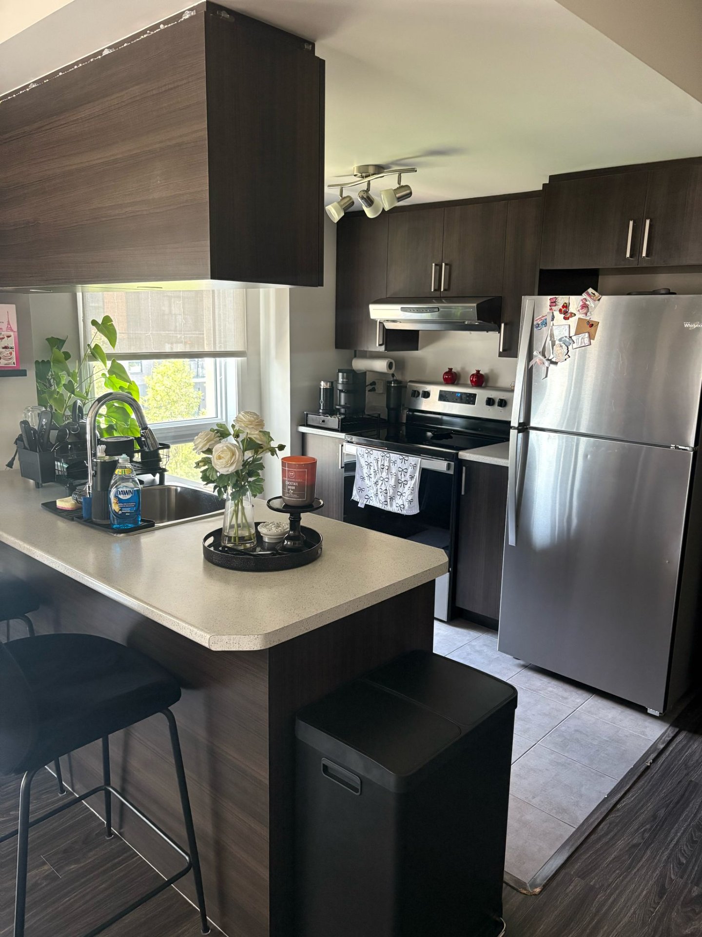 Beautiful and bright apartment in Laval! Located on the 3rd floor, this lovely unit offers abundant natural light through large windows and features a spacious private balcony -- perfect for relaxing or entertaining. The apartment includes elegant curtains, adding both style and comfort. Situated in a sought-after area close to shops, restaurants, parks, and public transit, this unit combines modern convenience with a warm, inviting atmosphere. A perfect place to call home!