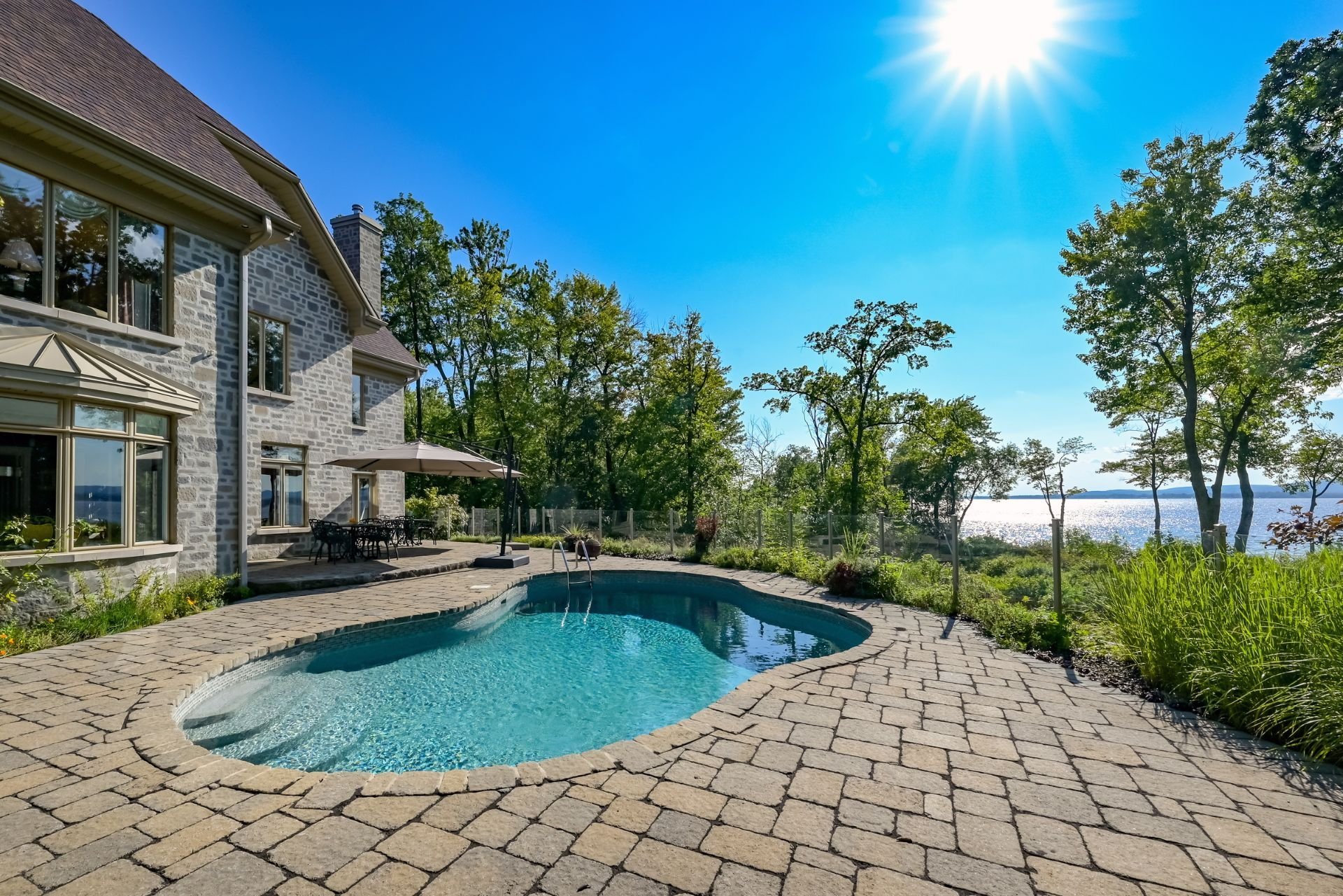 Ideally located just steps from the Parc-nature du Bois-de-L'Île-Bizard. At the end of a long winding, and very private driveway, this magnificent, meticulously maintained lakefront property on beautiful and secluded land on Lac des Deux-Montagnes with 250 ft of private waterfront. The west facing prestigious 5 bedroom home is impeccably maintained and offers stunning lake views and sunsets from almost every room, a sunny pool deck and a double integrated garage and a triple detached garage. The house and other buildings are not located in a flood zone.