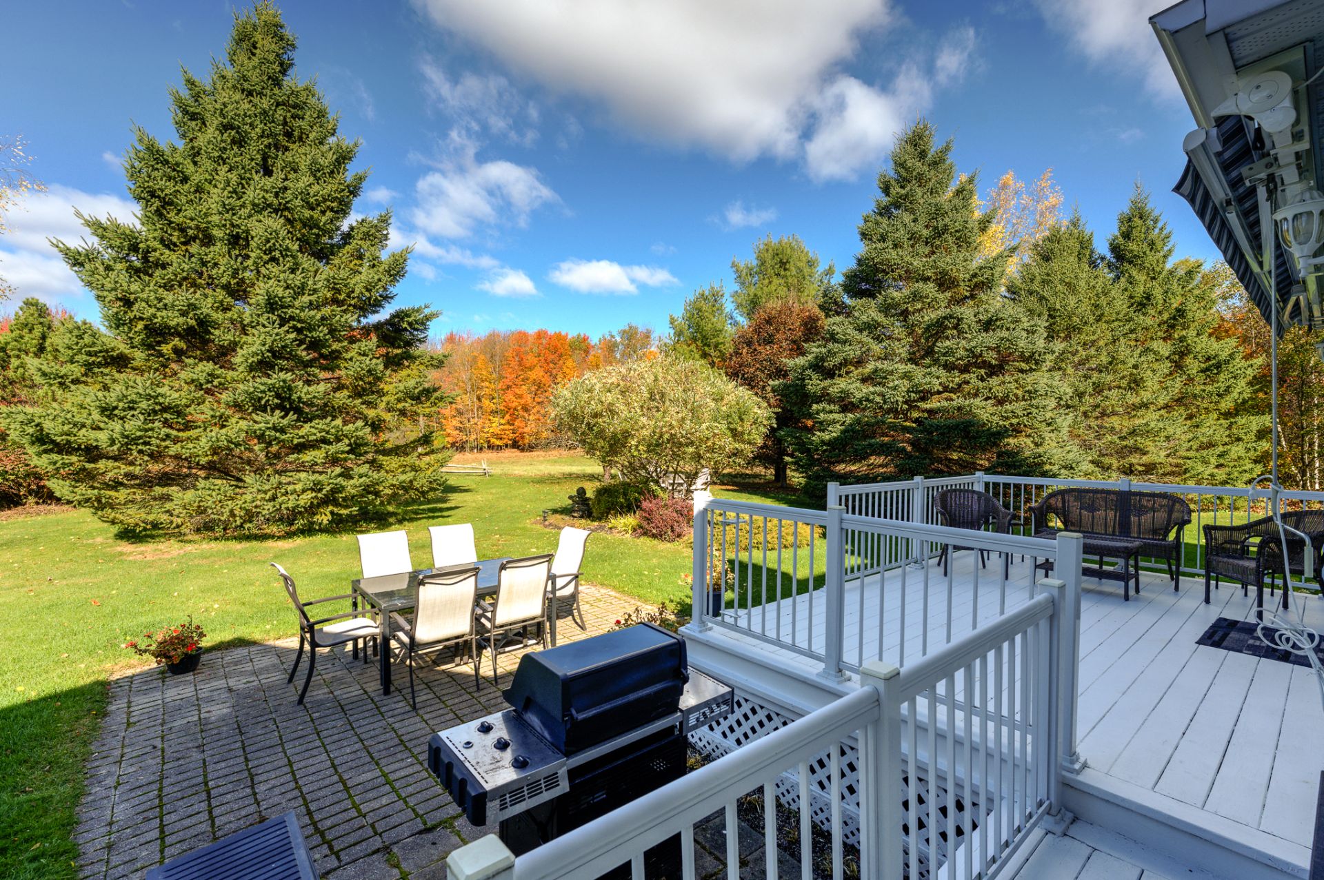Outdoors, life flows naturally between the screened veranda, the terrace with retractable awning, and the paved patio -- all surrounded by nearly 30,000 square feet of land with no rear neighbors.