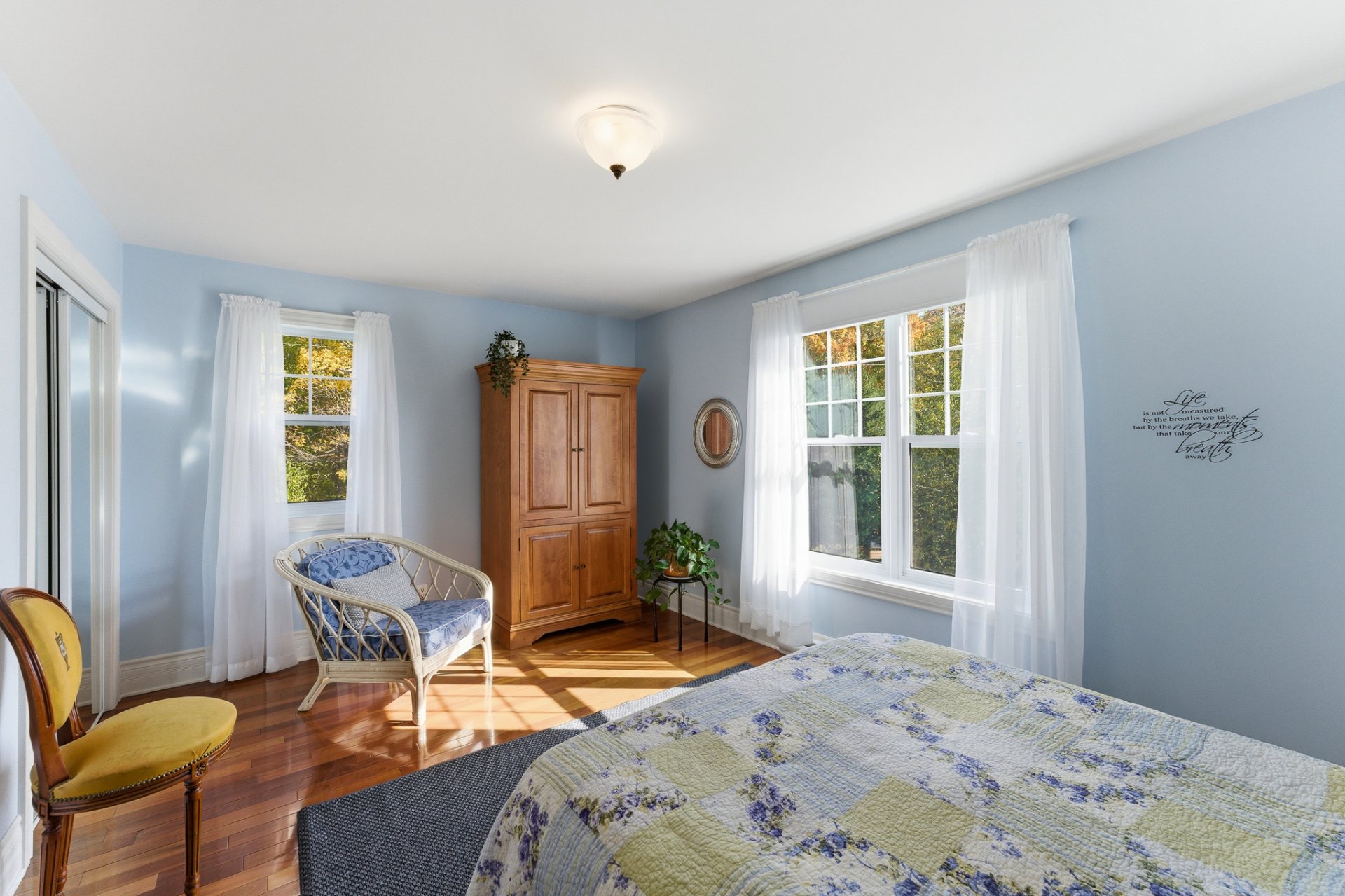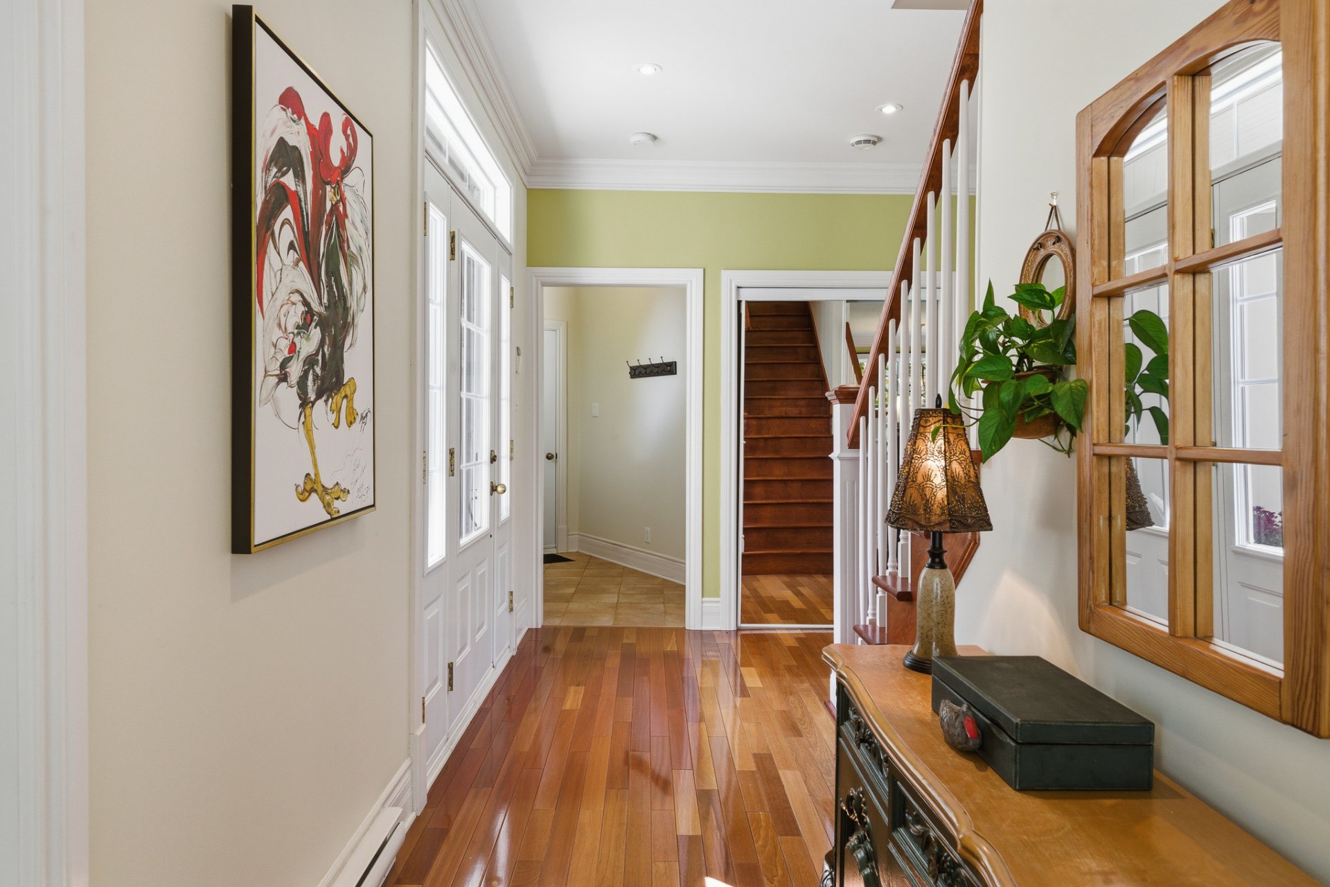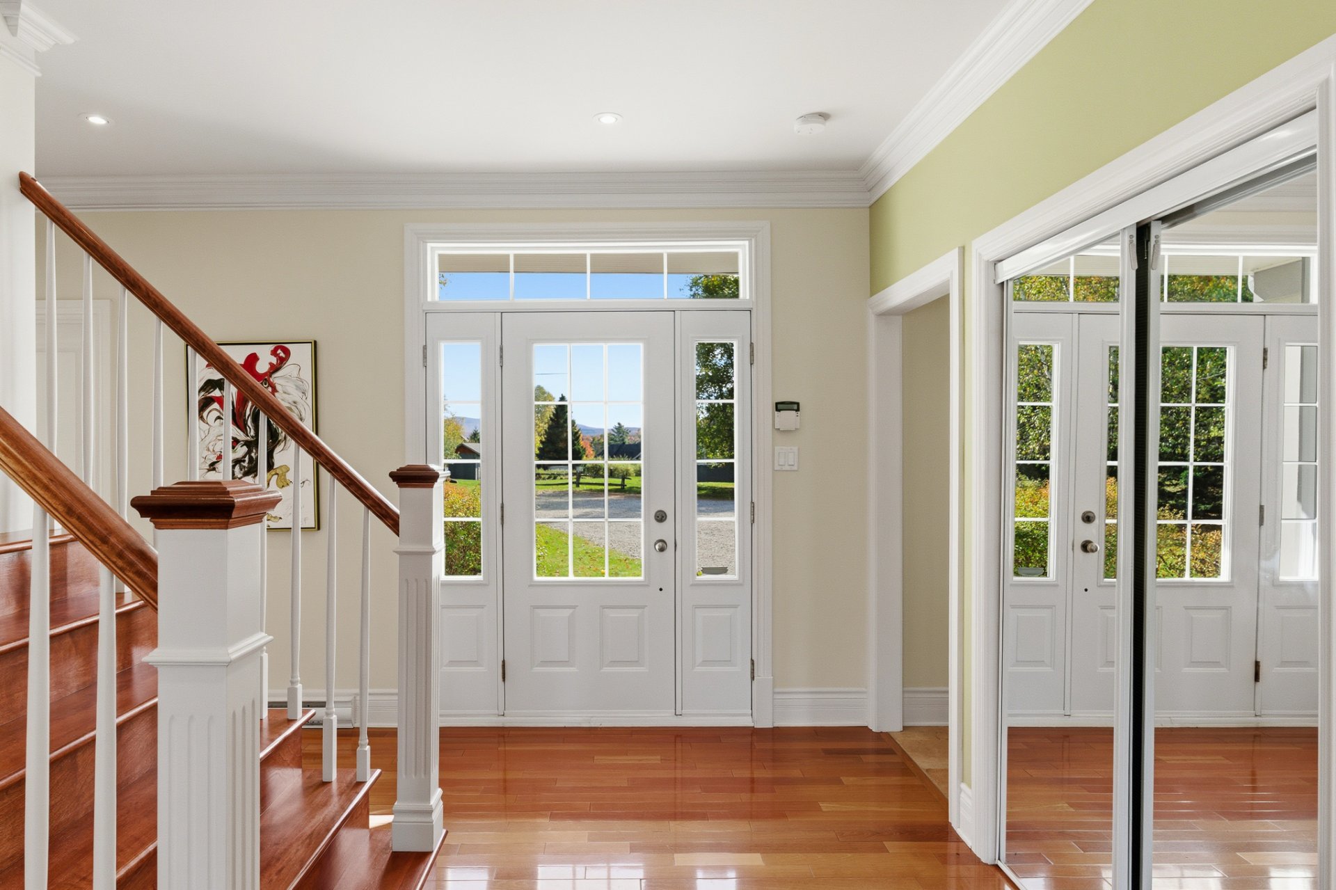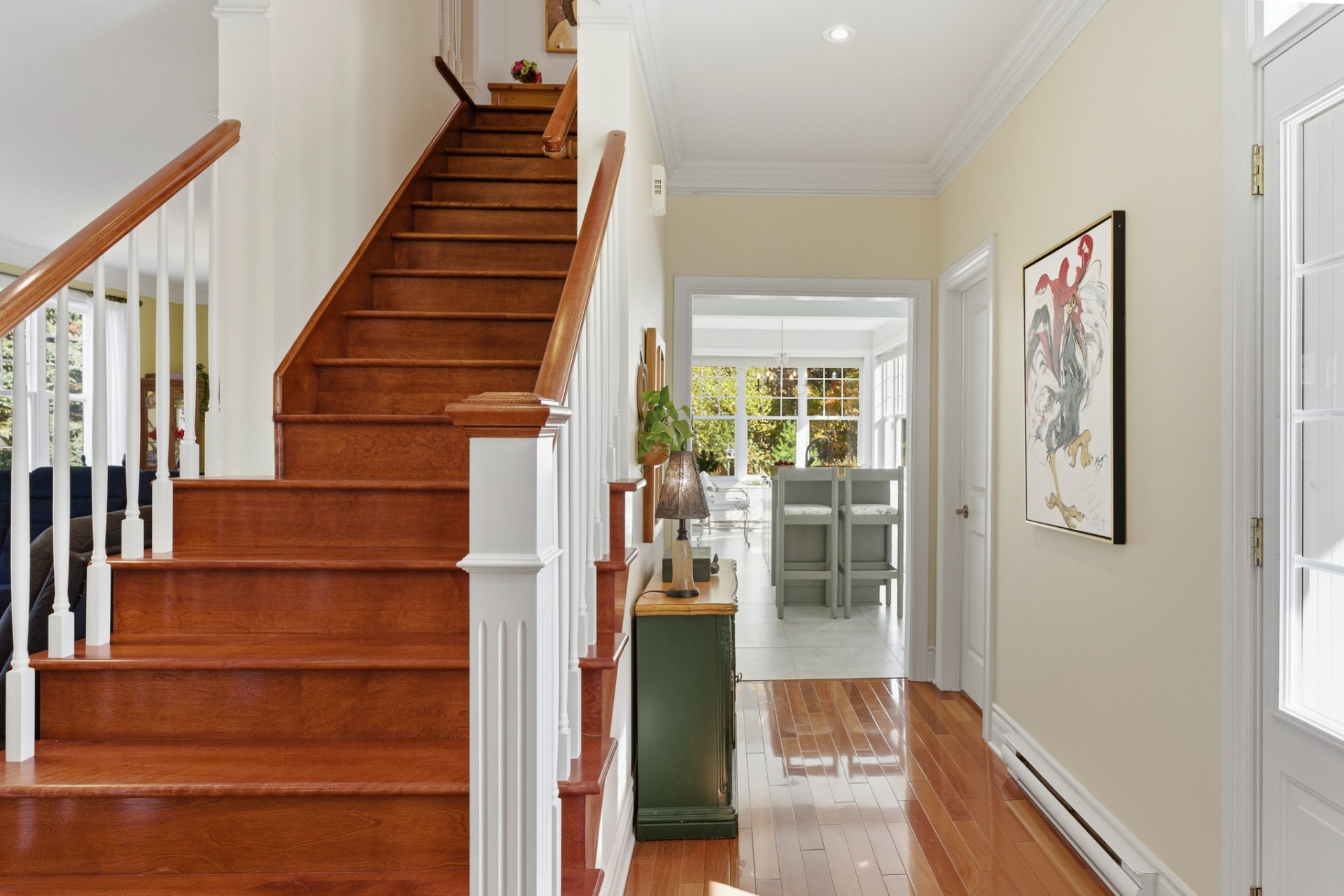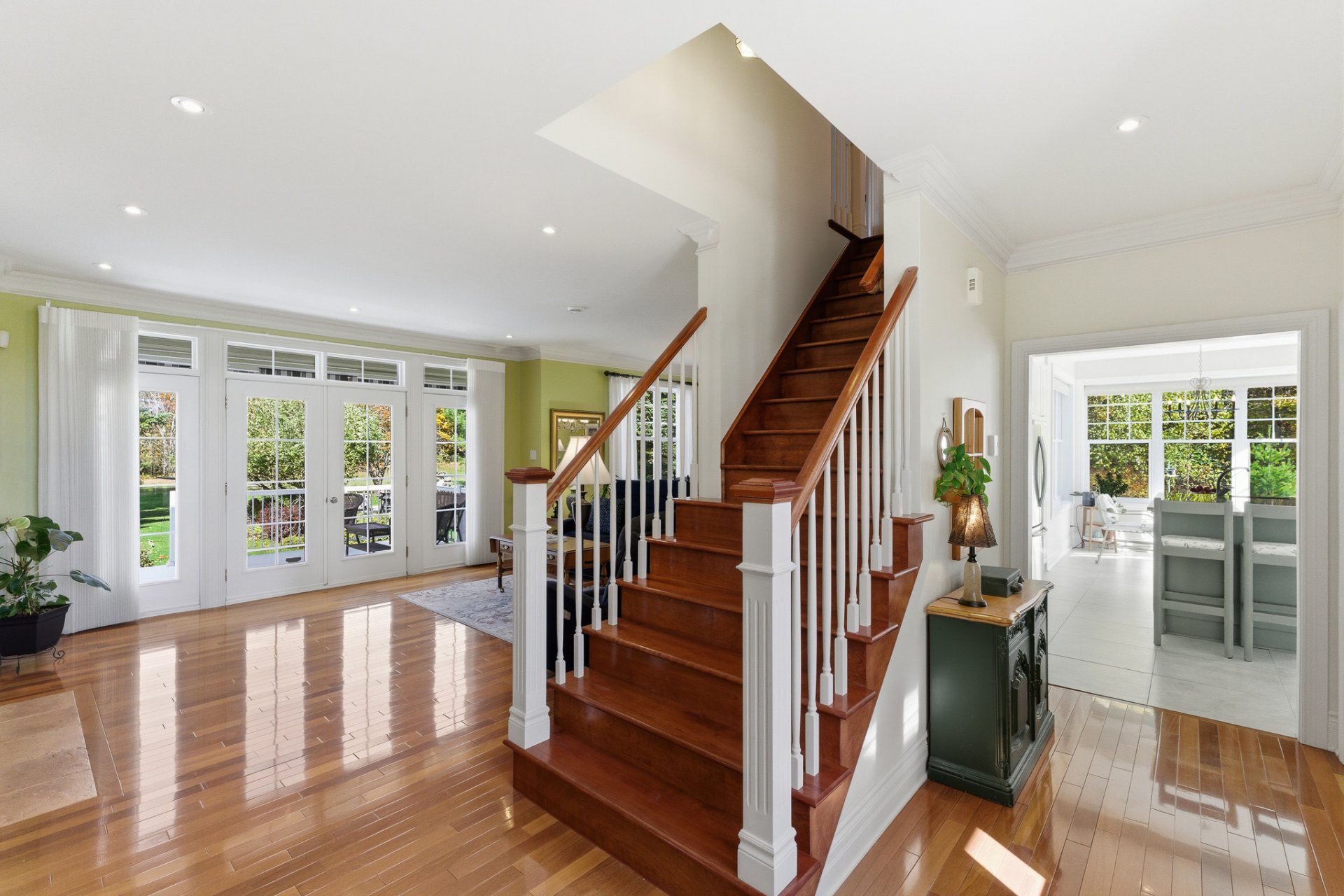 Bright and serene, the home showcases a timeless, classic style. From the moment you enter, the central staircase and hardwood floors set a tone of harmony and warmth, while the high ceilings enhance the sense of space and openness.