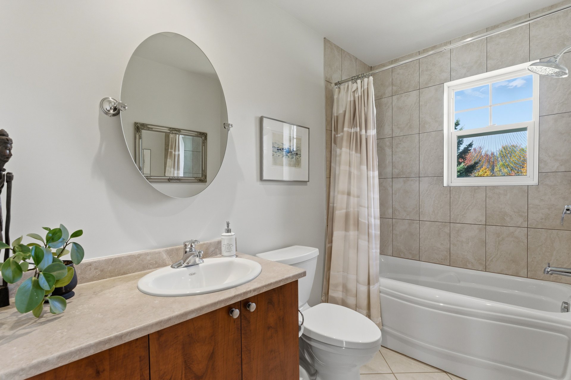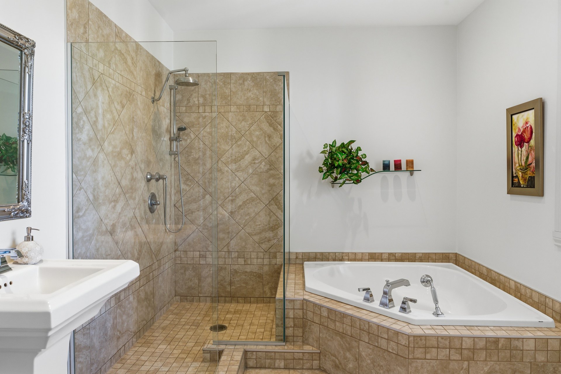 - Separate bath and glass shower