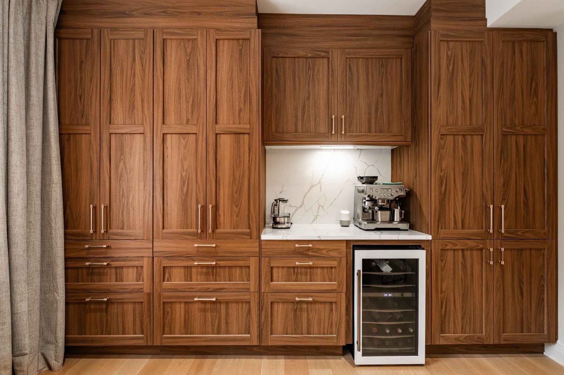 The property offers five bedrooms, including a primary suite with a walk-in closet and an ensuite bathroom. A total of three full bathrooms and one powder room are finished with quality materials and meticulous attention to detail.