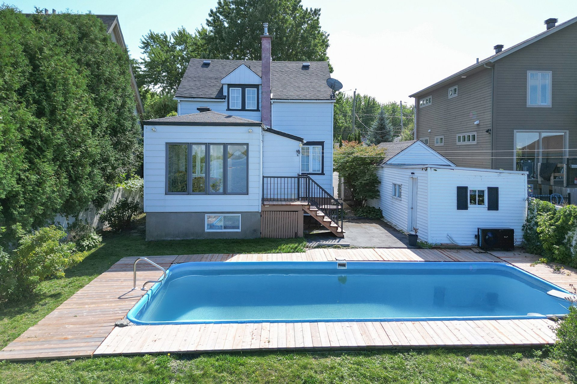 Waterfront rental opportunity in Candiac. Charming fully furnished home directly on the St. Lawrence River with exceptional views of Montréal. Offering 5 bedrooms, 2 living rooms, 2 full bathrooms + 1 powder room, garage, heated in-ground pool, and a large private yard. Direct water access, panoramic views, and a prestigious, quiet neighbourhood close to schools, parks, services, and highways.