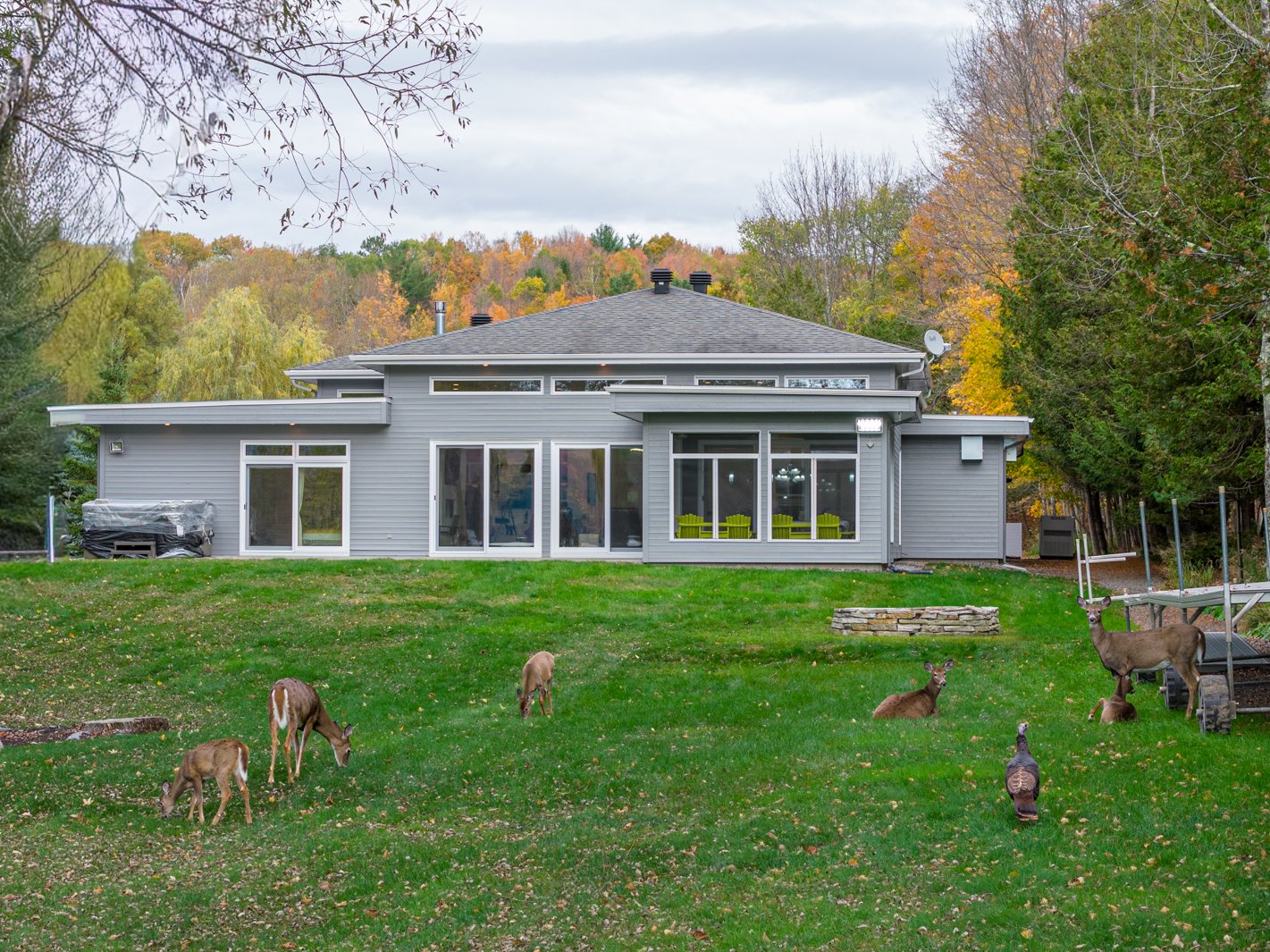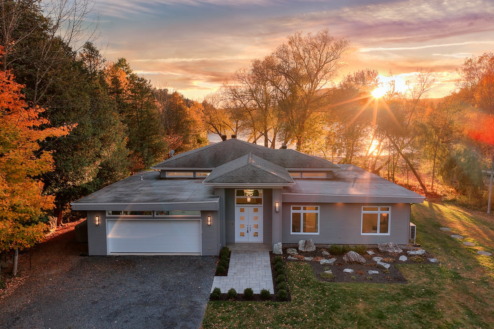 From the moment you arrive, the contemporary architecture with clean, refined lines integrates subtly into the surrounding wooded landscape. The carefully planned layout maximizes panoramic views of the lake and mountains, while offering spectacular sunsets--true living works of art that evolve with the seasons.