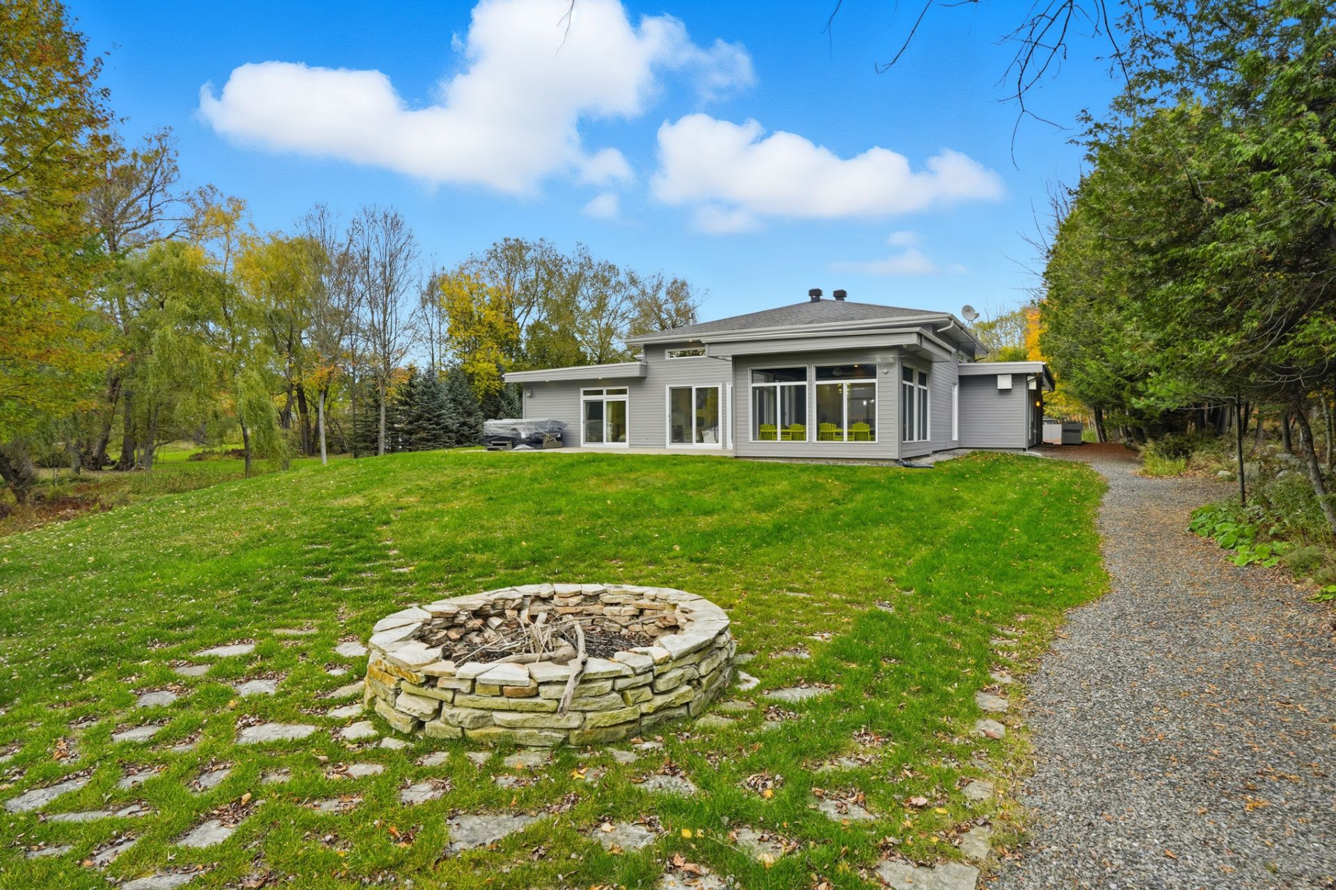 Nestled in the heart of one of Georgeville's most exclusive areas, this single-level residence embodies an elegant and contemporary interpretation of waterfront living. Set on a private lot of over 112,000 square feet, with direct frontage on the majestic Lake Memphremagog, the property offers a natural setting of rare beauty where privacy, serenity, and refinement blend seamlessly.