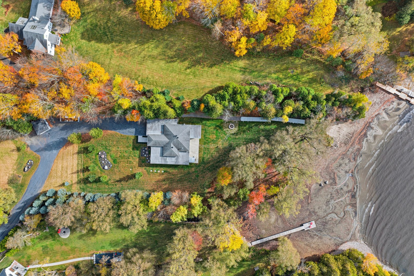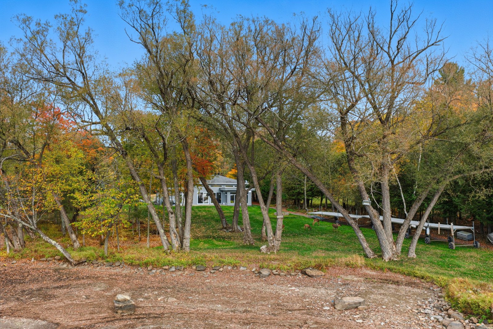 Outdoors, the exceptional grounds provide remarkable privacy and multiple possibilities for landscaping and outdoor living. With direct access to the lake, the property allows for full enjoyment of water activities, peaceful moments by the shoreline, or simply the absolute tranquility offered by the surrounding nature and wildlife.