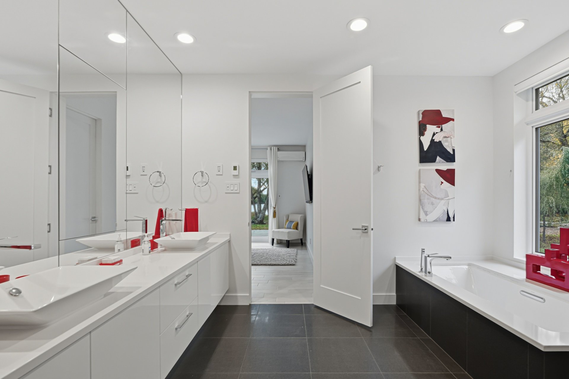 The residence offers four bedrooms, including a refined and soothing primary suite conceived as a true private sanctuary. The secondary bedrooms, bright and well-proportioned, provide great flexibility for accommodating family and guests or meeting the needs of remote work. The bathrooms feature carefully selected finishes in a contemporary style that is both understated and elegant.