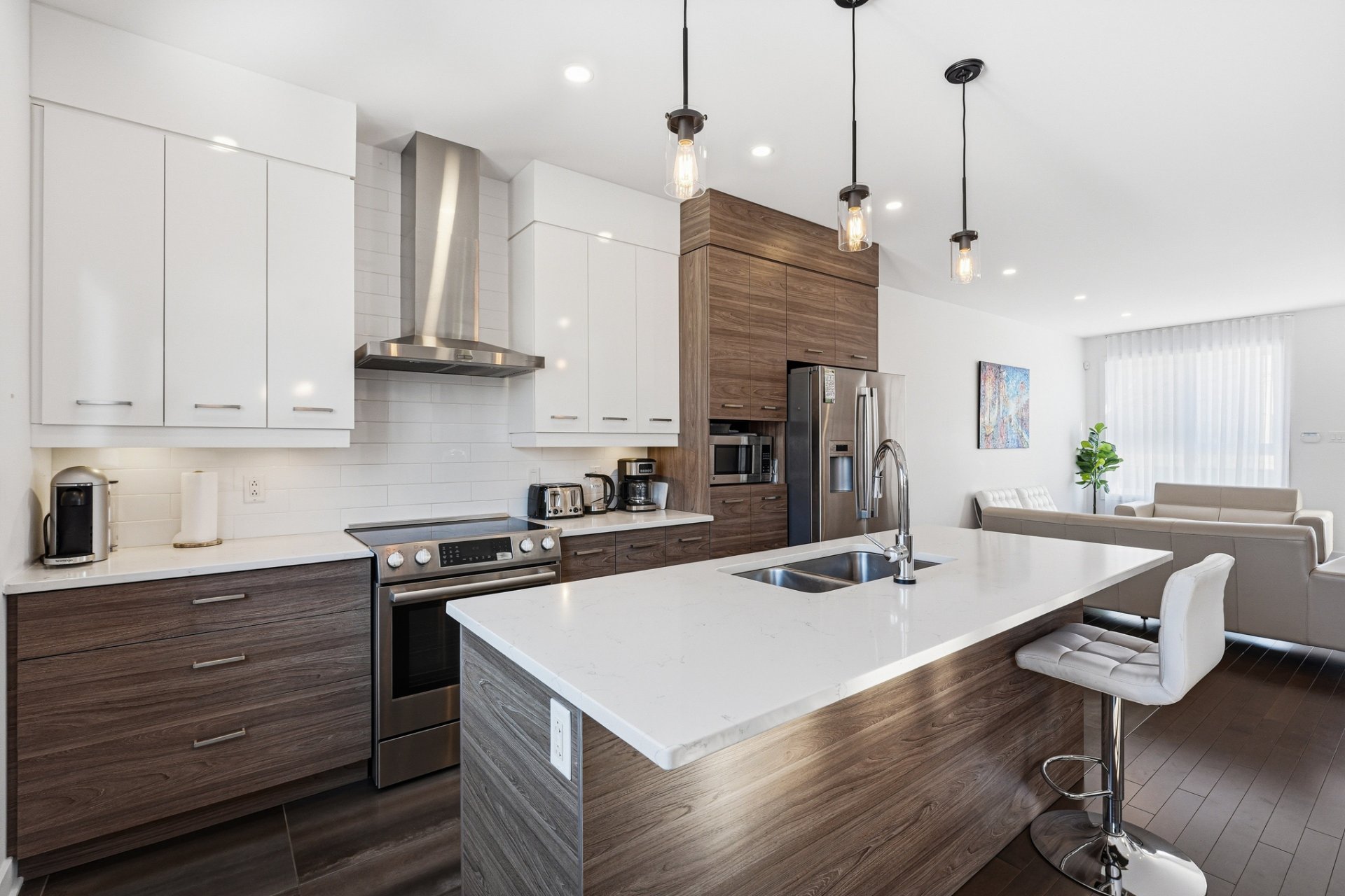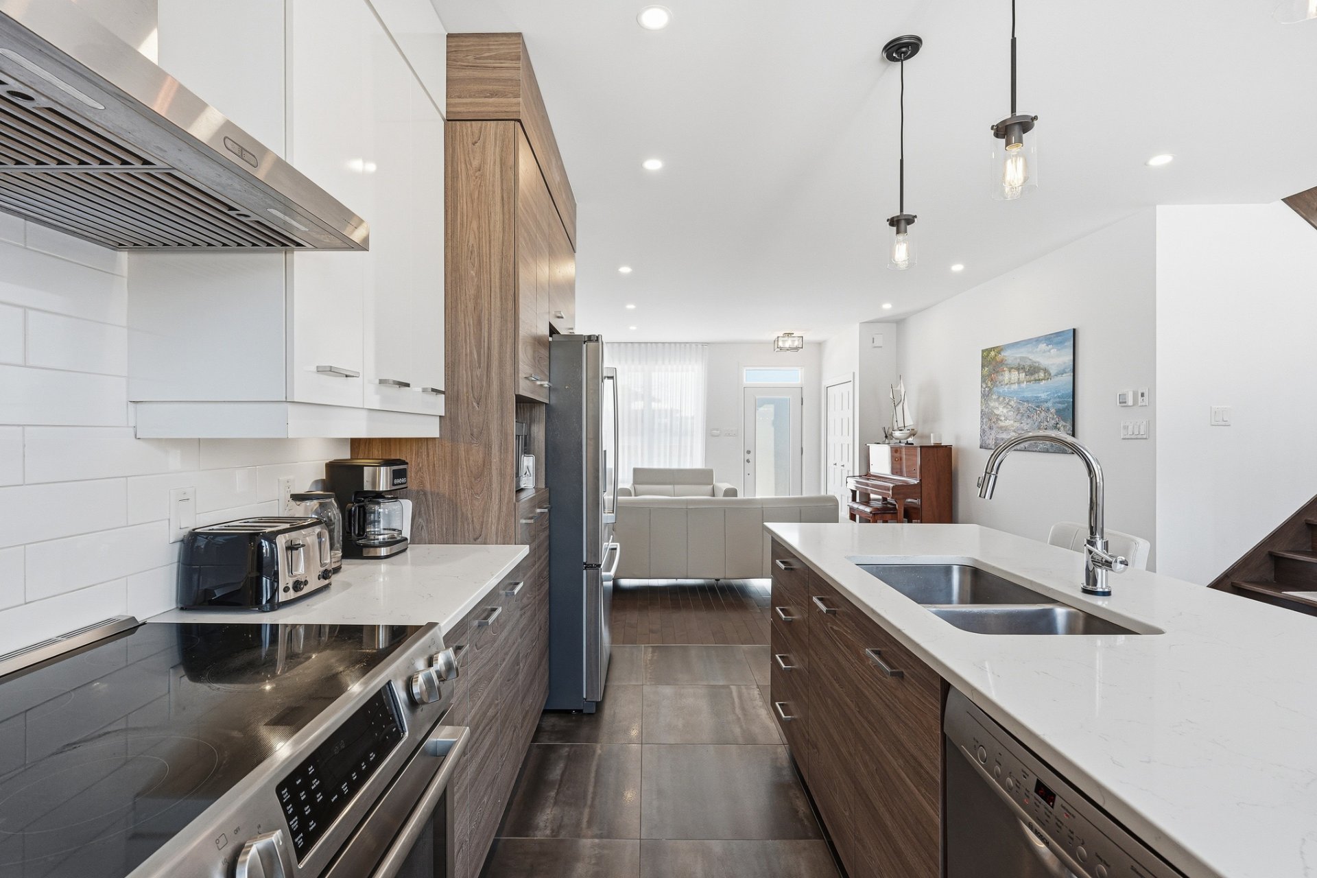 Beautiful semi-detached cottage located in a prestigious and quiet neighborhood close to all amenities, elementary and secondary schools, an aquatic center, parks, bike paths, the REM light rail network, and the Quartier DIX30 shopping center. This high-end home stands out with its large windows, ideally laid-out open living spaces, great quality finishings including a huge quartz kitchen island, a spacious garden, a single garage with high ceilings, and a charming unistone driveway. A must-see!
