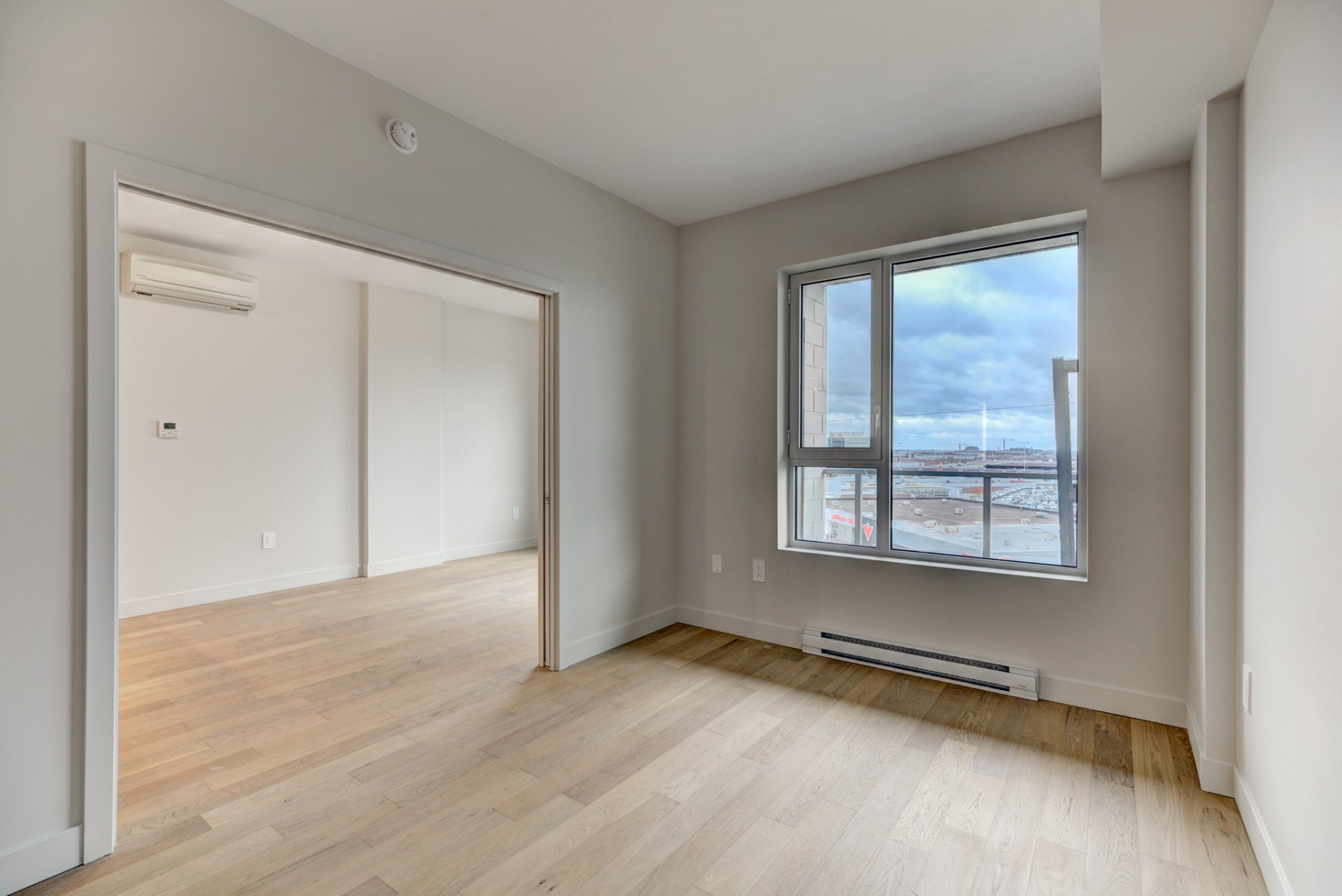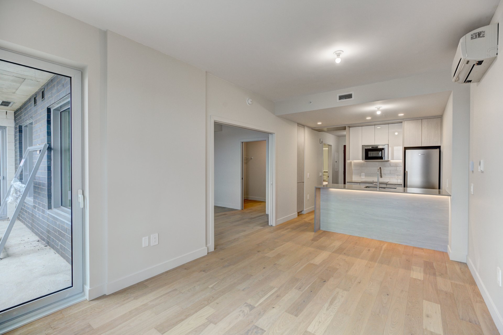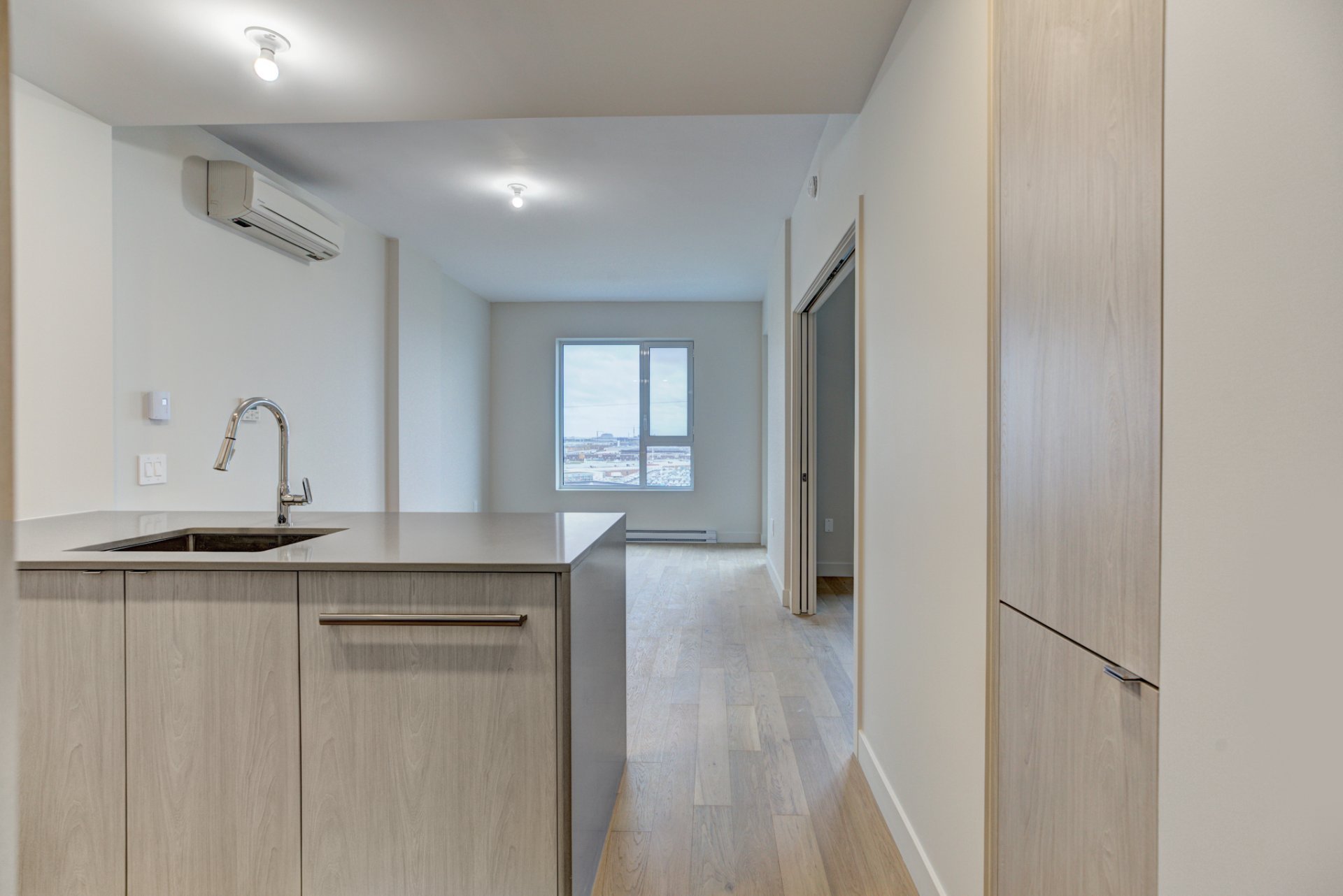 Welcome to the newly built luxury project, MONARC CONDOS, located in the heart of Ville Saint-Laurent. Designed by award-winning firm Lemay + Escobar, this LEED-certified development blends contemporary elegance with eco-conscious living. This spacious one-bedroom condo features high-end finishes throughout, including quartz countertops, engineered hardwood floors, and floor-to-ceiling windows that bathe the unit in natural light. The open-concept layout offers a modern kitchen with built-in appliances, a sleek bathroom with designer fixtures, and ample storage space.