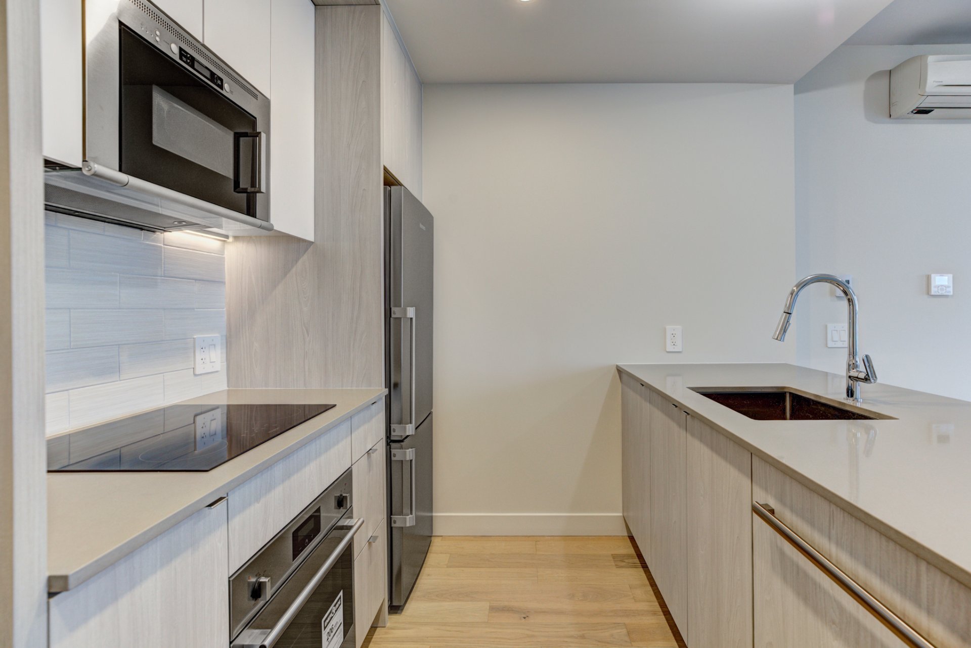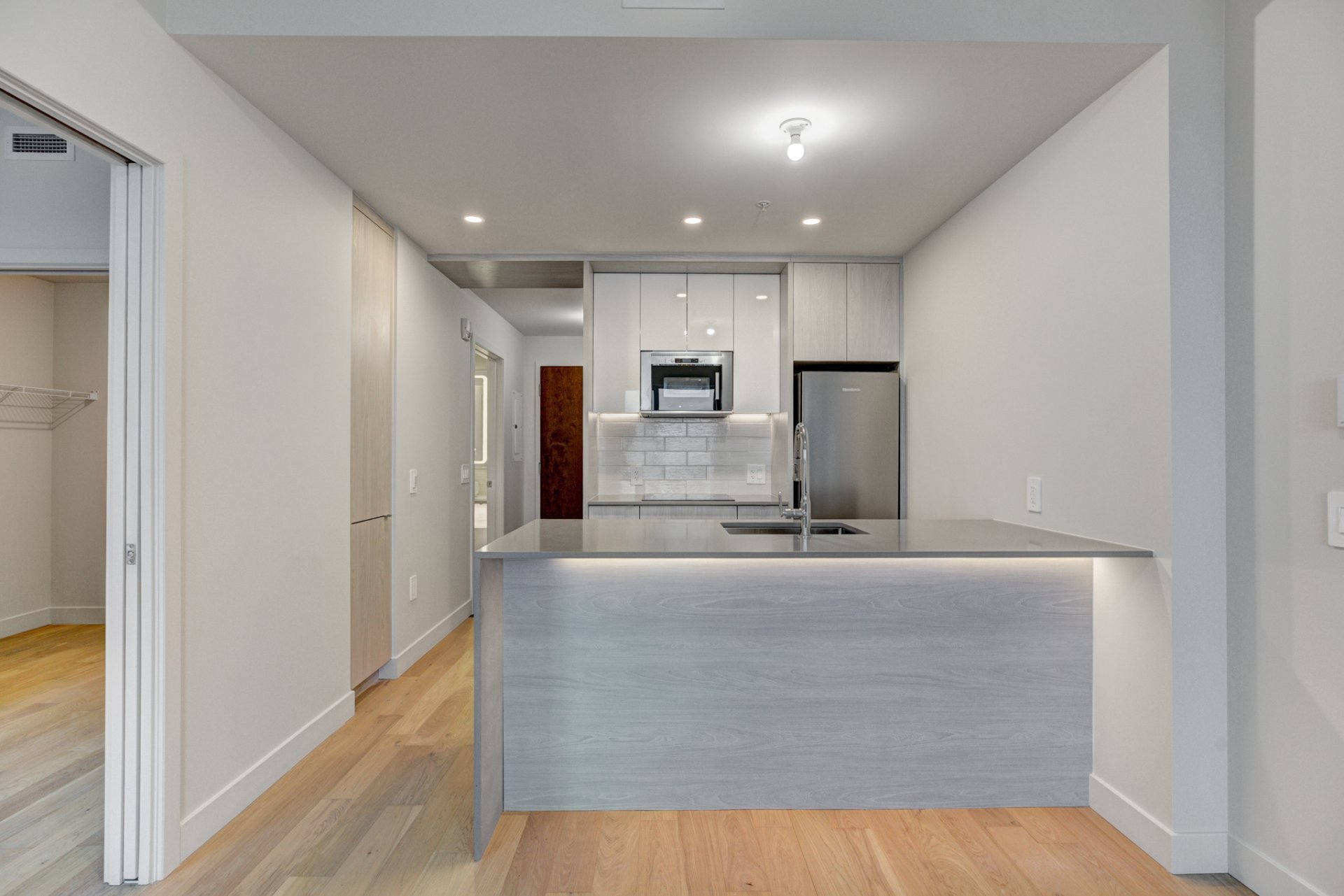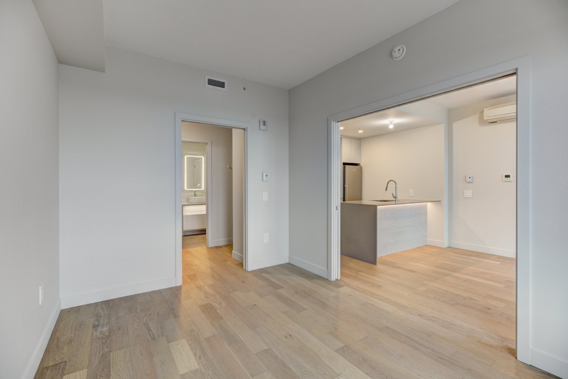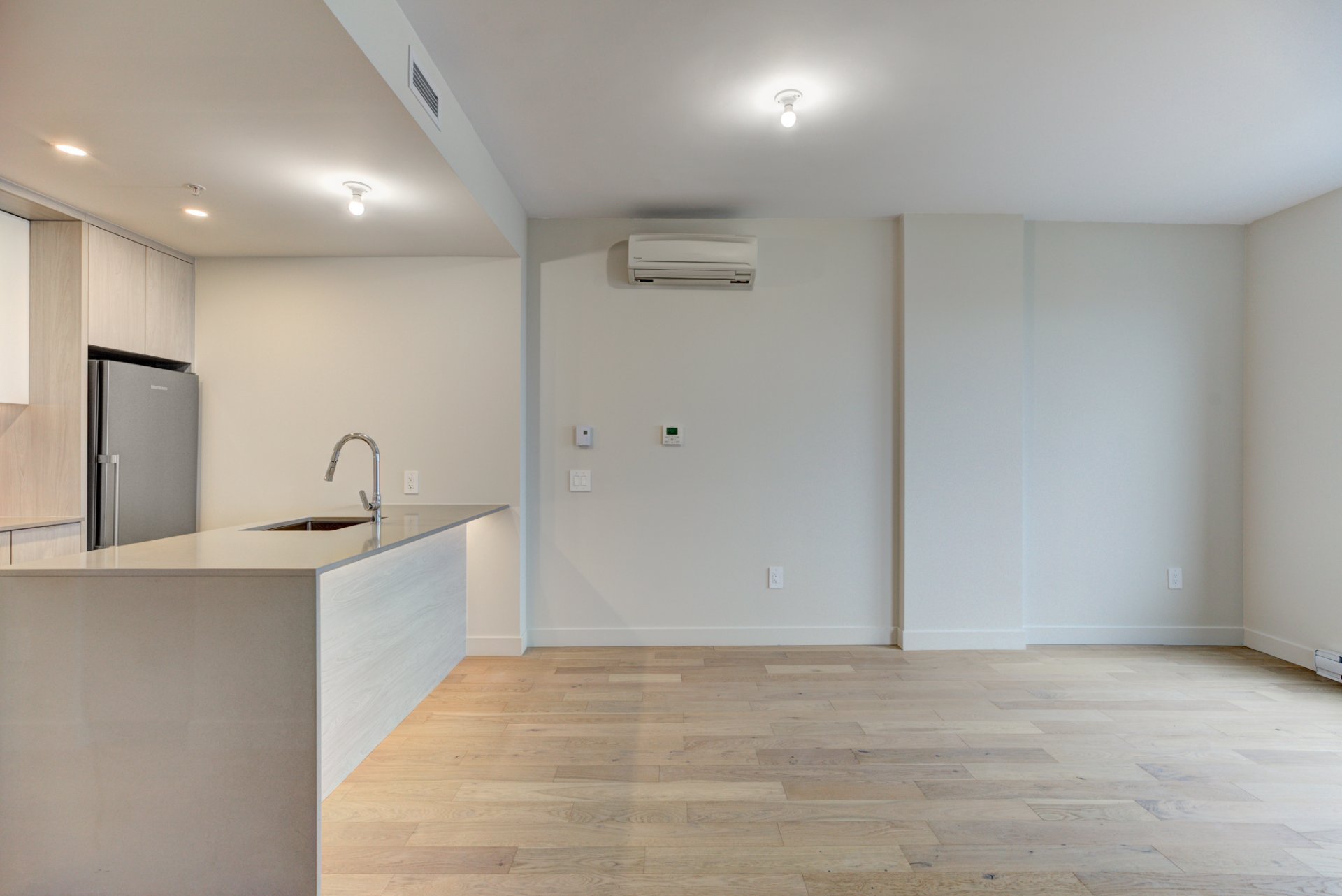 Welcome to the newly built luxury project, MONARC CONDOS, located in the heart of Ville Saint-Laurent. Designed by award-winning firm Lemay + Escobar, this LEED-certified development blends contemporary elegance with eco-conscious living. This spacious one-bedroom condo features high-end finishes throughout, including quartz countertops, engineered hardwood floors, and floor-to-ceiling windows that bathe the unit in natural light. The open-concept layout offers a modern kitchen with built-in appliances, a sleek bathroom with designer fixtures, and ample storage space.