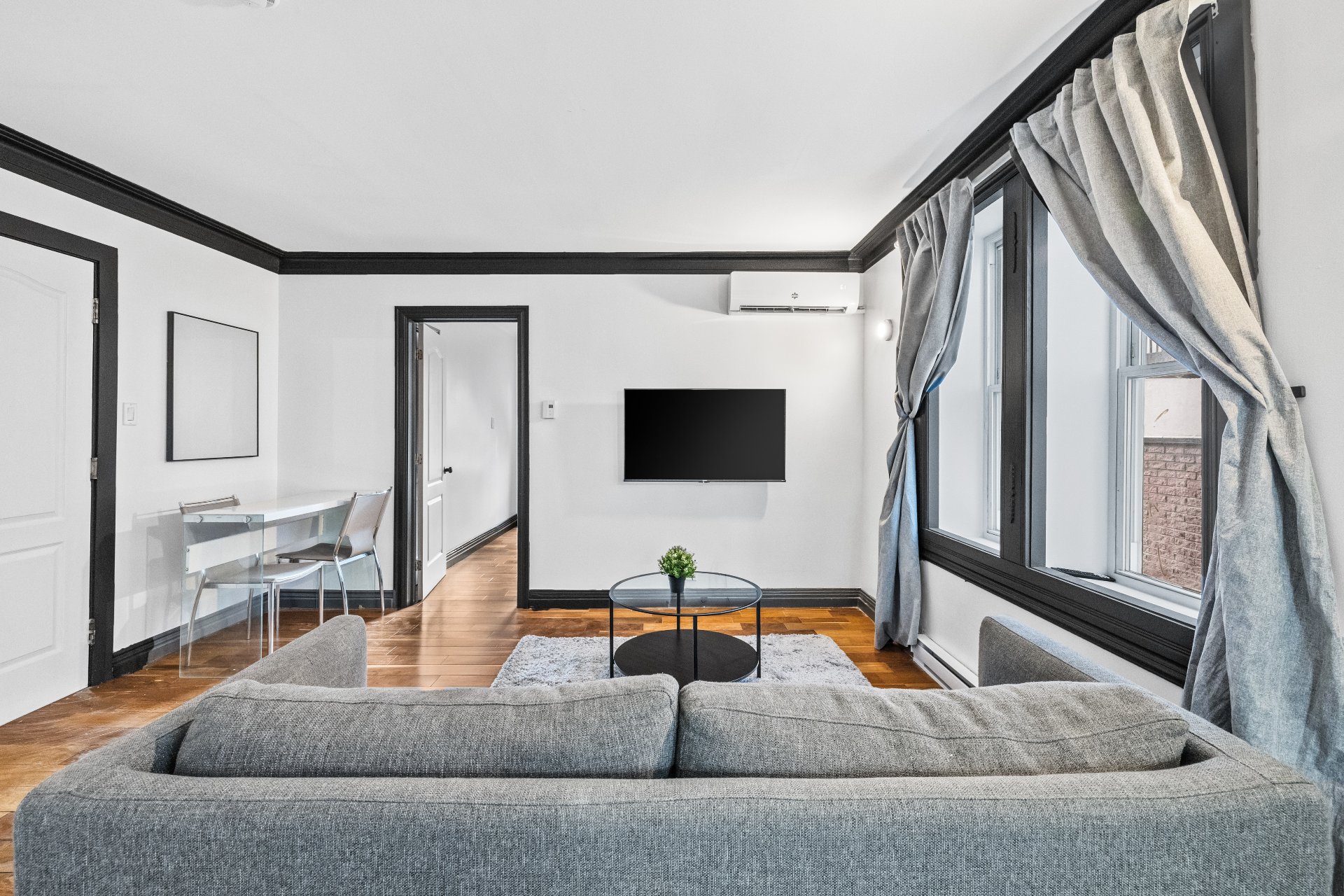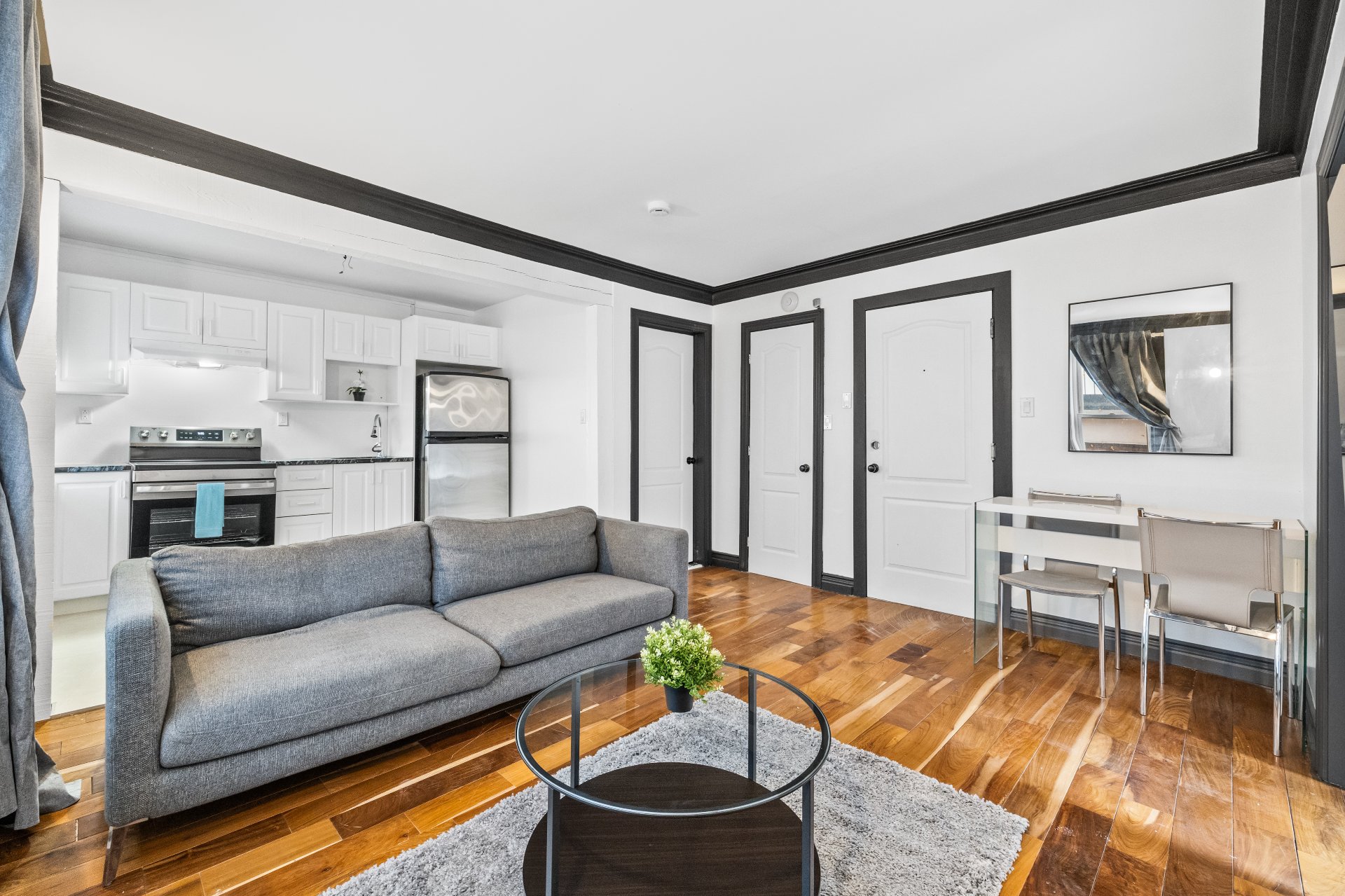 Modern and stylish, this beautifully renovated one bedroom unit at 1226 Drummond offers turnkey living in one of Montreal's most prestigious neighborhoods. Featuring a sleek open layout, quality finishes, and designer furnishings, it's the perfect urban retreat -- just steps from the city's best dining, shopping, and transit. Ideal for professionals or students seeking style, comfort, and unbeatable location. Peel and Lucien L'Allier metro stations only minutes away. Should the tenant prefer an unfurnished option, the furniture may be removed upon request.
