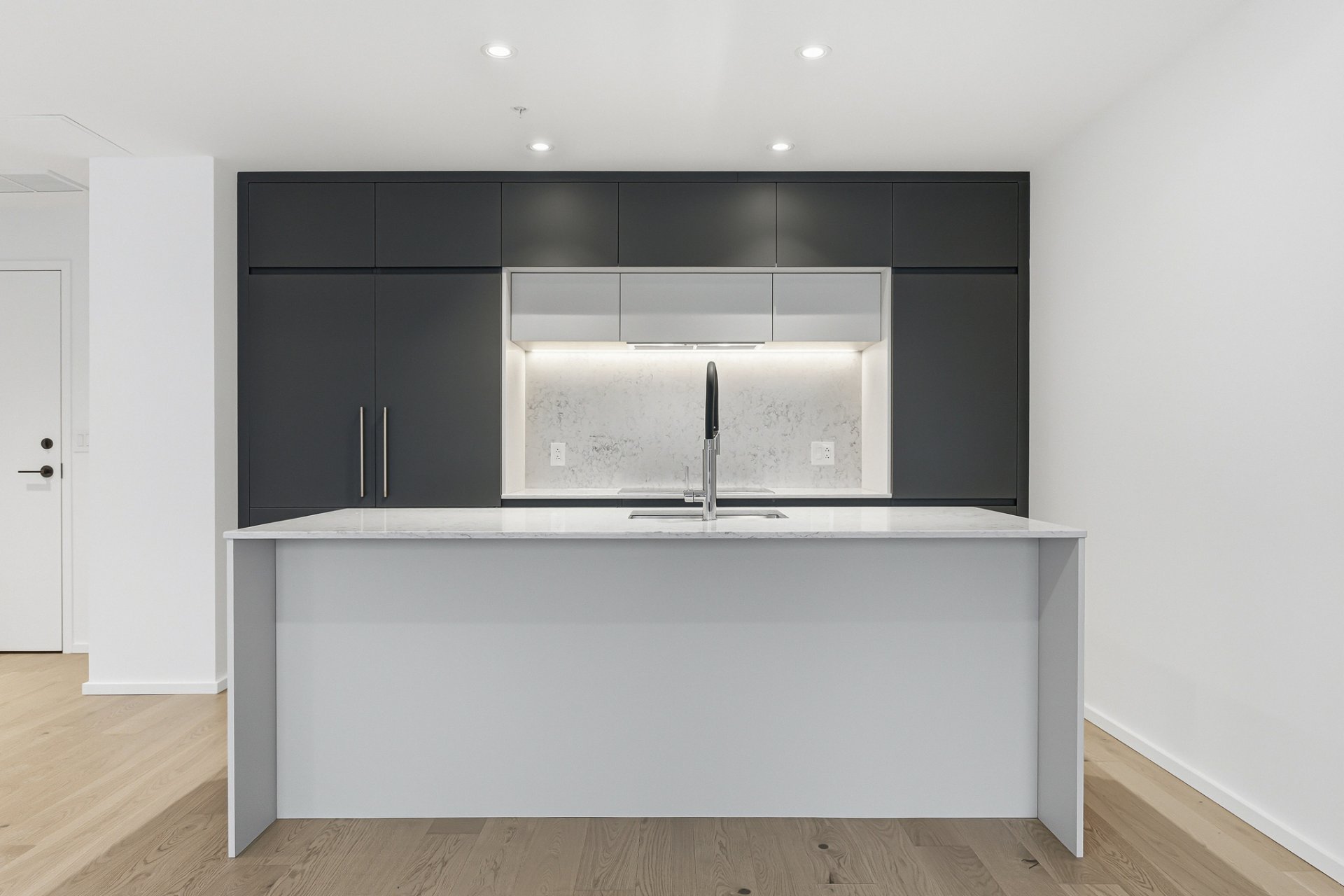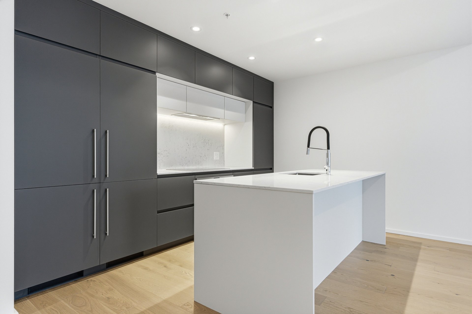 Kitchen finishes of your choice: Contemporary style kitchen furniture; Quartz countertop 3/4'' thick; Backsplash in quartz, Stainless steel sink with contemporary single-control faucet and integrated Grohe brand shower; Appliances including: dishwasher, refrigerator, built-in oven, hob and hood.