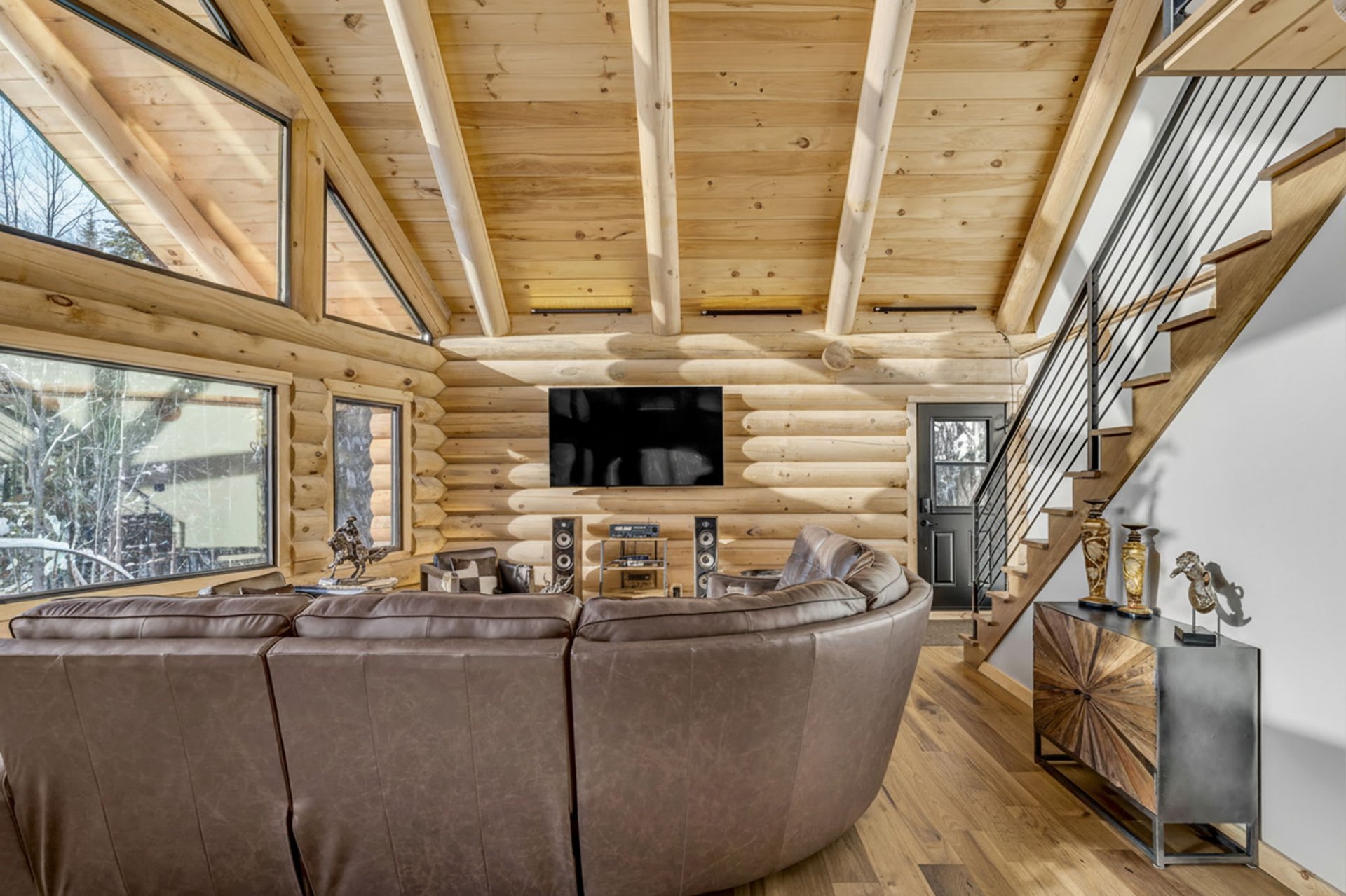 Open-concept design with cathedral ceiling