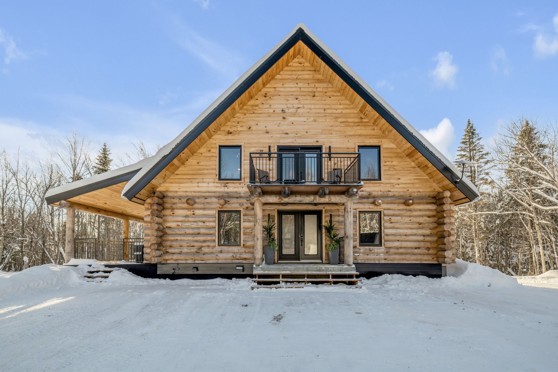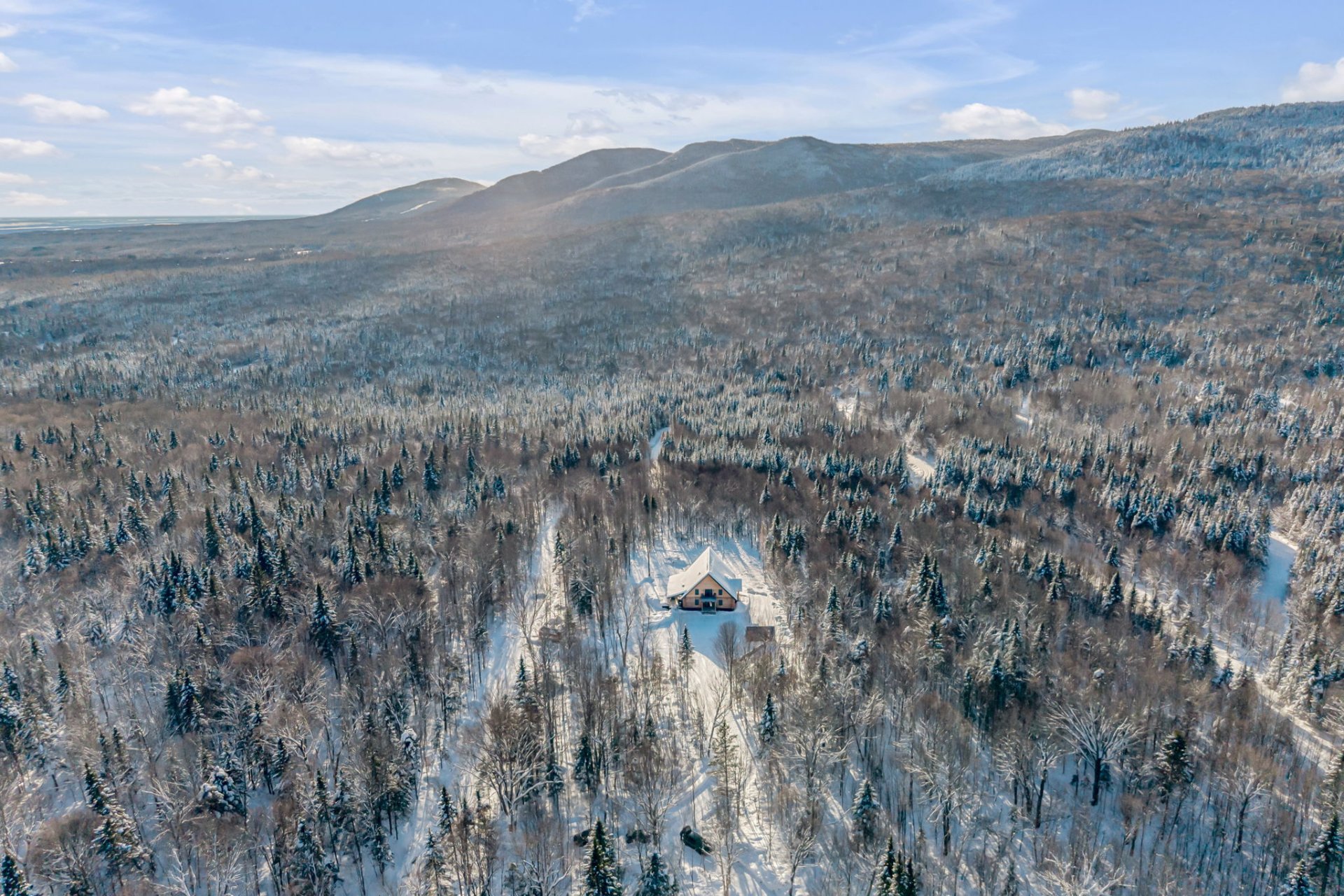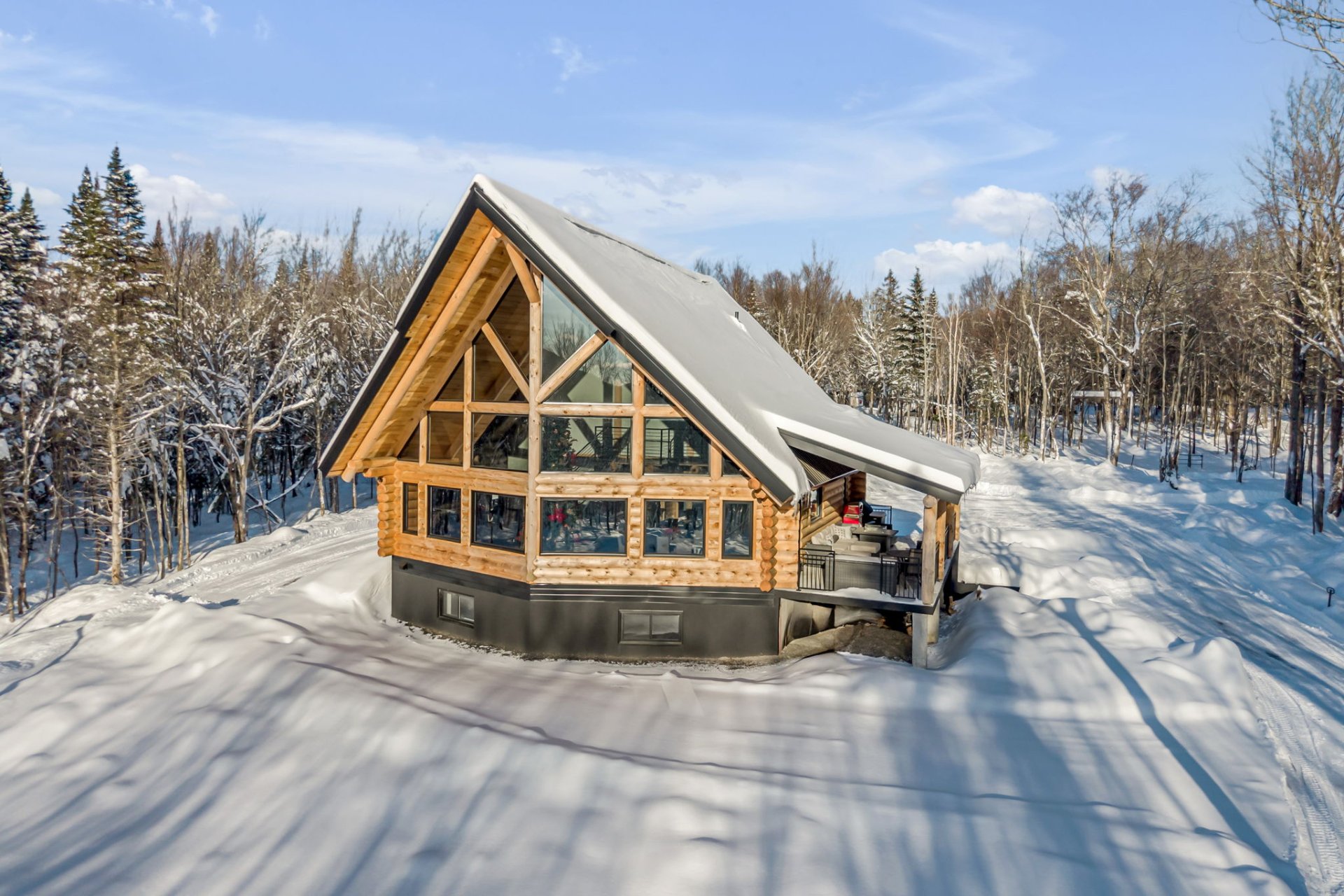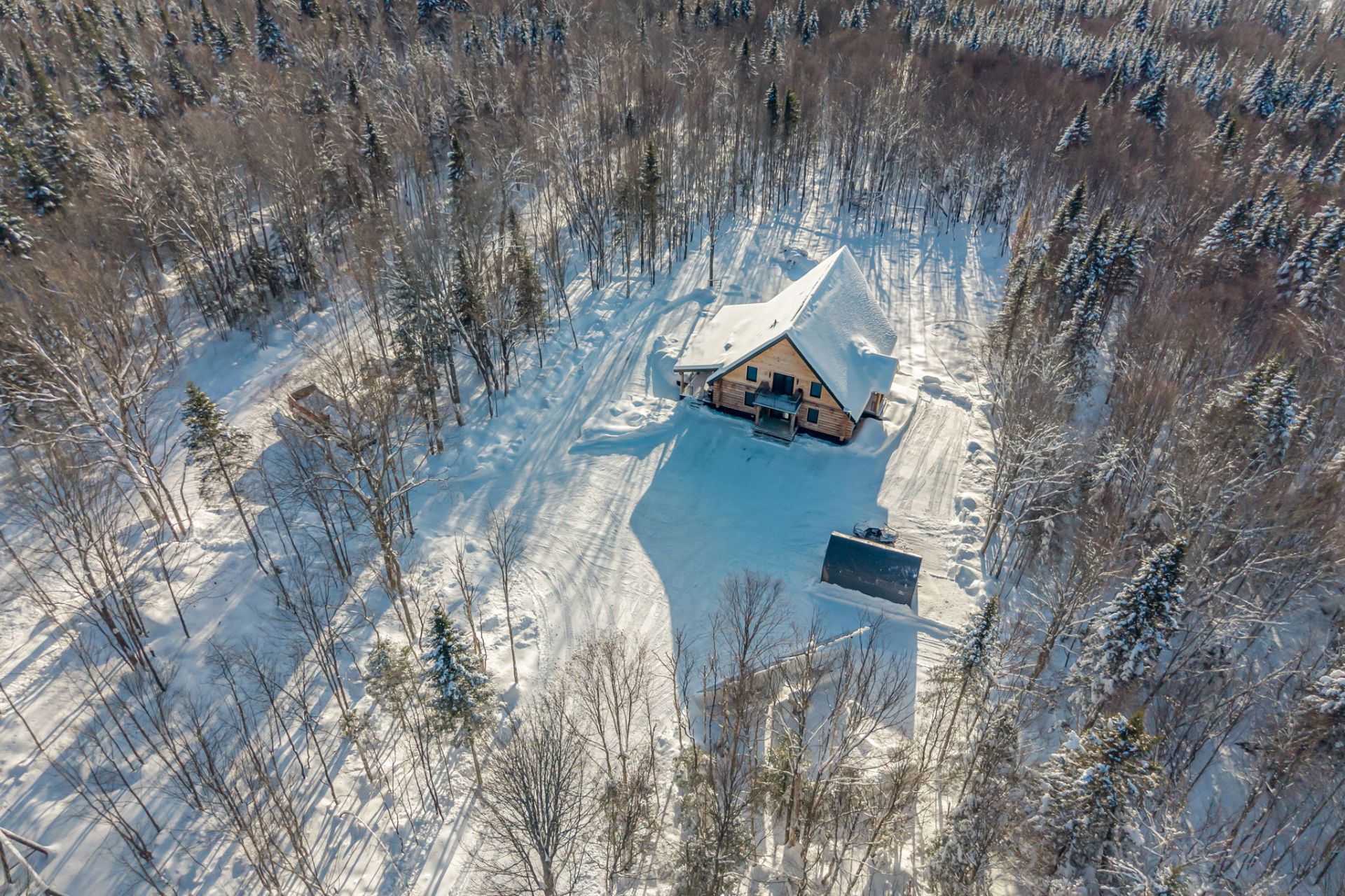 An exceptional private estate of over 102,982 m², located just minutes from Mont-Sainte-Anne. This magnificent log cabin boasts unparalleled natural light thanks to its panoramic windows and grand architecture. The property is 100% self-sufficient, powered by solar panels, and features complete home automation and 16 surveillance cameras. The wooded land includes a river, trails, maple grove potential, and hunting areas. A fully equipped triple garage completes the picture. Enjoy absolute privacy, tranquility, and breathtaking natural surroundings. A unique location combining luxury, self-sufficiency, and exclusivity. A rare opportunity!