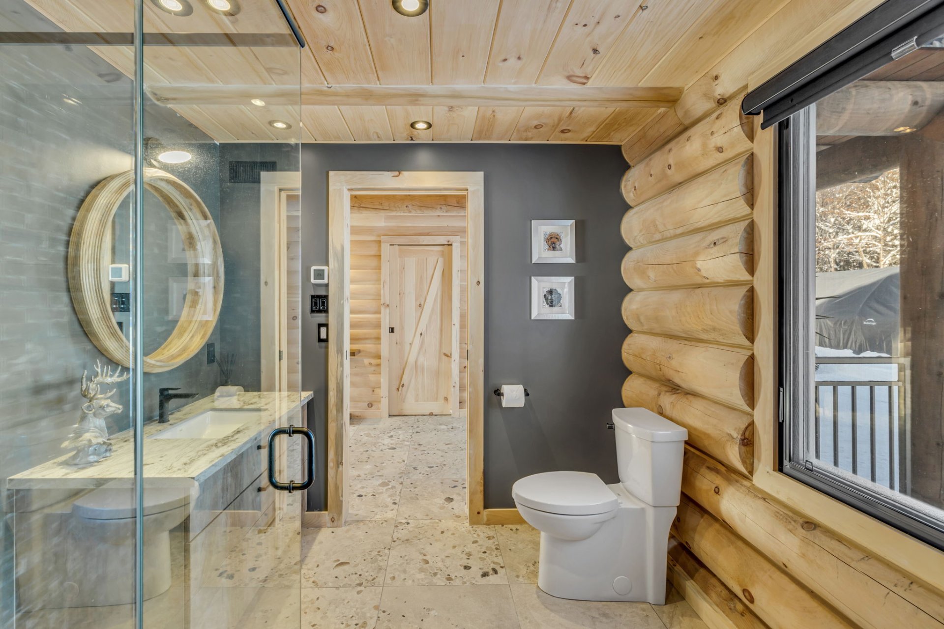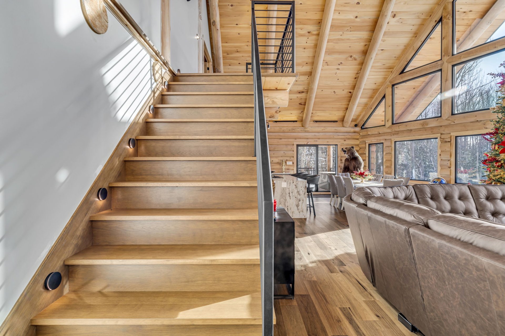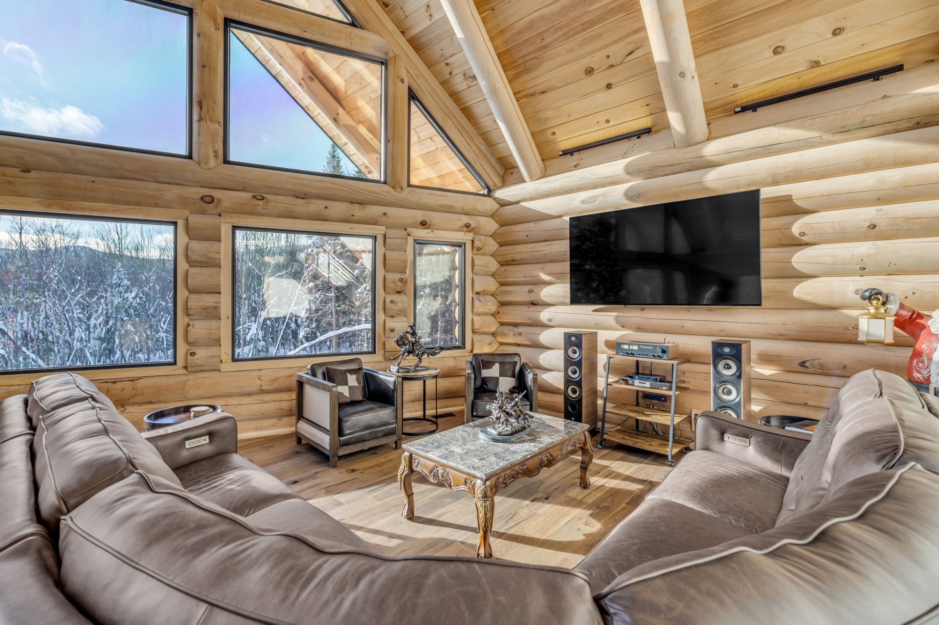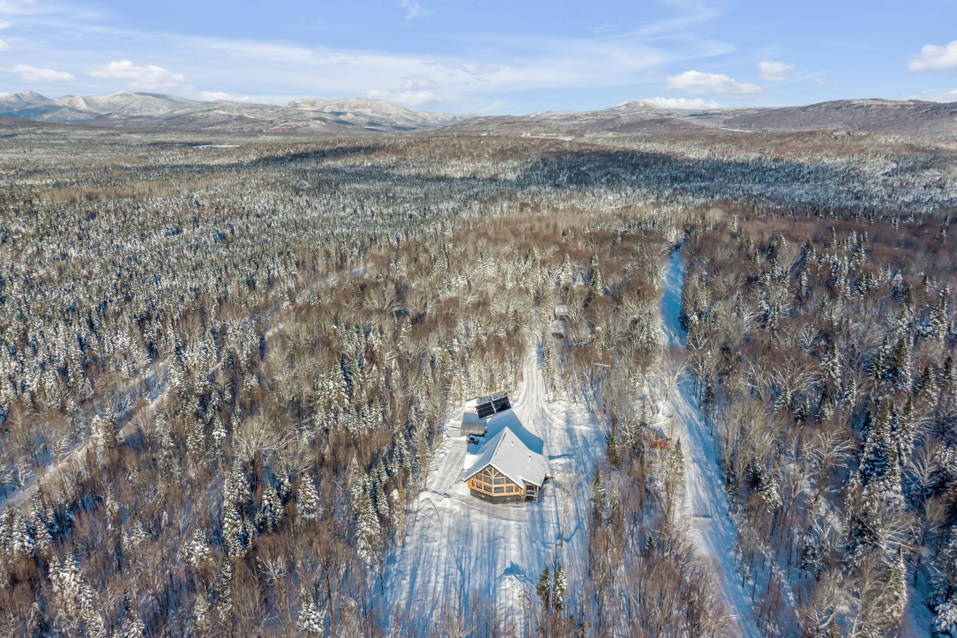 An exceptional private estate of over 102,982 m², located just minutes from Mont-Sainte-Anne. This magnificent log cabin boasts unparalleled natural light thanks to its panoramic windows and grand architecture. The property is 100% self-sufficient, powered by solar panels, and features complete home automation and 16 surveillance cameras. The wooded land includes a river, trails, maple grove potential, and hunting areas. A fully equipped triple garage completes the picture. Enjoy absolute privacy, tranquility, and breathtaking natural surroundings. A unique location combining luxury, self-sufficiency, and exclusivity. A rare opportunity!