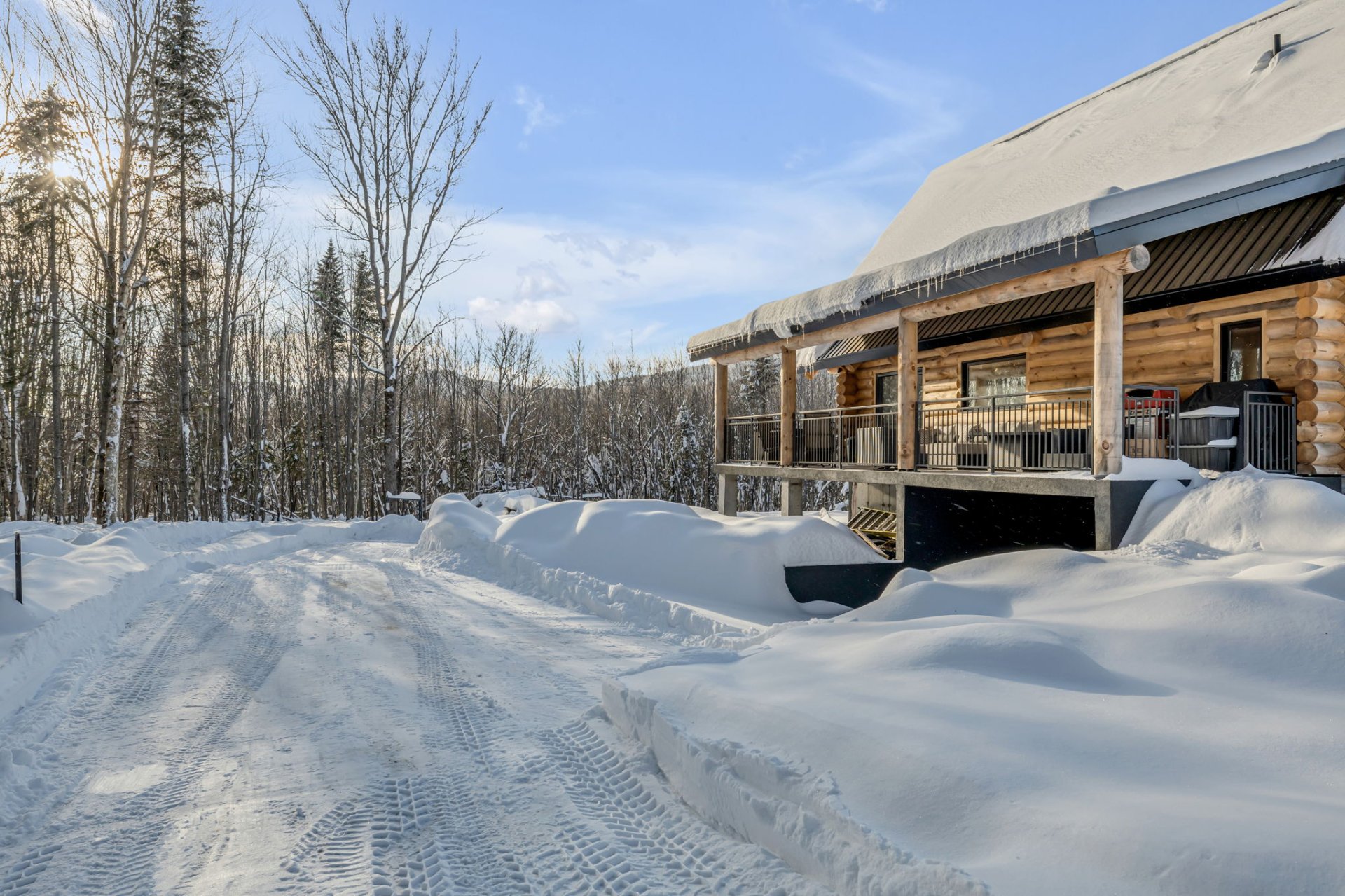 - Fully furnished and equipped (2025), including: Furniture & decoration: All furniture and lighting fixtures, staircase carpet, bathroom fabric, taxidermy. Equipment & appliances (all), central vacuum, heat pump, air exchanger. Garage & vehicles: Garage storage, 5 small four-wheelers. Exterior & leisure activities: Patio set, outdoor kitchen. 2 containers, gas tank, surveillance cameras.