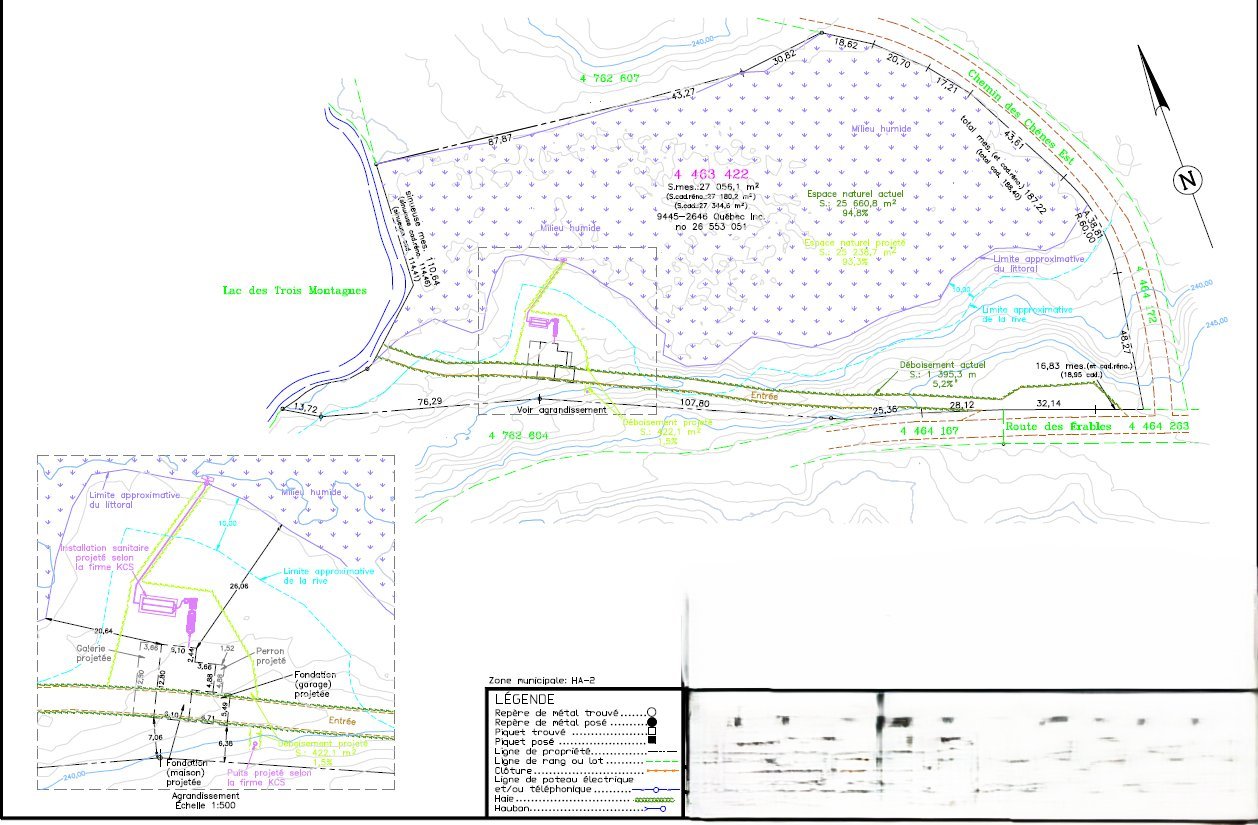Exceptional waterfront opportunity in La Conception! Seize this rare chance to acquire a 6.6-acre waterfront lot on Lac des Trois Montagnes, a navigable lake. Located on the beautiful Route des Érables, this lot comes with approved building permits for a three-bedroom home and a garage, buildable on approximately 1 acre. With an approved autonomous septic system and electricity currently being connected, this site is ideal for bringing your dream project to life. Don't miss this unique opportunity to own a piece of paradise on the water!
