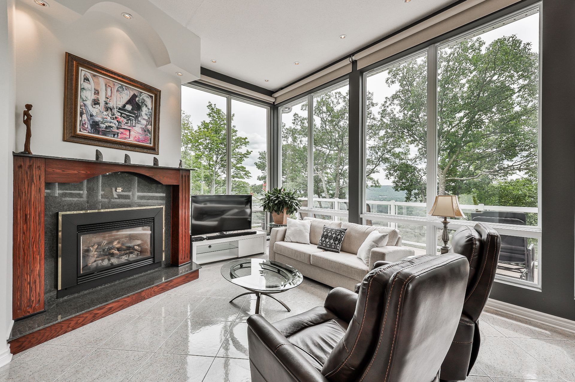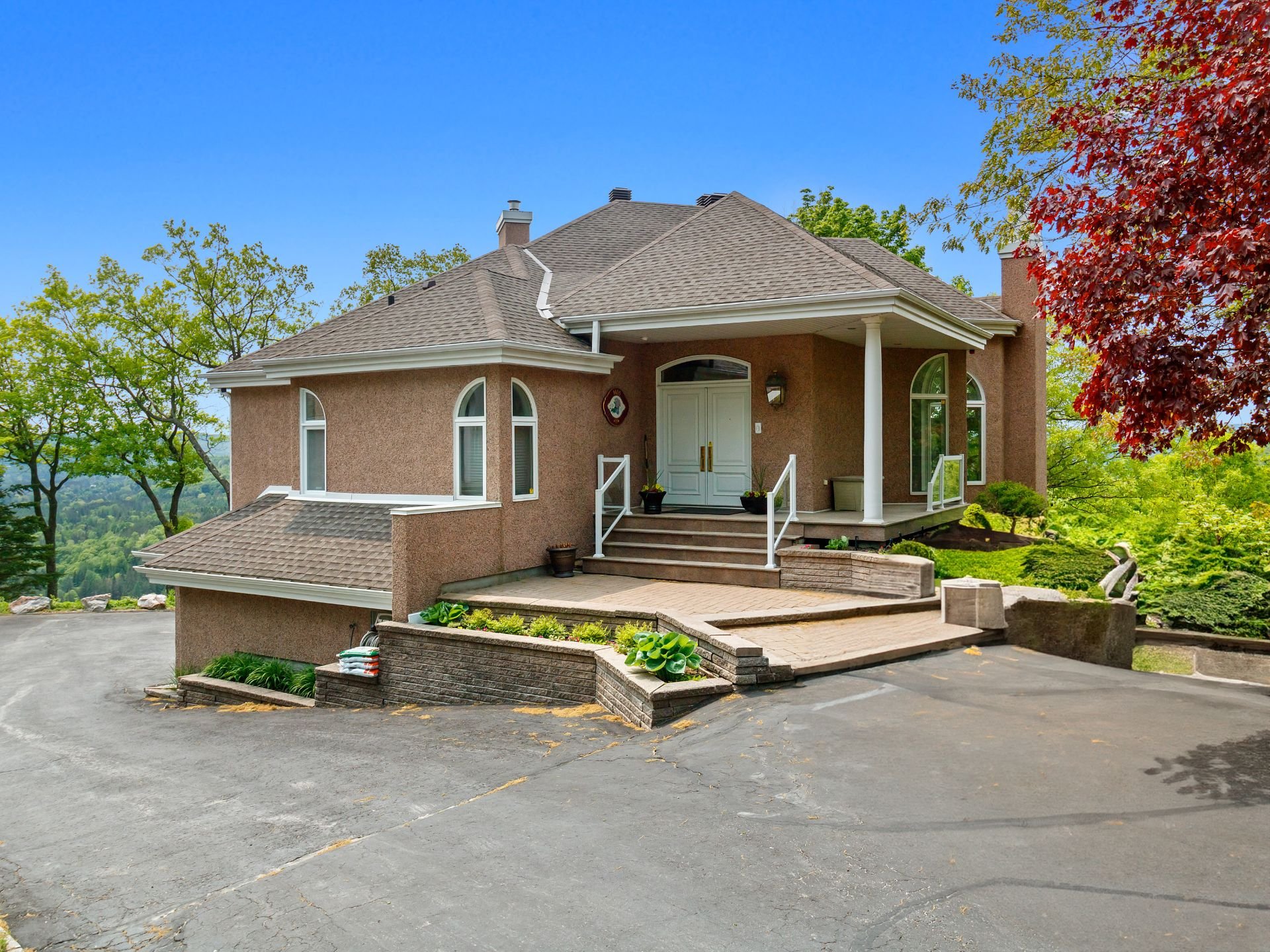 Residence with an exceptional year-round panorama at Sommet Gabriel, offering spectacular views of the Avila, Mont St-Sauveur, Mont Habitant, and Mont Morin-Heights ski resorts, as well as the village of St-Sauveur. This sumptuous property features 14-foot ceilings and majestic windows that flood the interior with natural light every day. 3 bedrooms, 4 bathrooms, 3 fireplaces, 2 living rooms, private lot, municipal water and sewer services, double garage, gas and wood-burning fireplaces, and expansive terraces to enjoy every moment of this inspiring setting -- all located in a prestigious area of Mont Gabriel. A must-see !