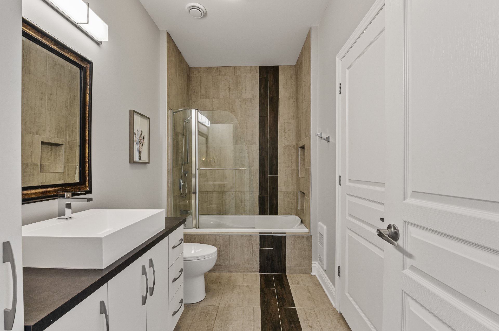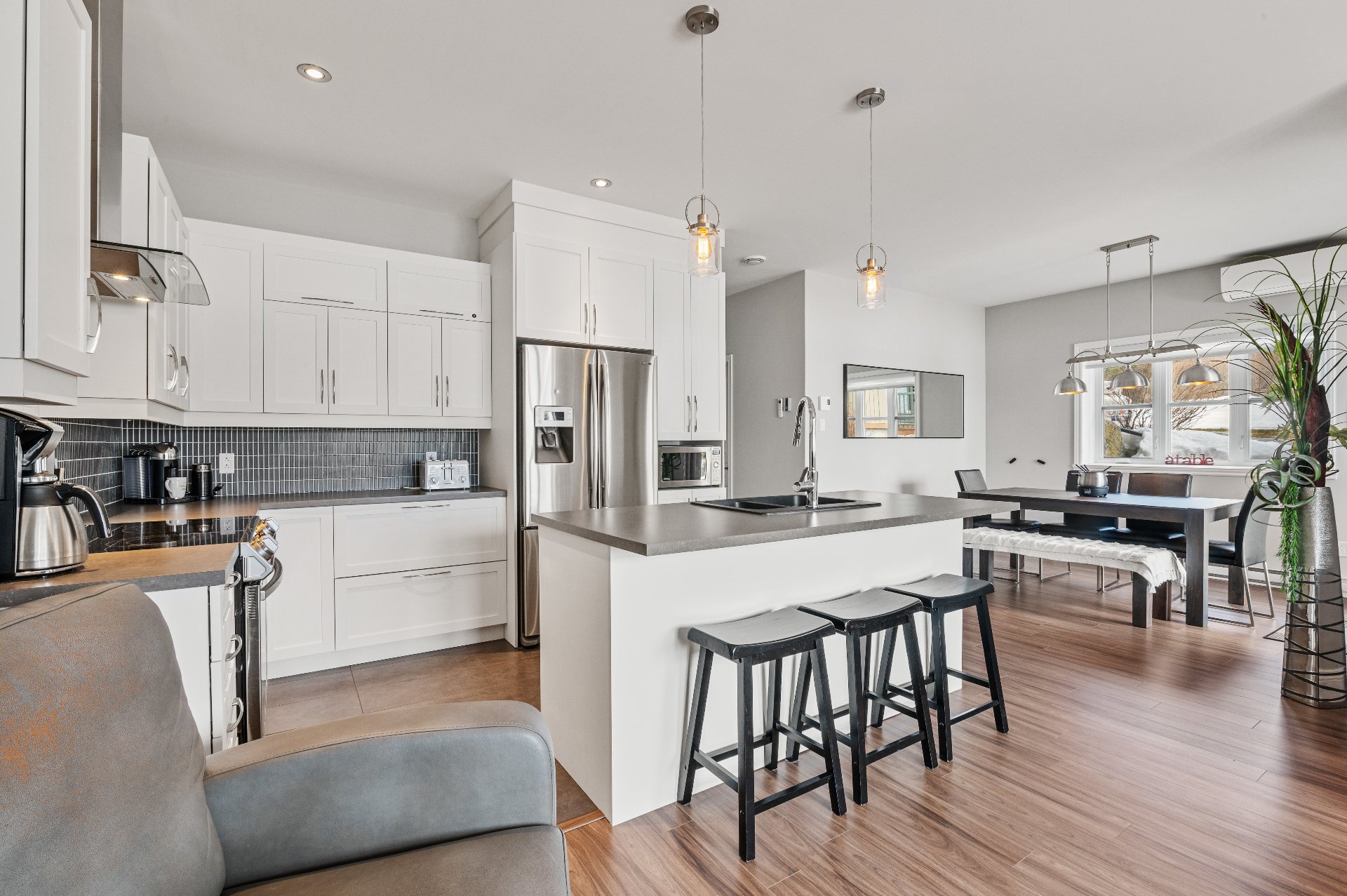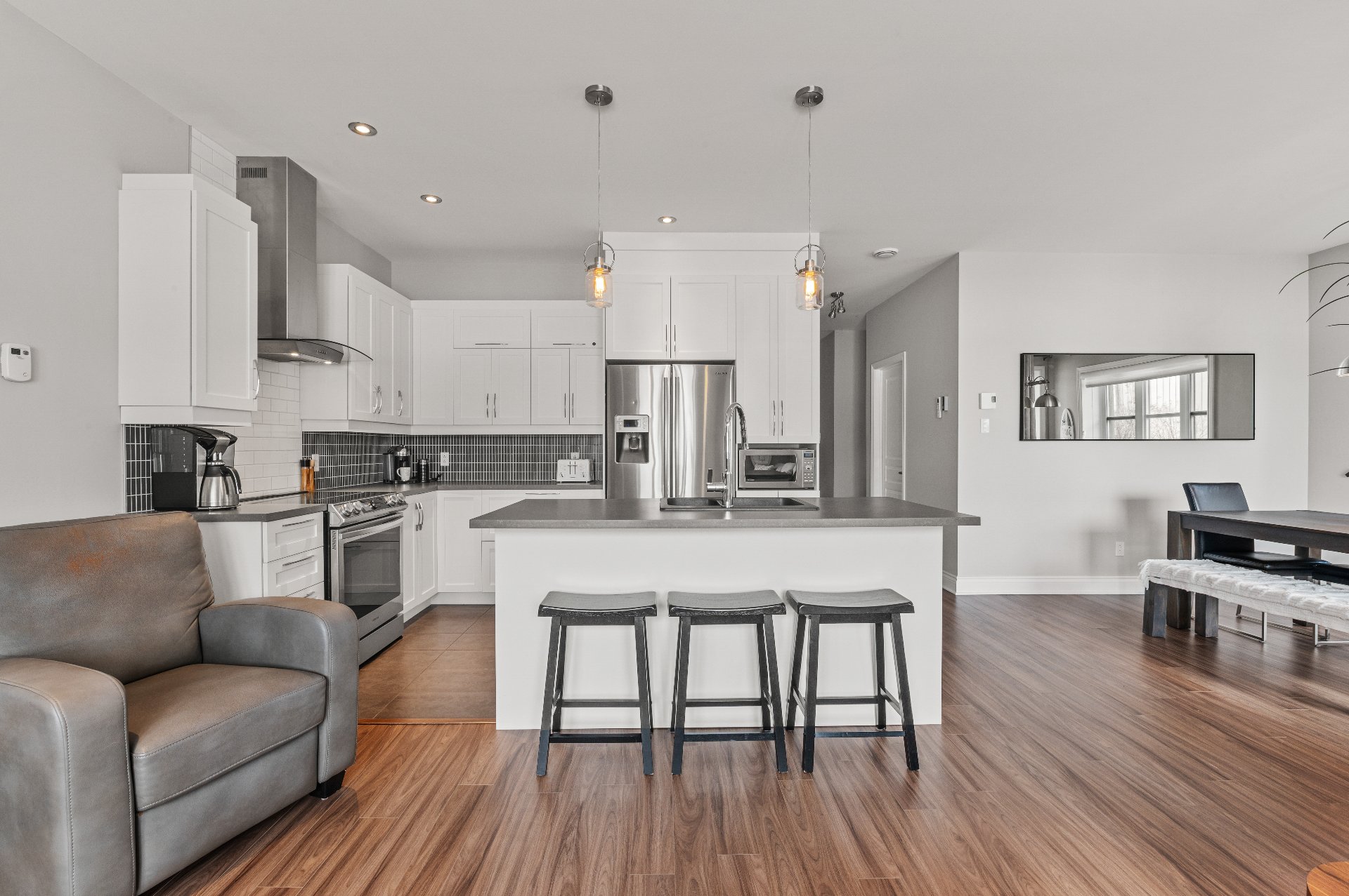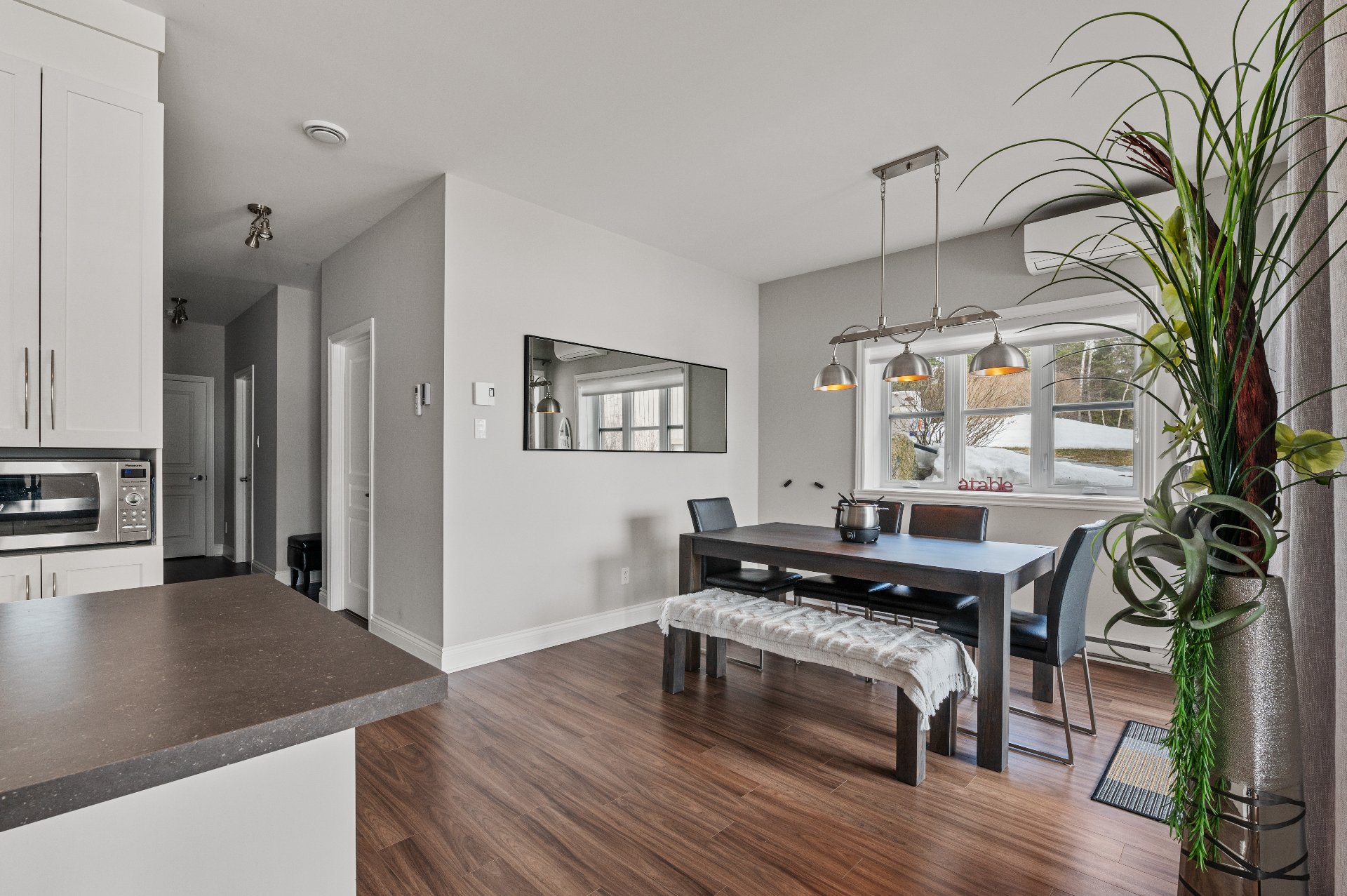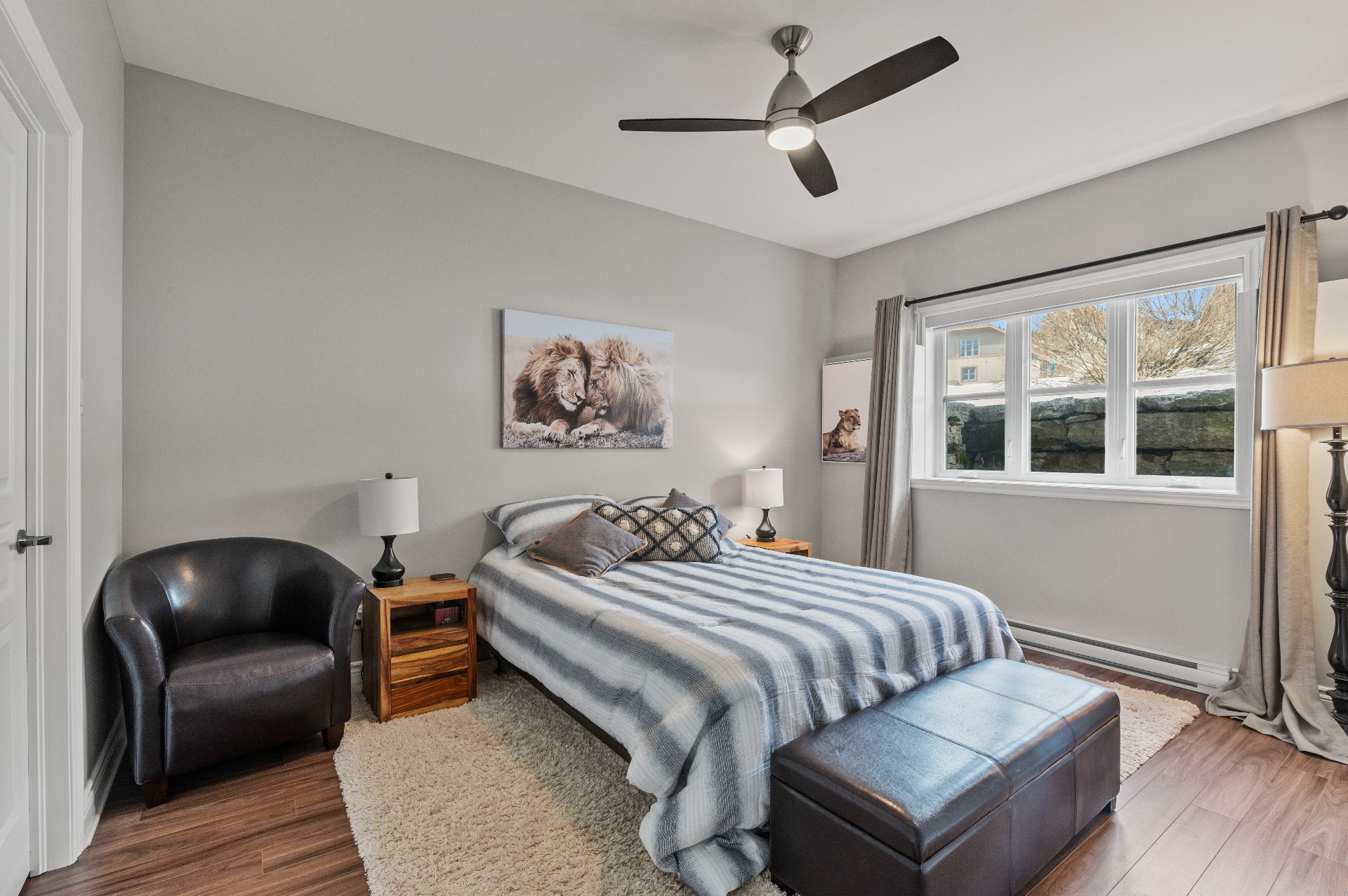 Located in the beautiful Domaine Rive-Gauche, this modern two-bedroom condo enjoys an exceptional location directly facing the majestic Lac Ouareau, one of the largest navigable lakes in the region with over 14 km² of water surface.