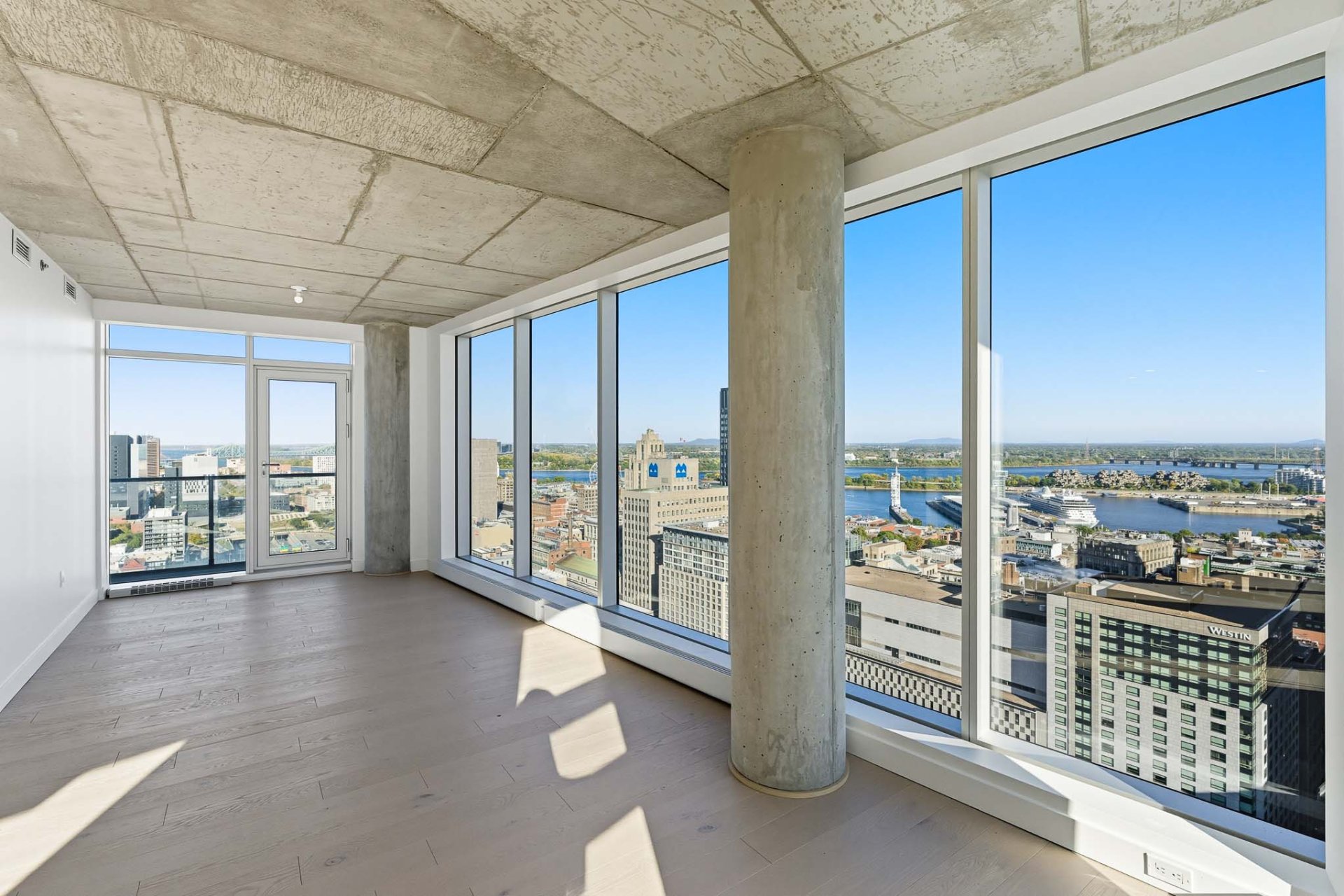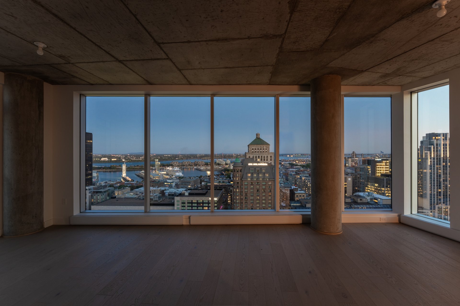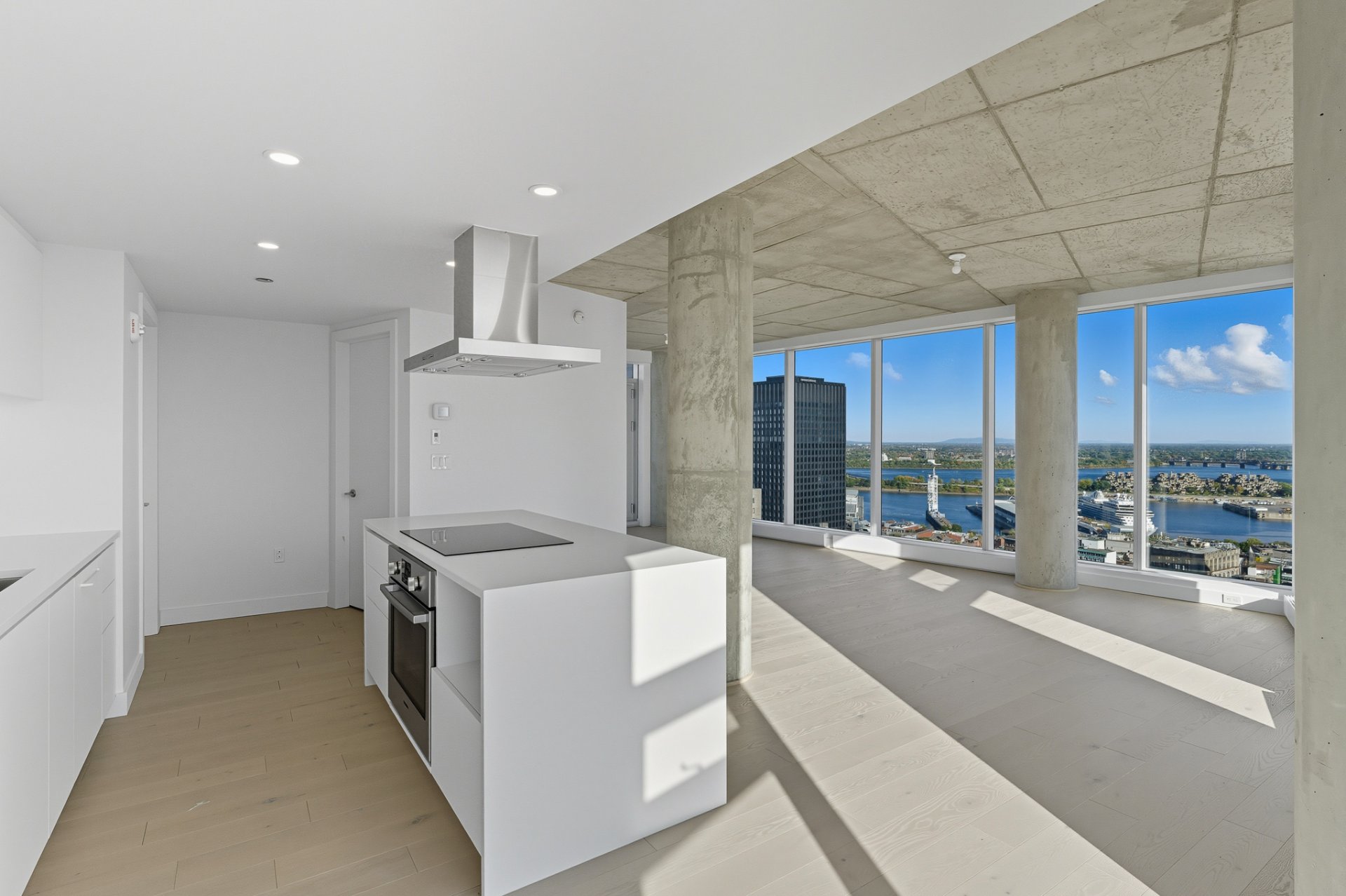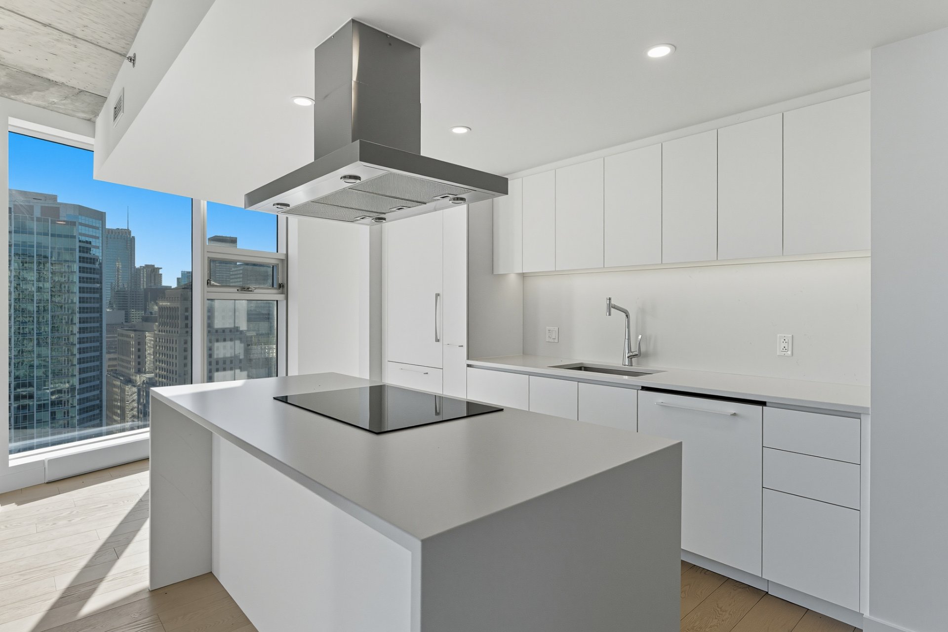 On the 32nd floor of the iconic Humaniti, this condo offers breathtaking panoramic views on three sides--east, south, and west--an ever-changing spectacle as magical by day as it is at dusk, with the city at your feet. Built in 2020 and barely lived in as a pied-à-terre, the unit feels virtually new. Open-concept living, contemporary kitchen and bathrooms, expansive windows flooding the space with natural light, balcony and garage. Exceptional building with hotel-style services, pool, terrace, and even the Avril health-food market steps away. A refined urban haven for those seeking comfort and sophistication.