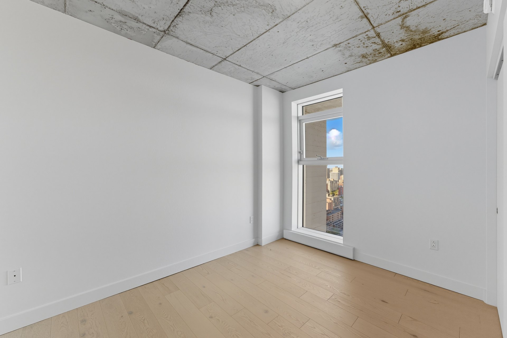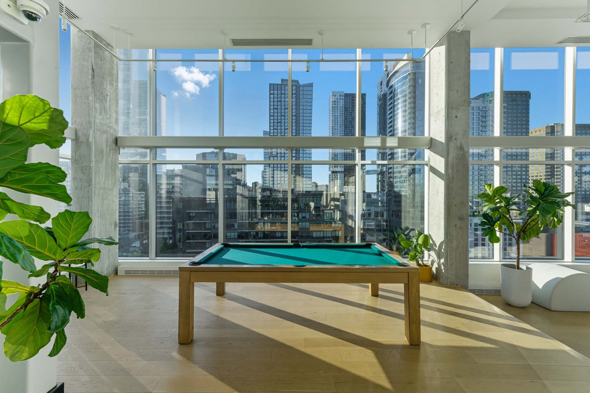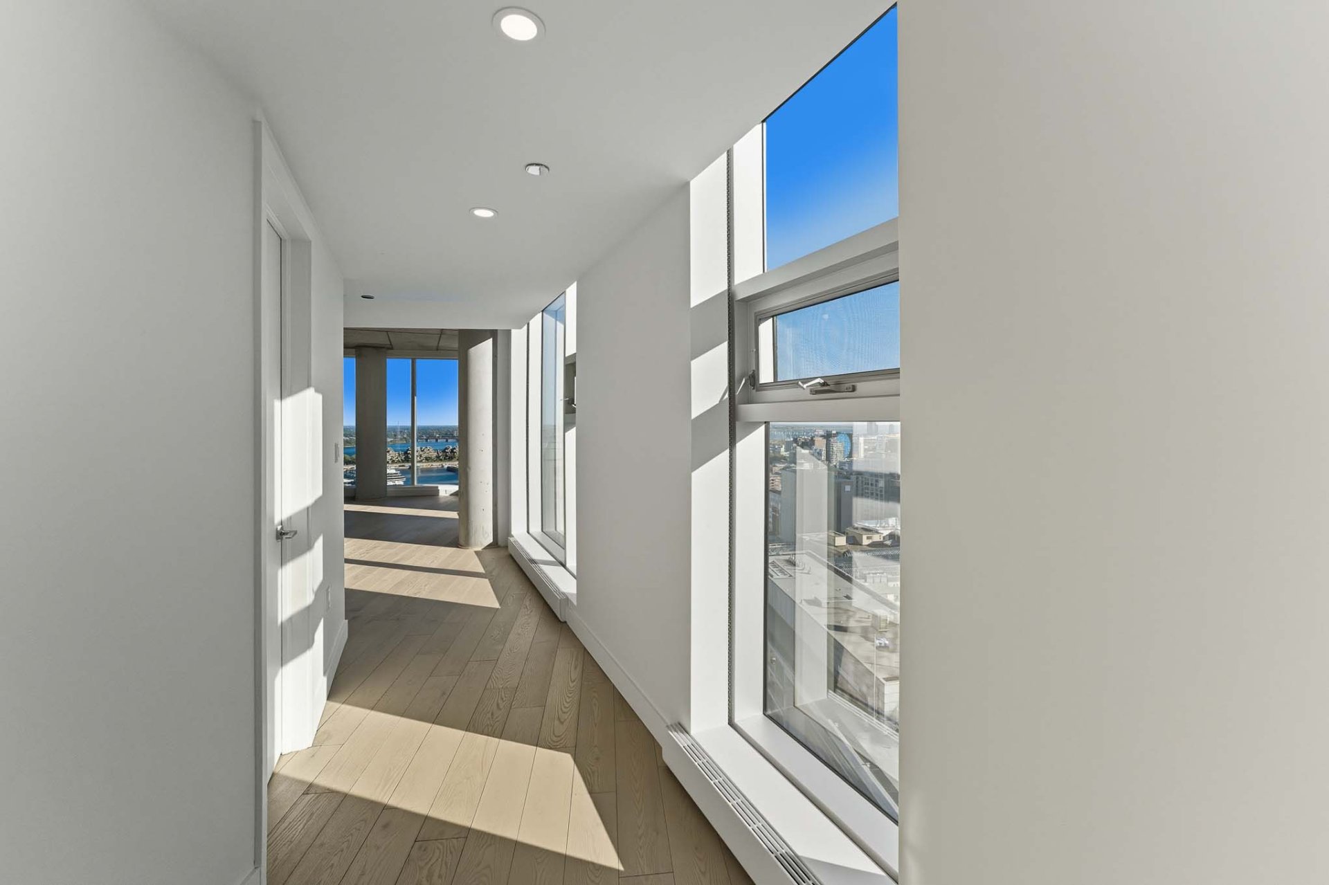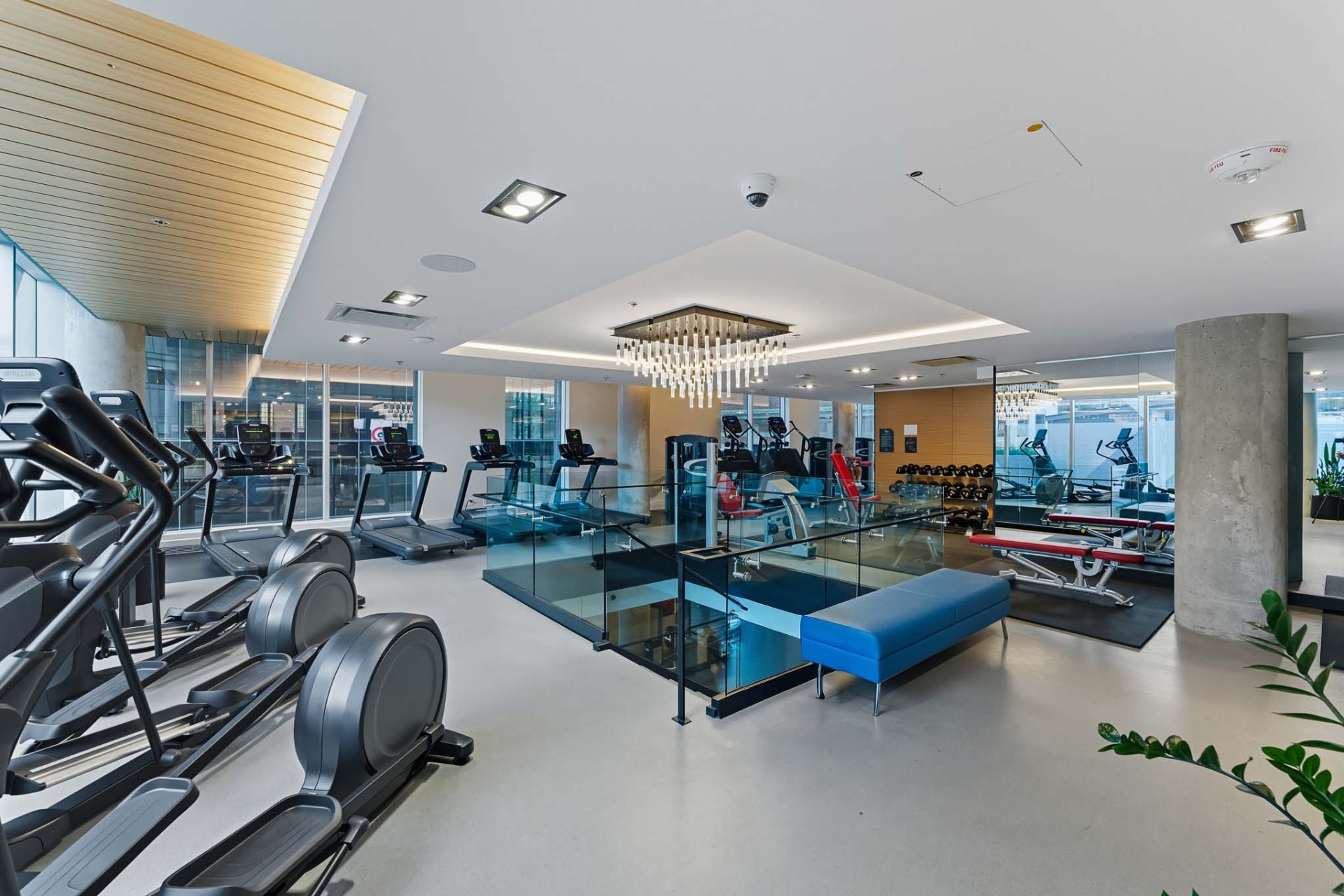 On the 32nd floor of the iconic Humaniti, this condo offers breathtaking panoramic views on three sides--east, south, and west--an ever-changing spectacle as magical by day as it is at dusk, with the city at your feet. Built in 2020 and barely lived in as a pied-à-terre, the unit feels virtually new. Open-concept living, contemporary kitchen and bathrooms, expansive windows flooding the space with natural light, balcony and garage. Exceptional building with hotel-style services, pool, terrace, and even the Avril health-food market steps away. A refined urban haven for those seeking comfort and sophistication.