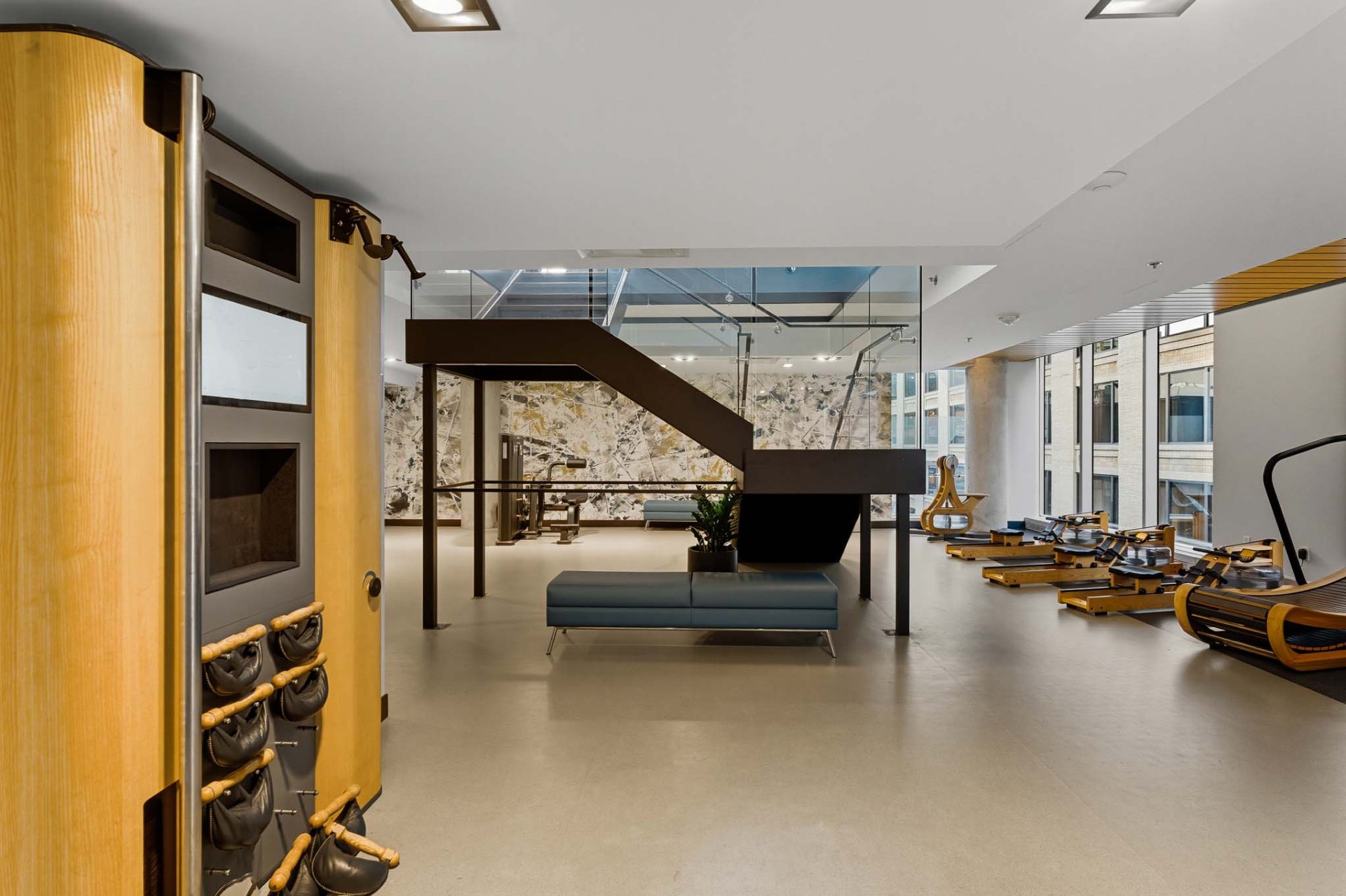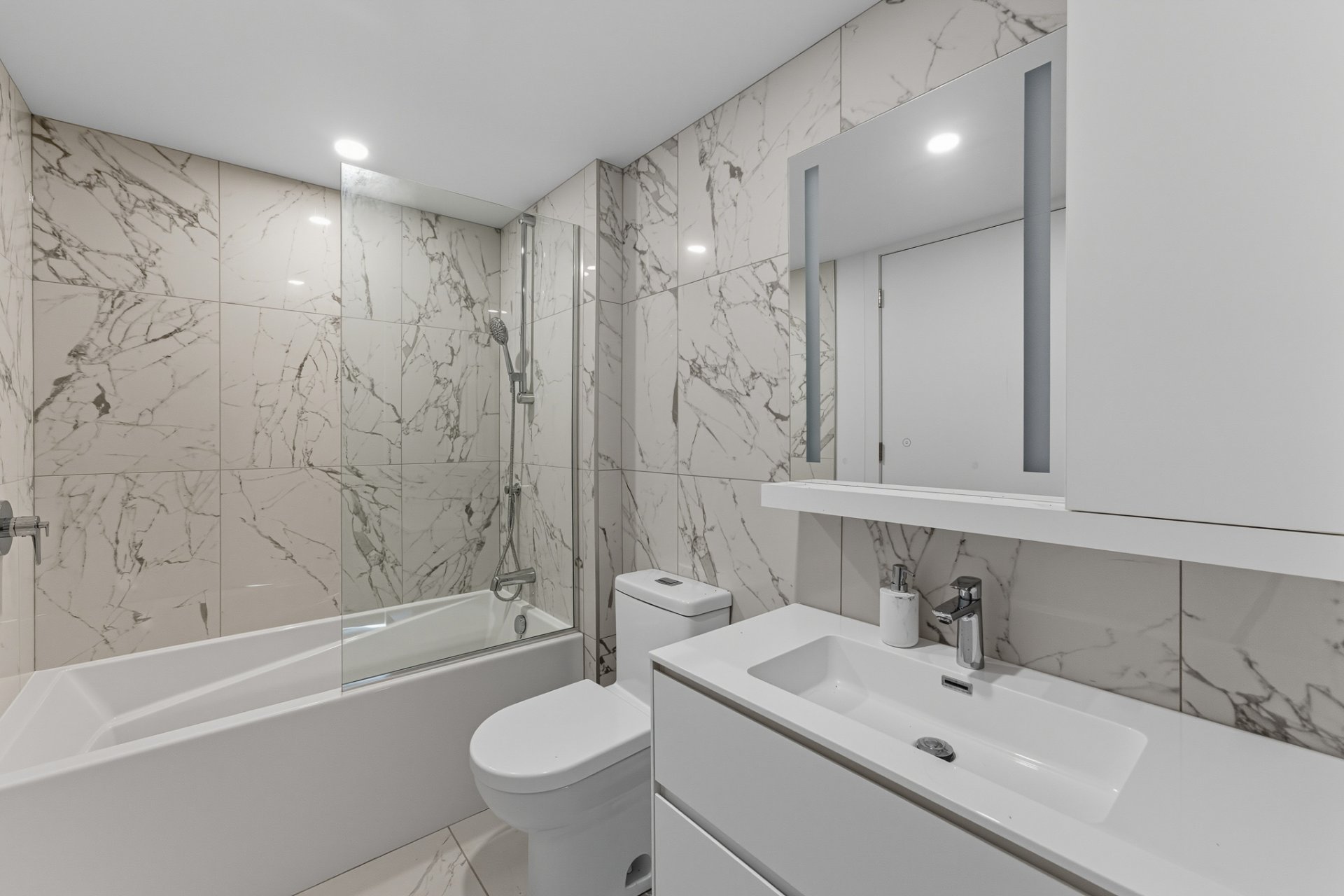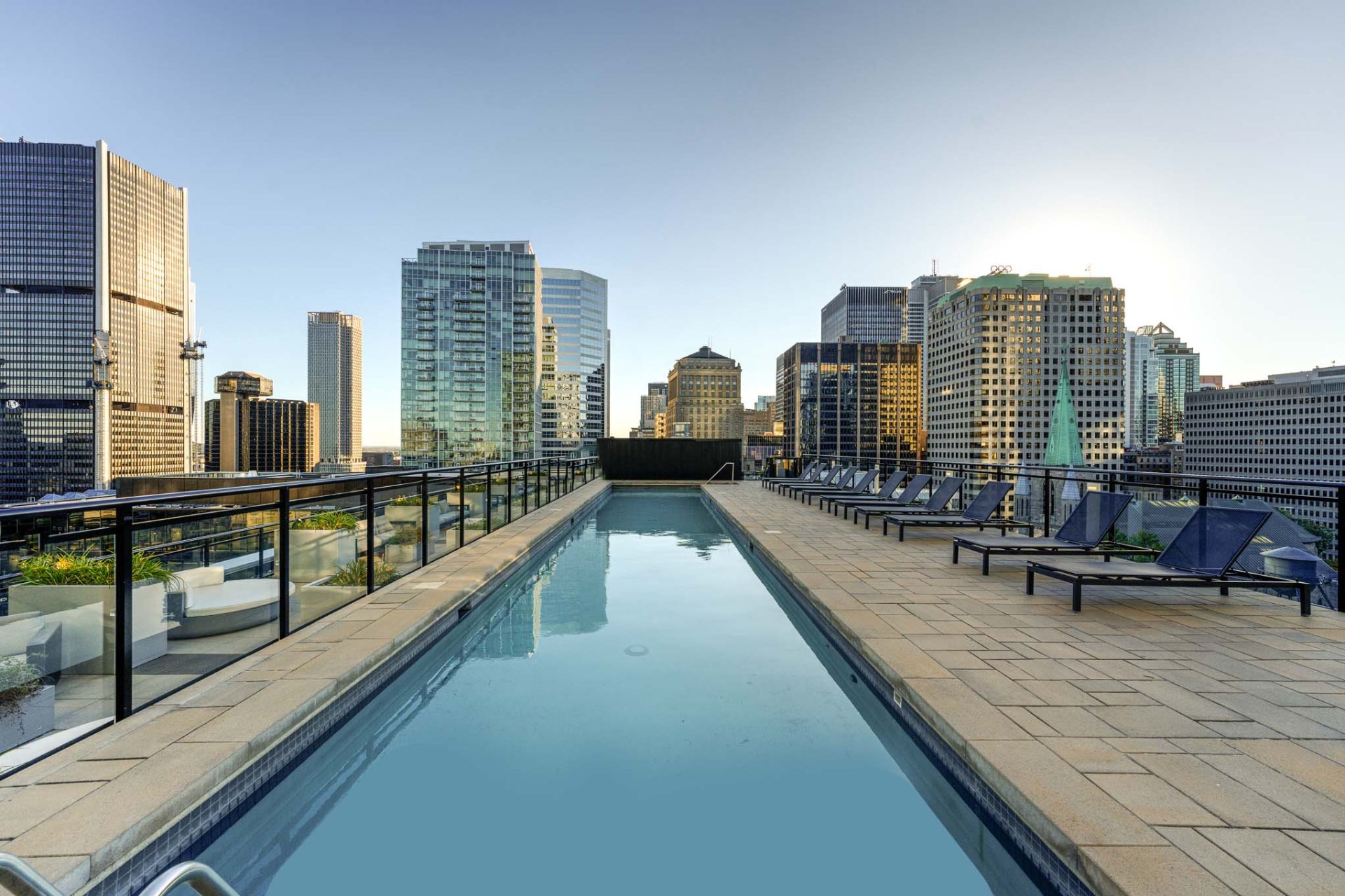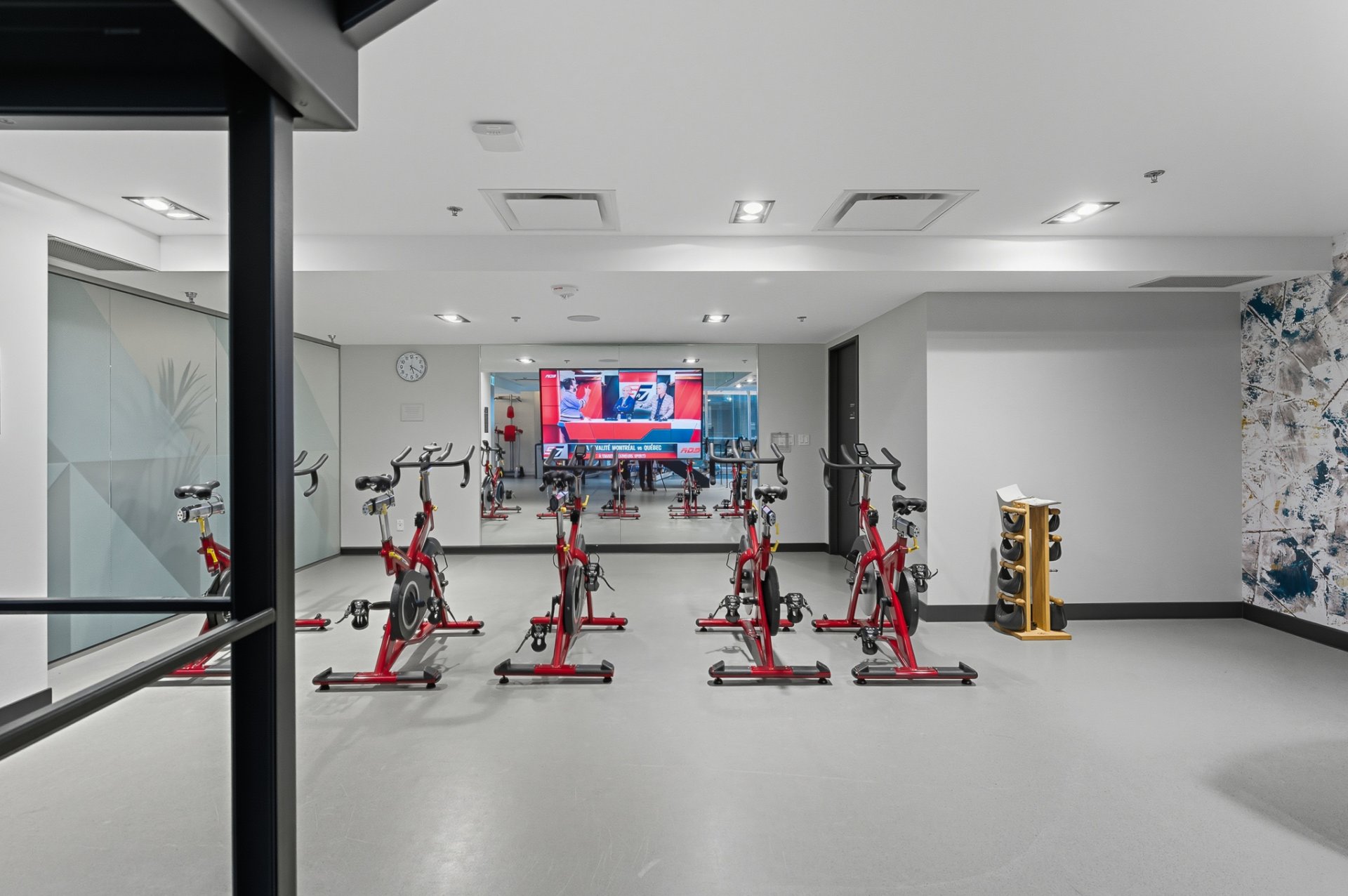 On the 32nd floor of the iconic Humaniti, this condo offers breathtaking panoramic views on three sides--east, south, and west--an ever-changing spectacle as magical by day as it is at dusk, with the city at your feet. Built in 2020 and barely lived in as a pied-à-terre, the unit feels virtually new. Open-concept living, contemporary kitchen and bathrooms, expansive windows flooding the space with natural light, balcony and garage. Exceptional building with hotel-style services, pool, terrace, and even the Avril health-food market steps away. A refined urban haven for those seeking comfort and sophistication.