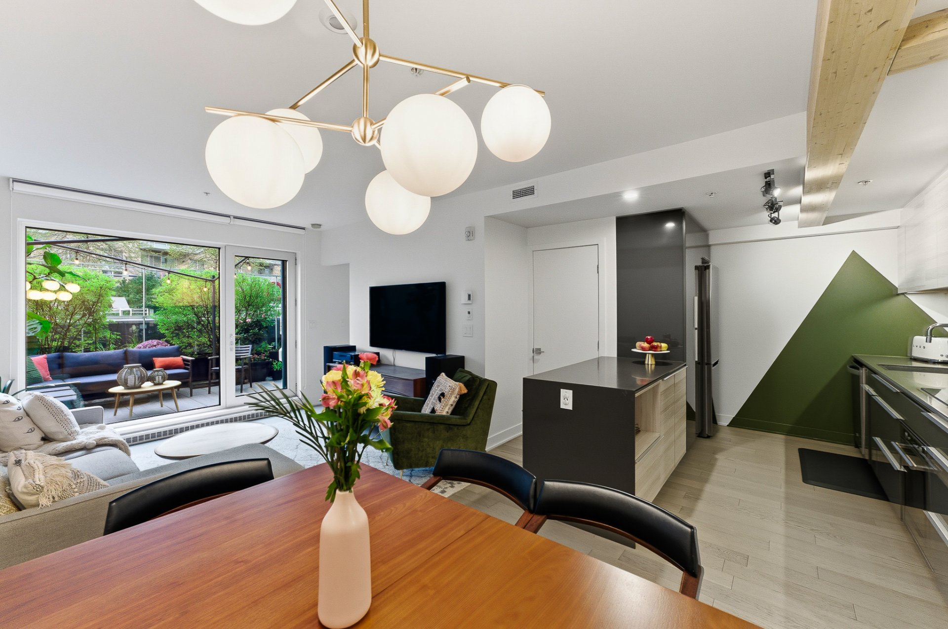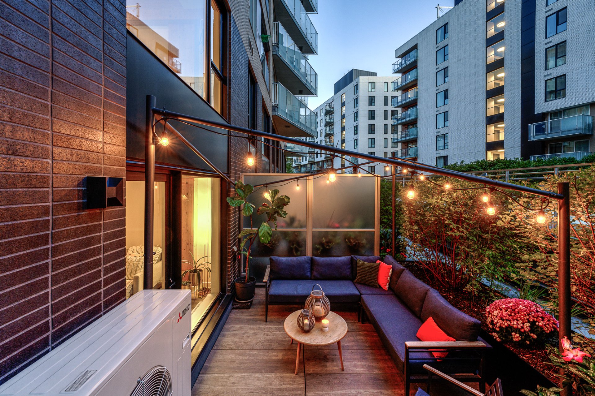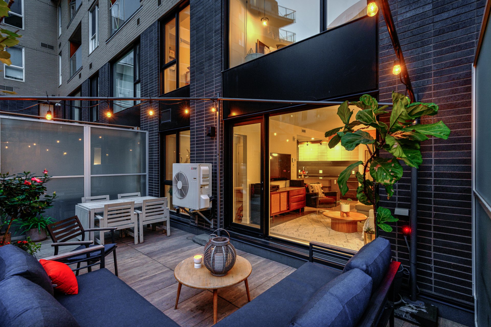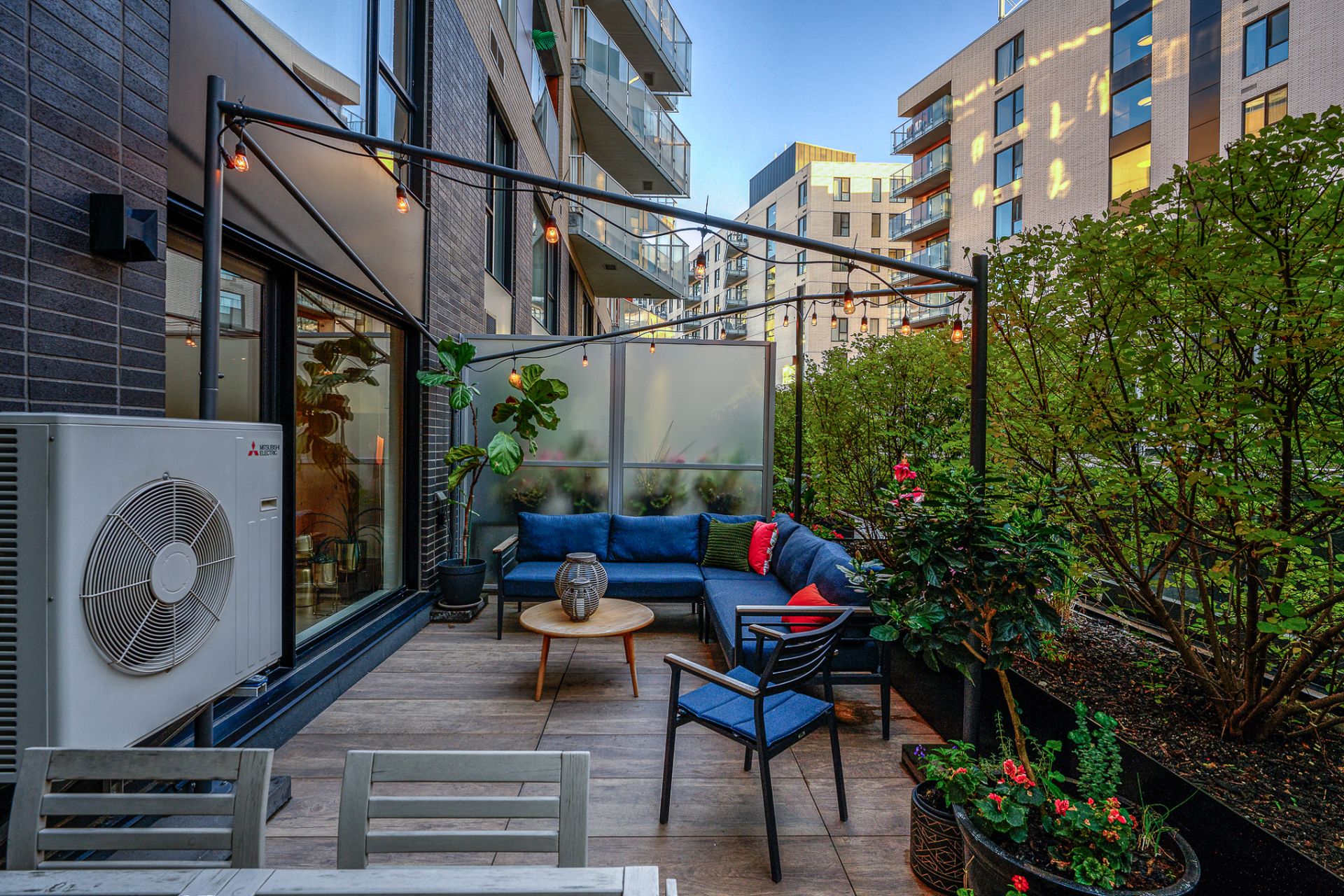 Elegant townhouse-style unit on two levels located in the prestigious Arbora 2 project in the heart of Griffintown. This property offers three bedrooms, including two on the upper level and one on the ground floor, as well as two full bathrooms. It features a contemporary kitchen, air conditioning, storage space, and a large private terrace overlooking the interior courtyard with pool, a rare location within the project. Arbora 2 also offers a fitness room and stands out for its eco-friendly LEED Platinum certified mass timber construction. Monthly indoor parking pass.