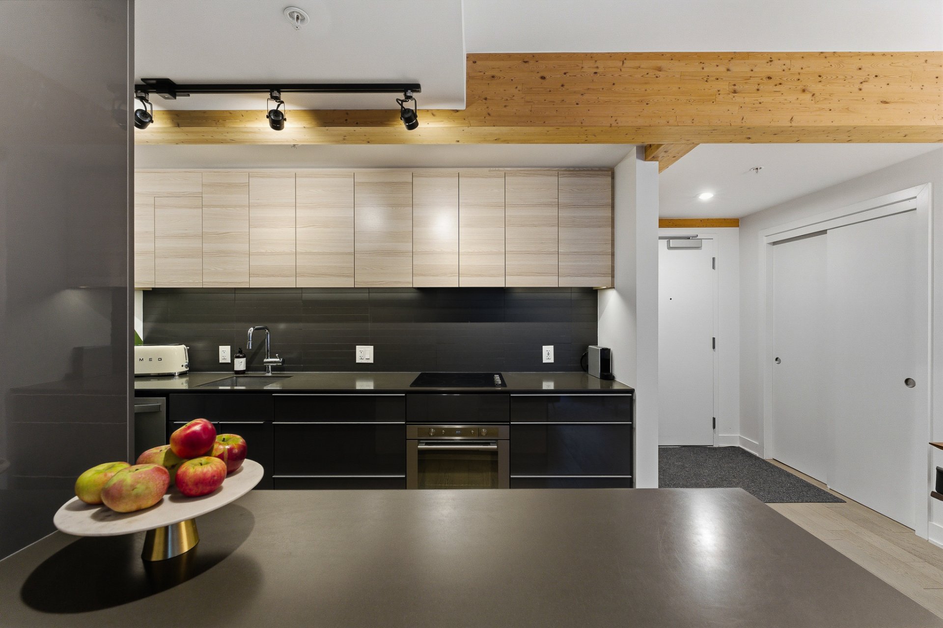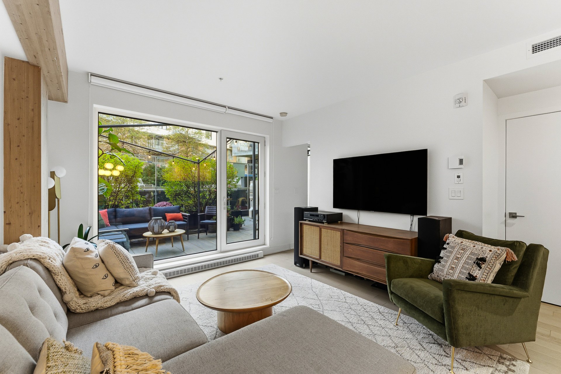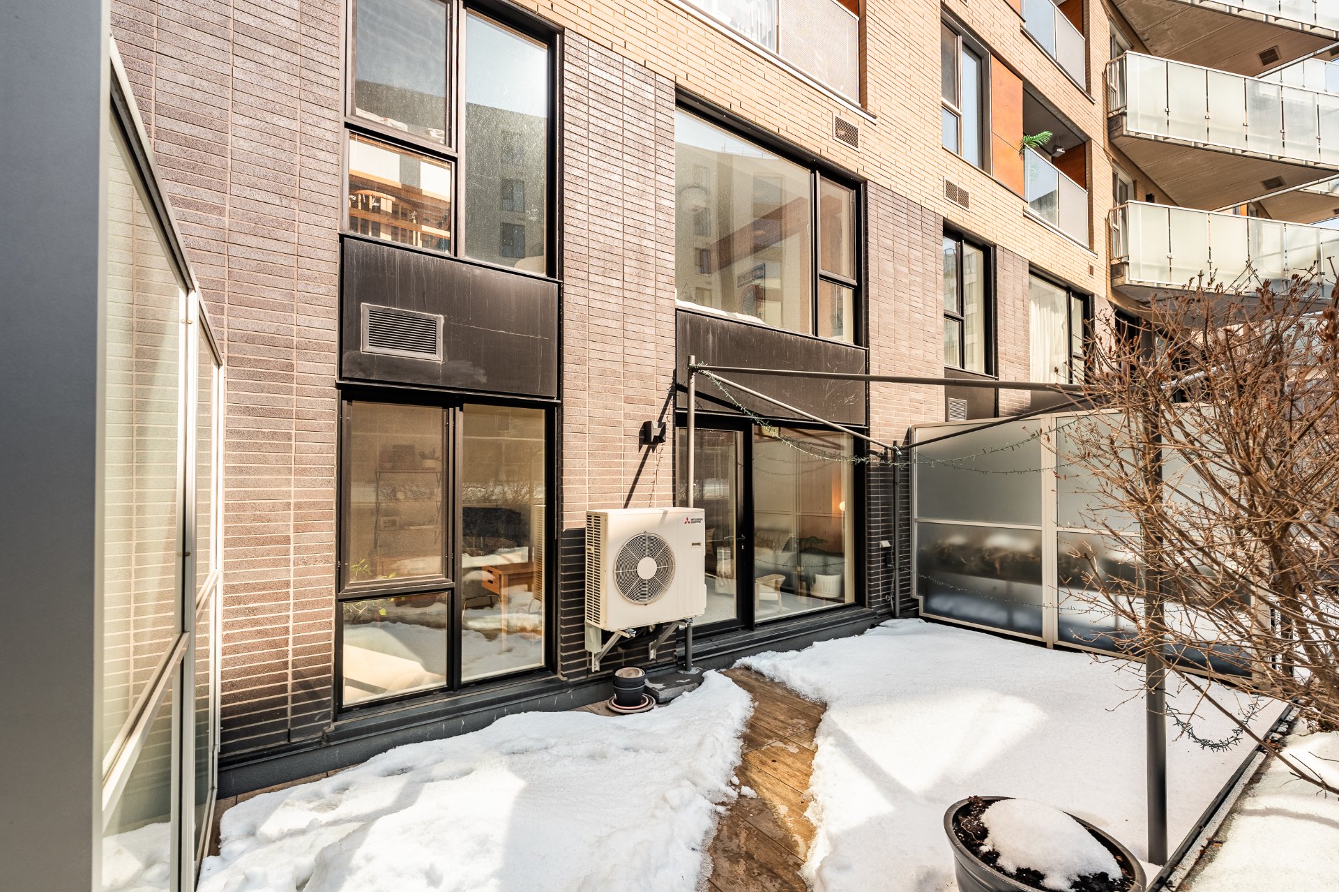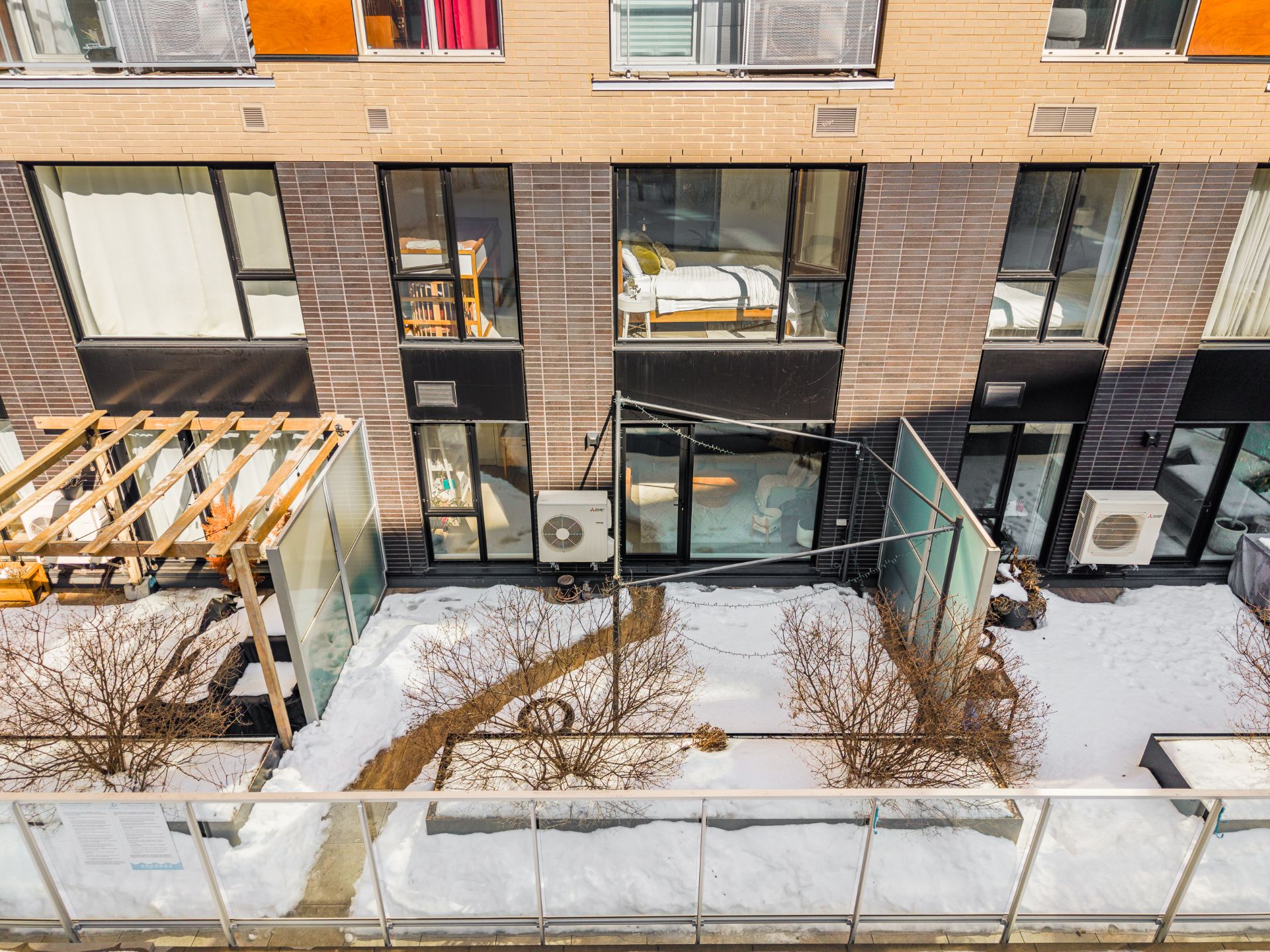 Elegant townhouse-style unit on two levels located in the prestigious Arbora 2 project in the heart of Griffintown. This property offers three bedrooms, including two on the upper level and one on the ground floor, as well as two full bathrooms. It features a contemporary kitchen, air conditioning, storage space, and a large private terrace overlooking the interior courtyard with pool, a rare location within the project. Arbora 2 also offers a fitness room and stands out for its eco-friendly LEED Platinum certified mass timber construction. Monthly indoor parking pass.