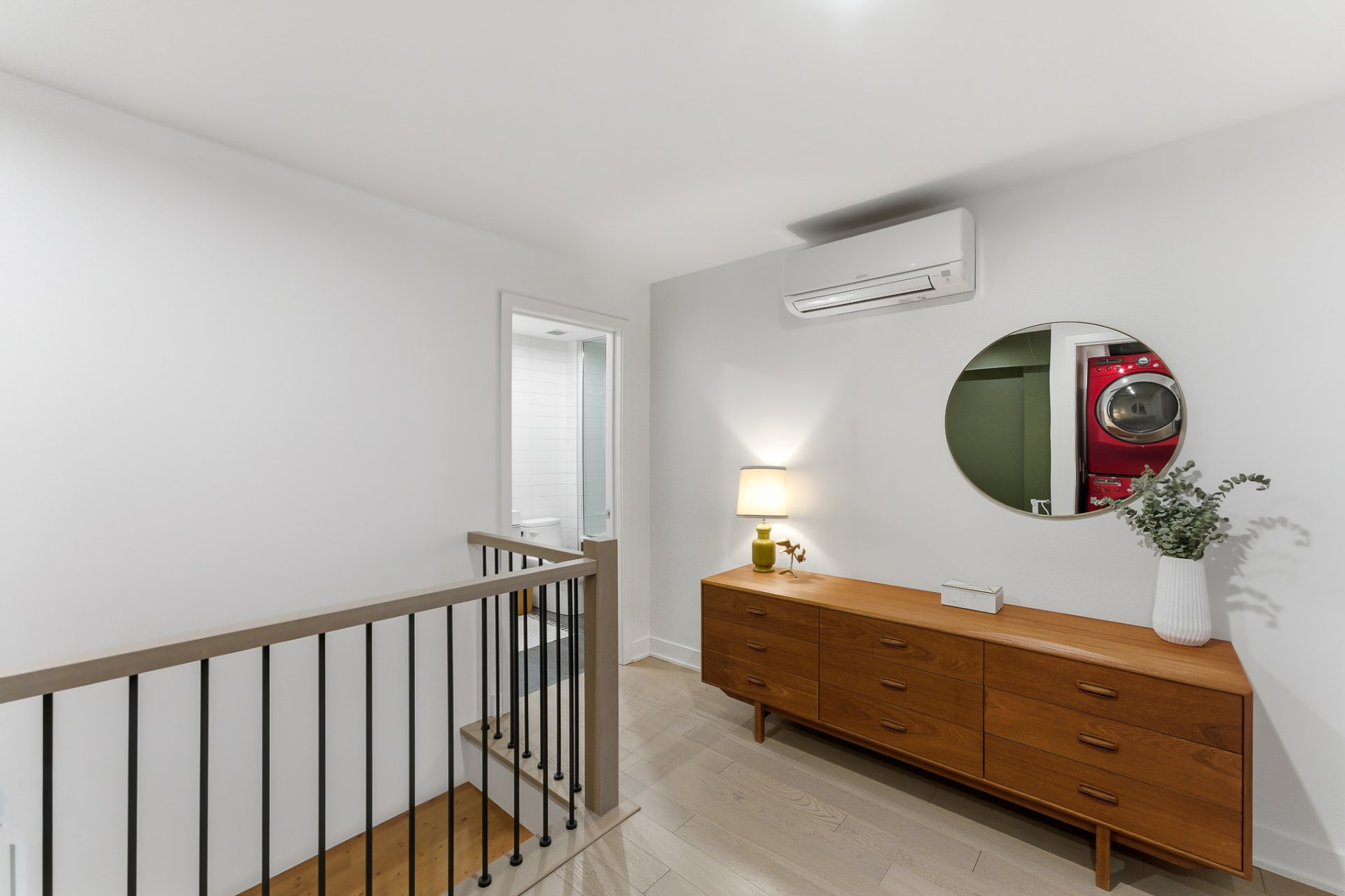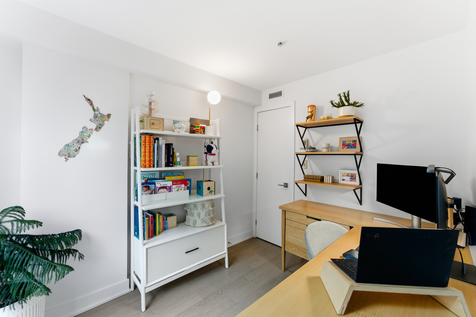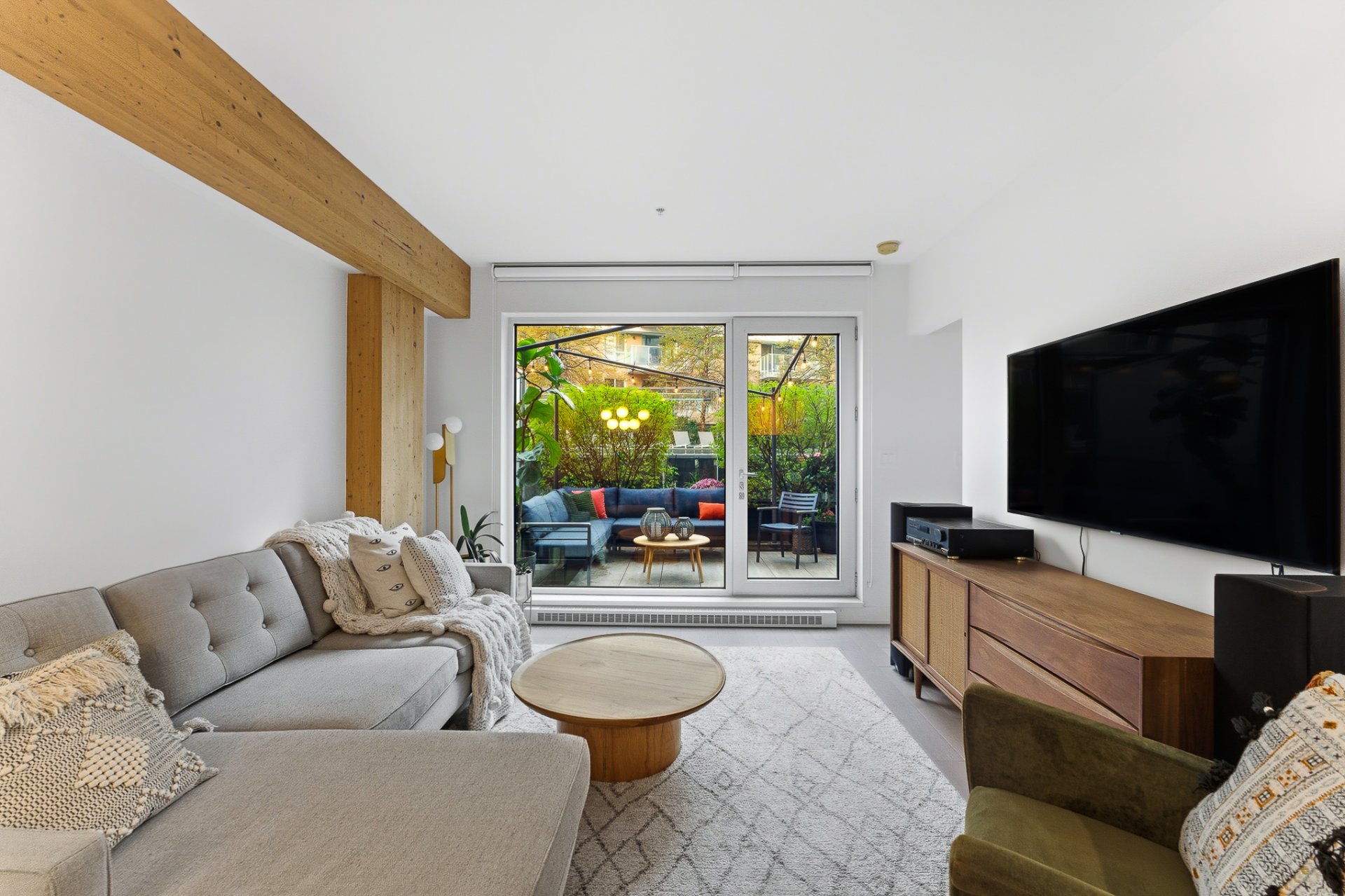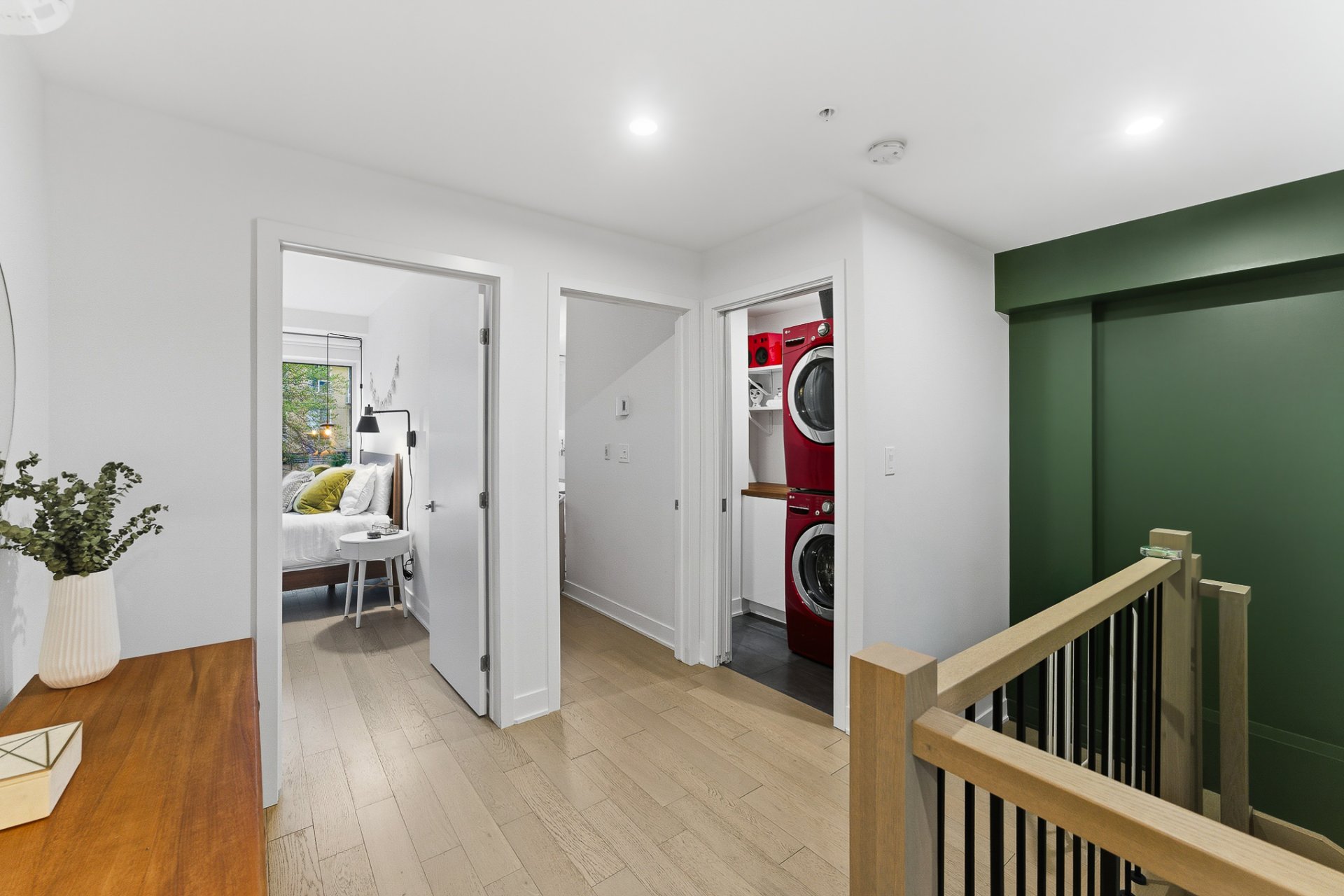 Elegant townhouse-style unit on two levels located in the prestigious Arbora 2 project in the heart of Griffintown. This property offers three bedrooms, including two on the upper level and one on the ground floor, as well as two full bathrooms. It features a contemporary kitchen, air conditioning, storage space, and a large private terrace overlooking the interior courtyard with pool, a rare location within the project. Arbora 2 also offers a fitness room and stands out for its eco-friendly LEED Platinum certified mass timber construction. Monthly indoor parking pass.