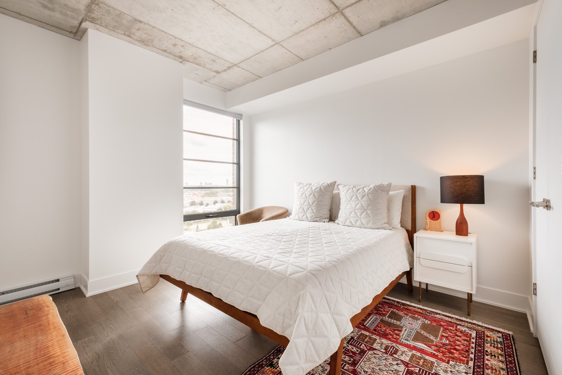 Welcome to this splendid condo located in the heart of Griffintown, offering you an unobstructed and protected view of the Lachine Canal. This unit features 2 bedrooms, 2 bathrooms, and an indoor parking space. It stands out with its natural light in the living areas, an industrial look combining luxury and comfort, and a terrace with a view of the city. The common areas are impressive. Live in a vibrant neighborhood, close to restaurants, shops, and numerous parks. Griffintown, a booming area, is perfect for young professionals, couples, or singles seeking a high-quality urban lifestyle!