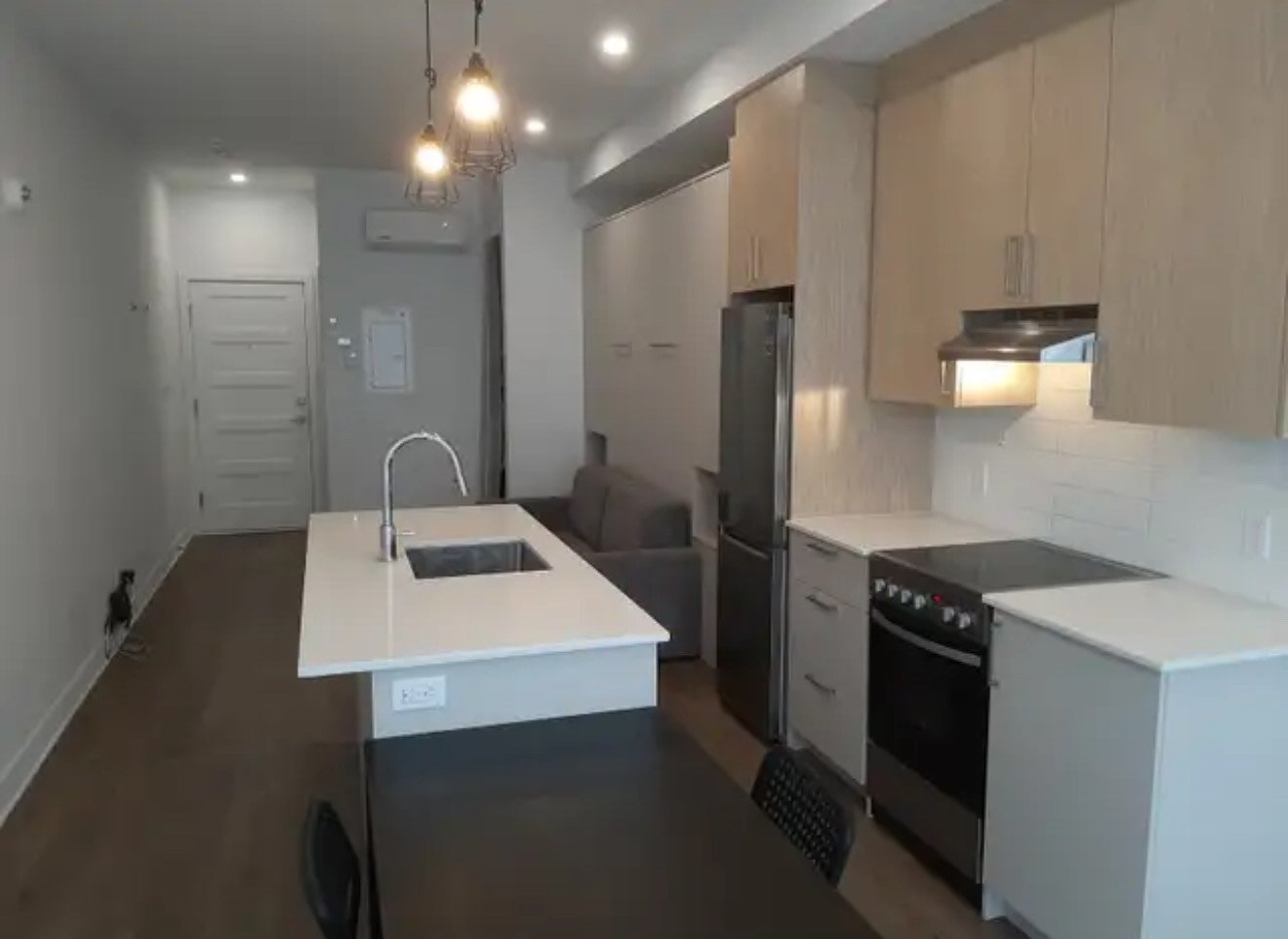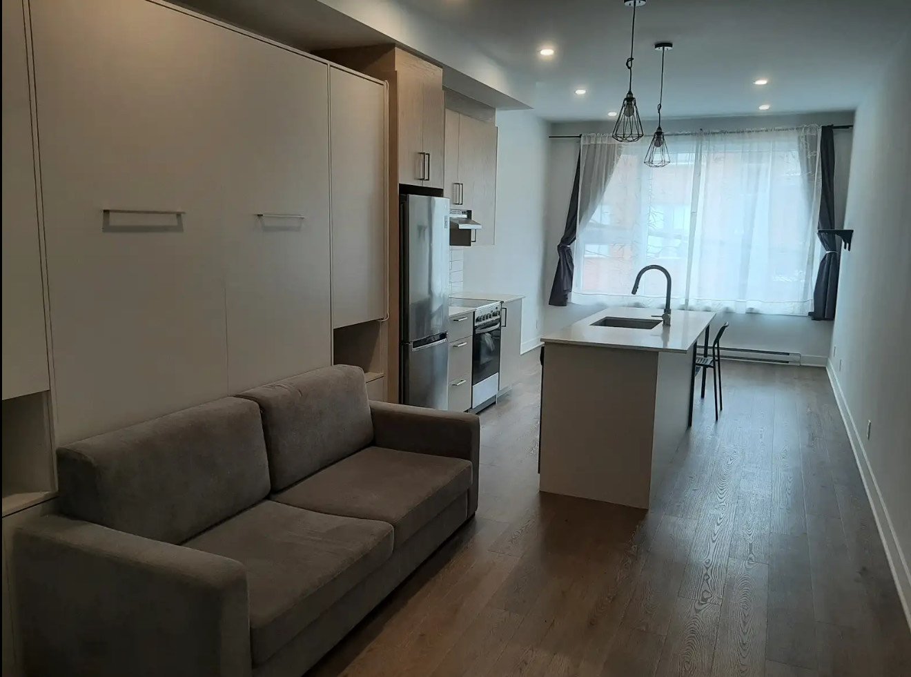 Studio (1½) located on the first floor at 7385 St-Hubert Street, at the corner of De Castelnau, in the sought-after Villeray neighborhood. Recent construction (2021), clean, secure, and quiet, facing Saint-André Street. Includes Wi-Fi, air conditioning, heating, and in-unit washer and dryer. Fully equipped kitchen with oven and dishwasher. Five-minute walk to Jean-Talon metro station (orange and blue lines), bus 30 at the door, bus 93 nearby, and Bixi station 3 minutes away. Close to Jean-Talon Market, shops, cafés, and restaurants. Semi-furnished (mattress, table, and chairs available).