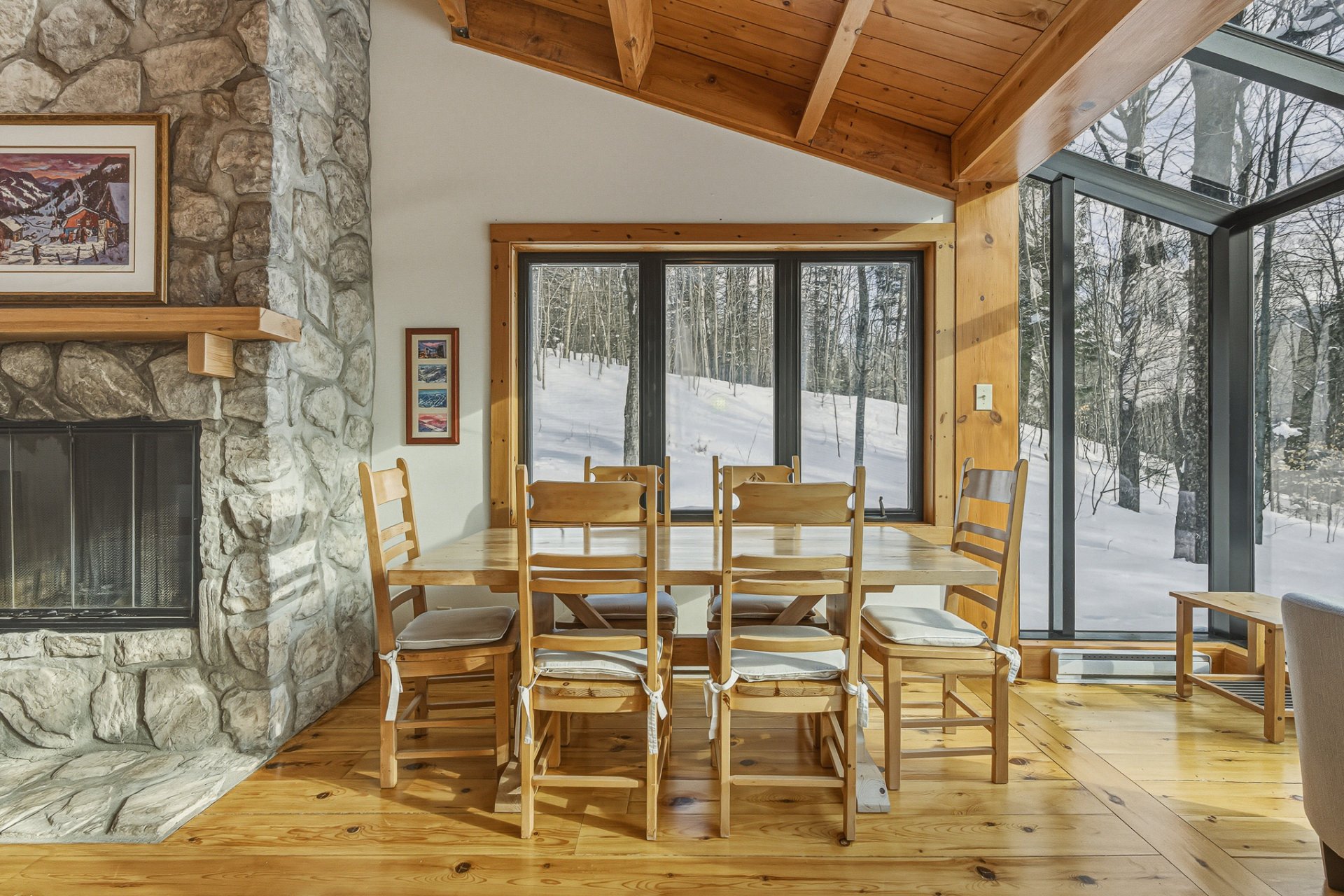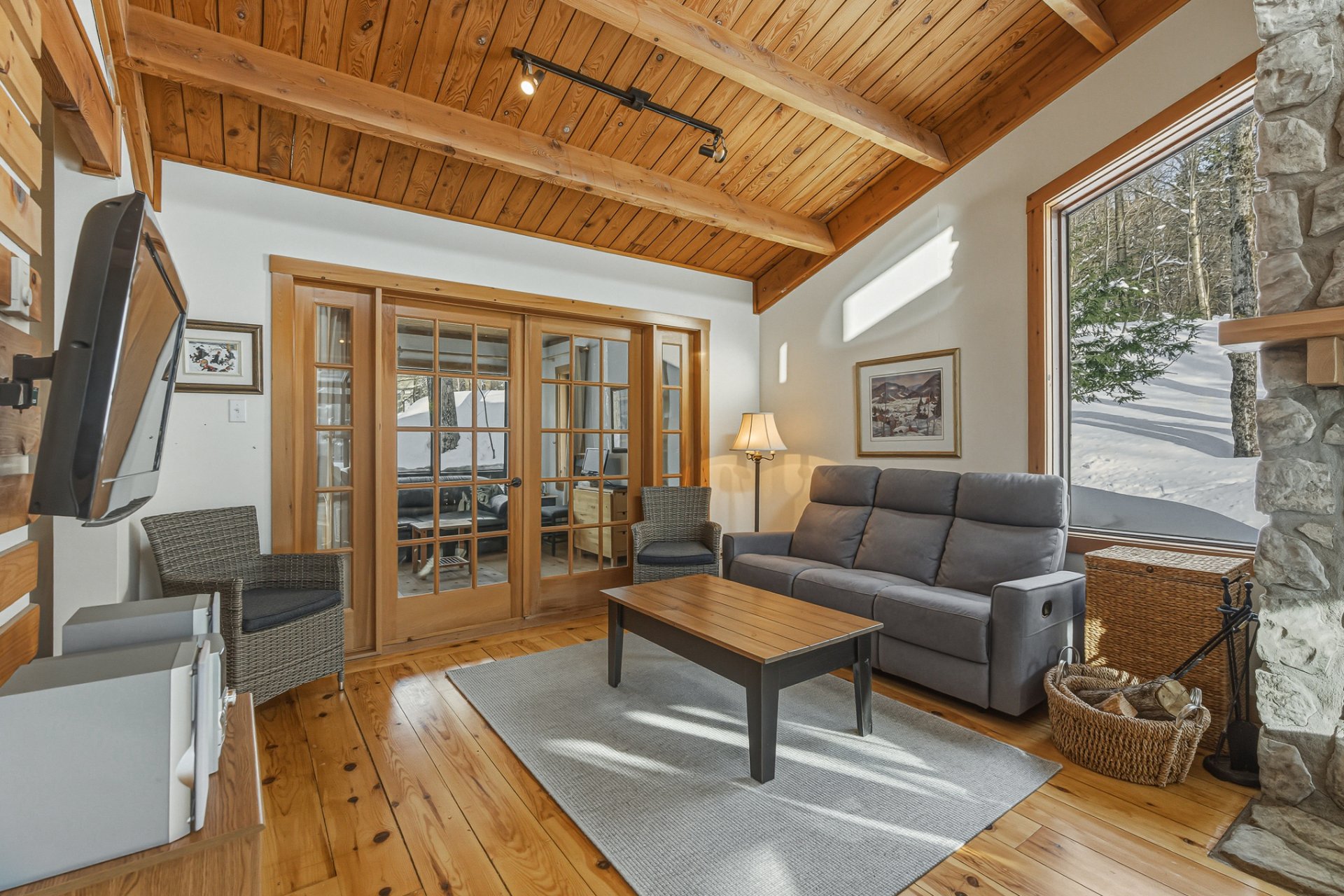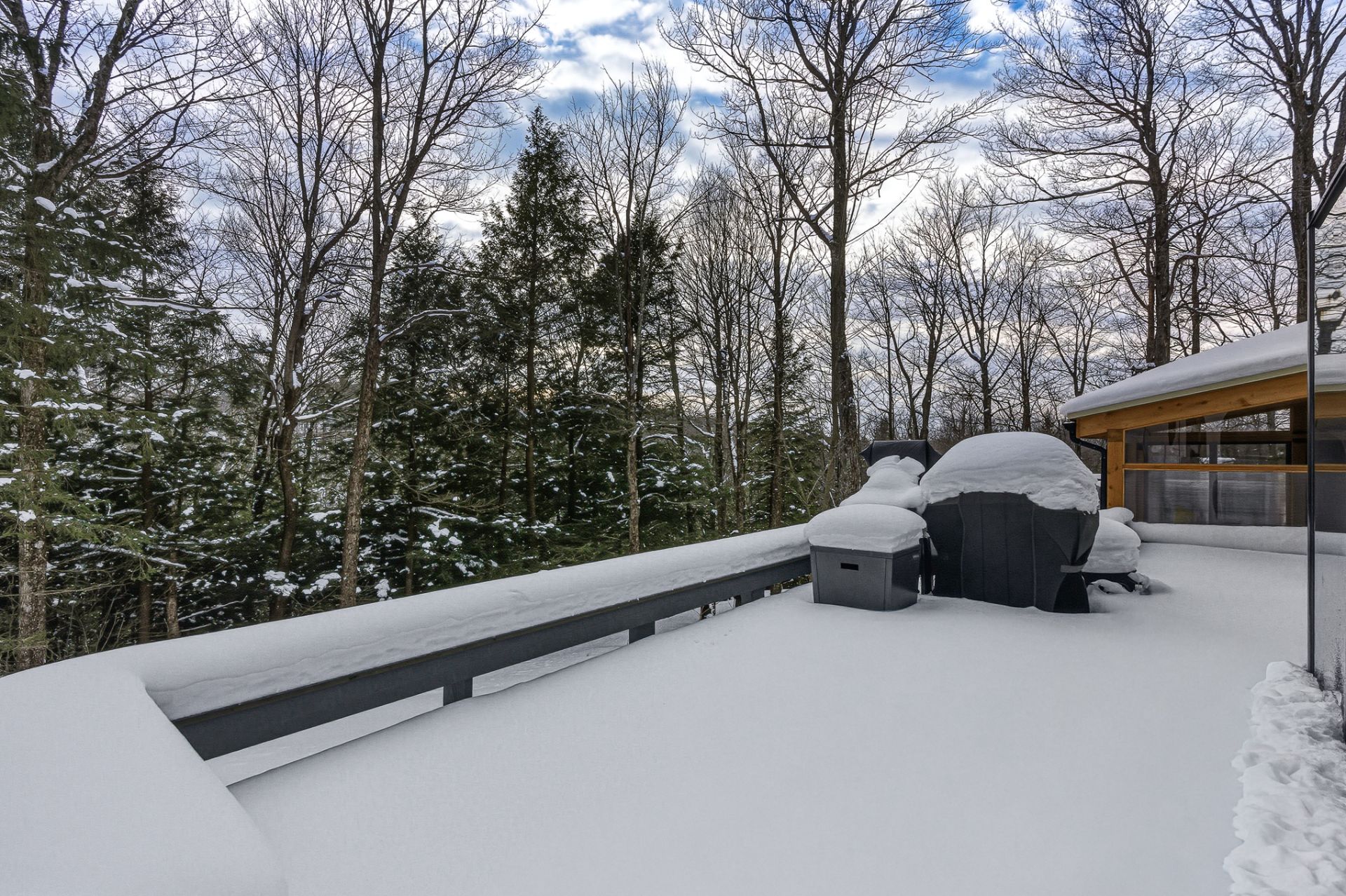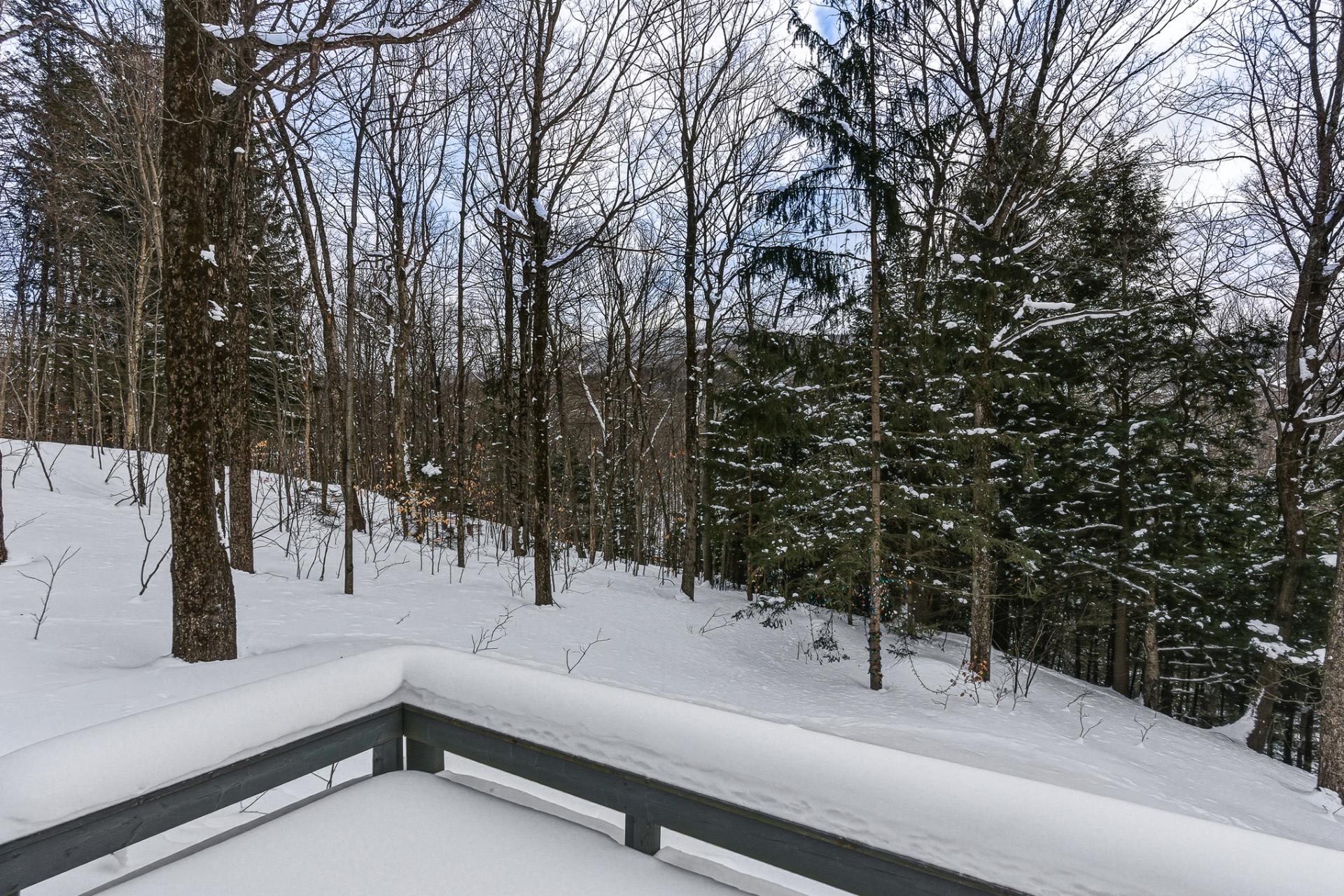 2 MINUTES FROM SKI MONT SUTTON. Contemporary mountain cabin with solid wood interior, located in an exceptional natural setting. Property backing onto the stream and Marmite aux Sorcières, with direct access to the Village-Montagne trail. Warm living areas enhanced by wood paneling, cathedral ceilings, wooden staircase, and stone fireplace. "Cocooning" guaranteed with the ski slopes as a backdrop. Functional kitchen open to the living areas with brand new appliances. Terrace and solarium offering immersion in nature and a view of the snow-covered ski slopes. 3 bedrooms and 2 bathrooms.