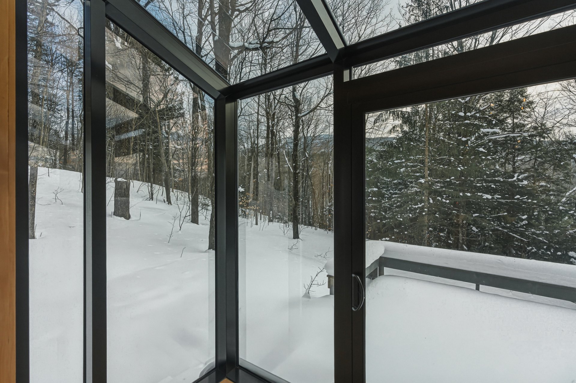 Outdoors, the terrace and solarium naturally extend the living spaces and invite you to fully enjoy the surrounding forest and tranquility throughout the seasons.