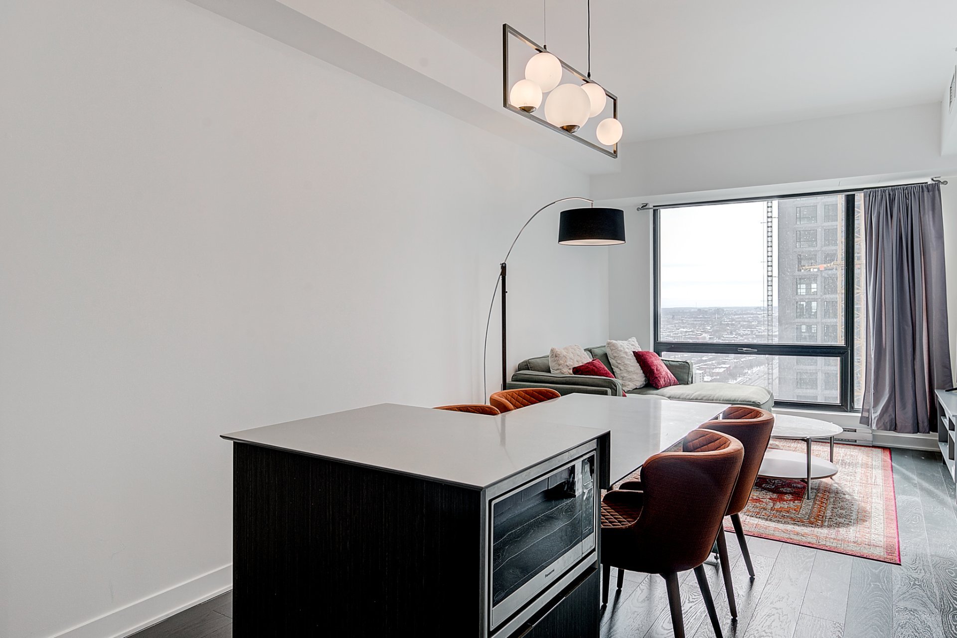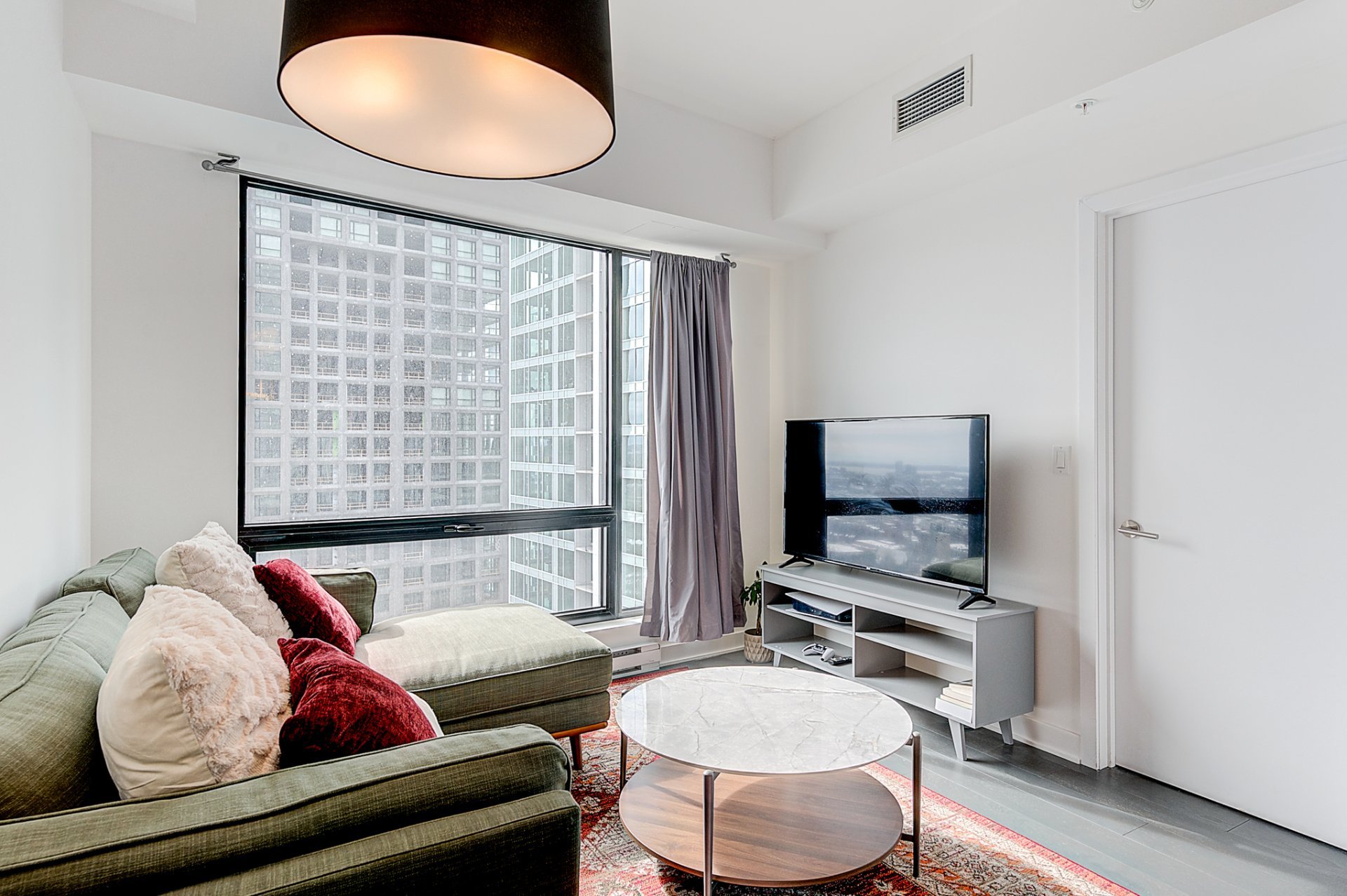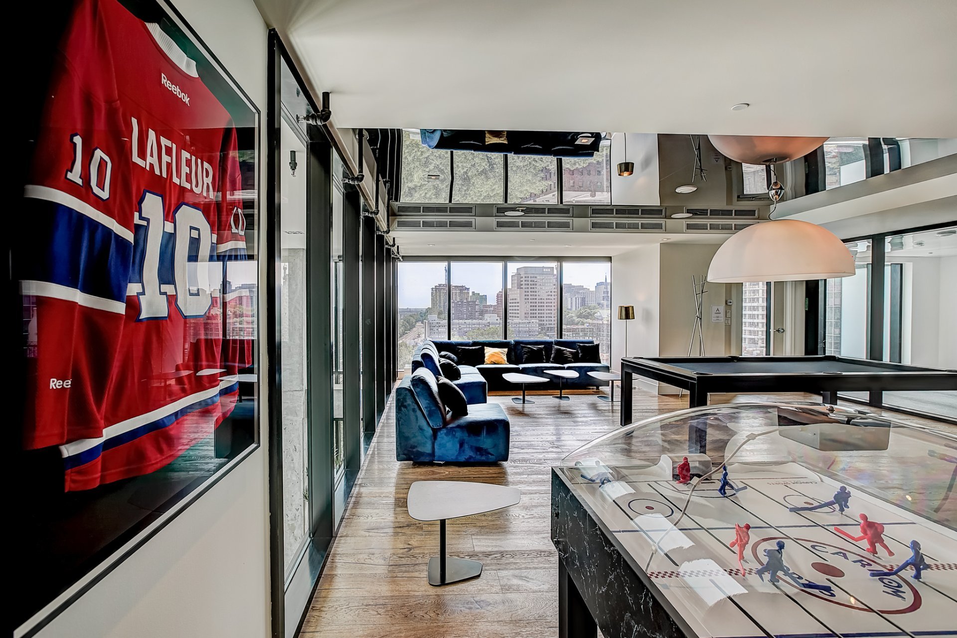 Live in a Luxury complex. 1+1 bedrooms,623 sq. open concept living/dining room. Indoor parking, locker, all appliances, are included in the asking price. Experience living on TOP (27th floor)! TOUR DES CANADIENS is Montreal's first and only sports- entertainment condominium complex, located in the heart of the city directly on top of the Bell Center- home of the Montreal Canadiens; walking distance to "Gare Windsor" and "Metro Lucien L'Allier".