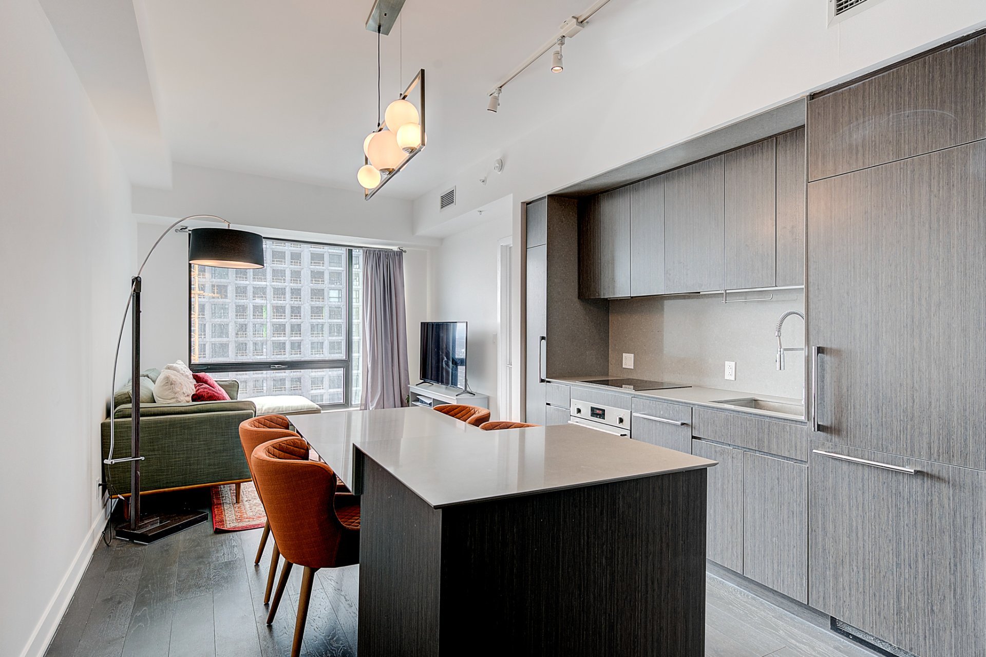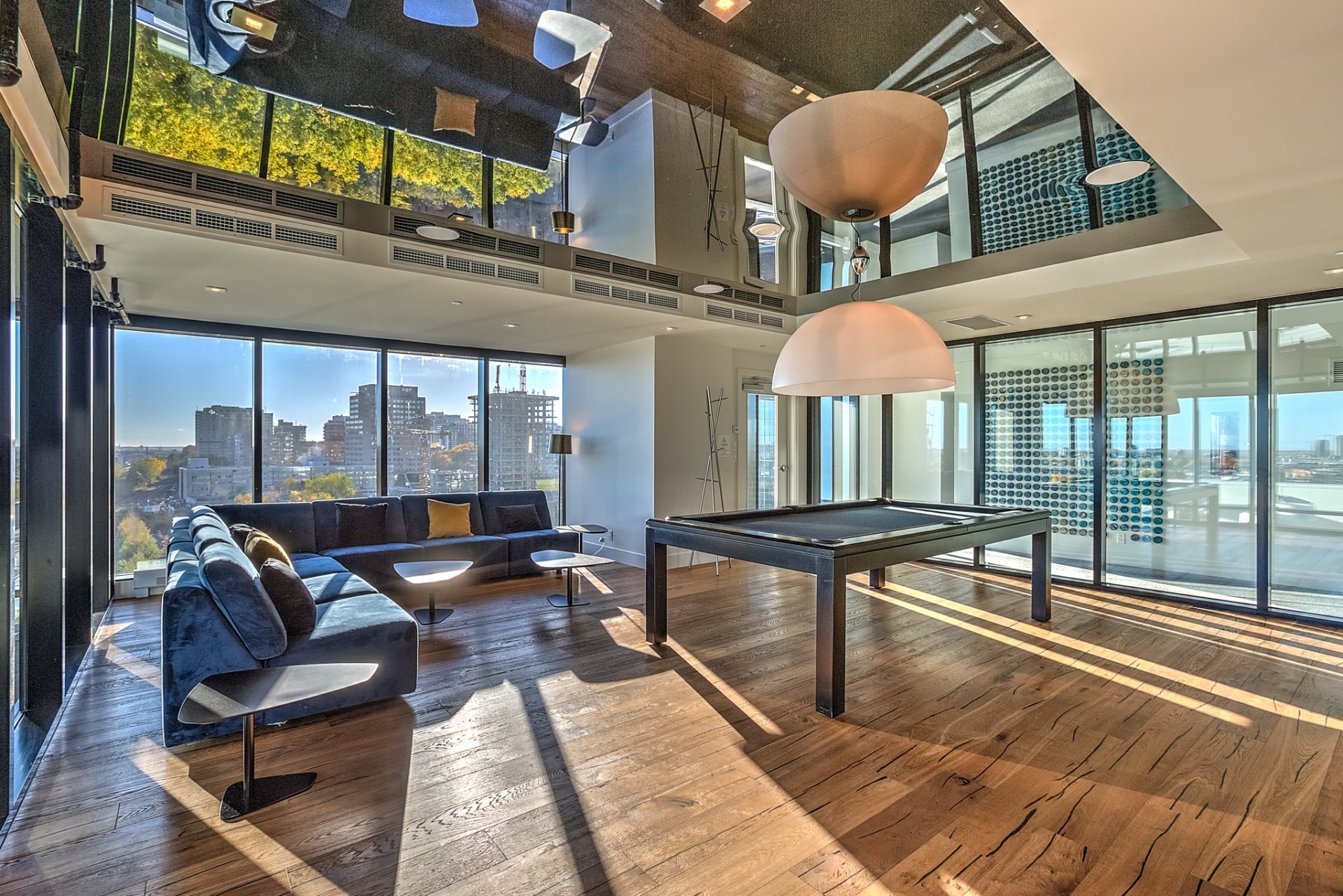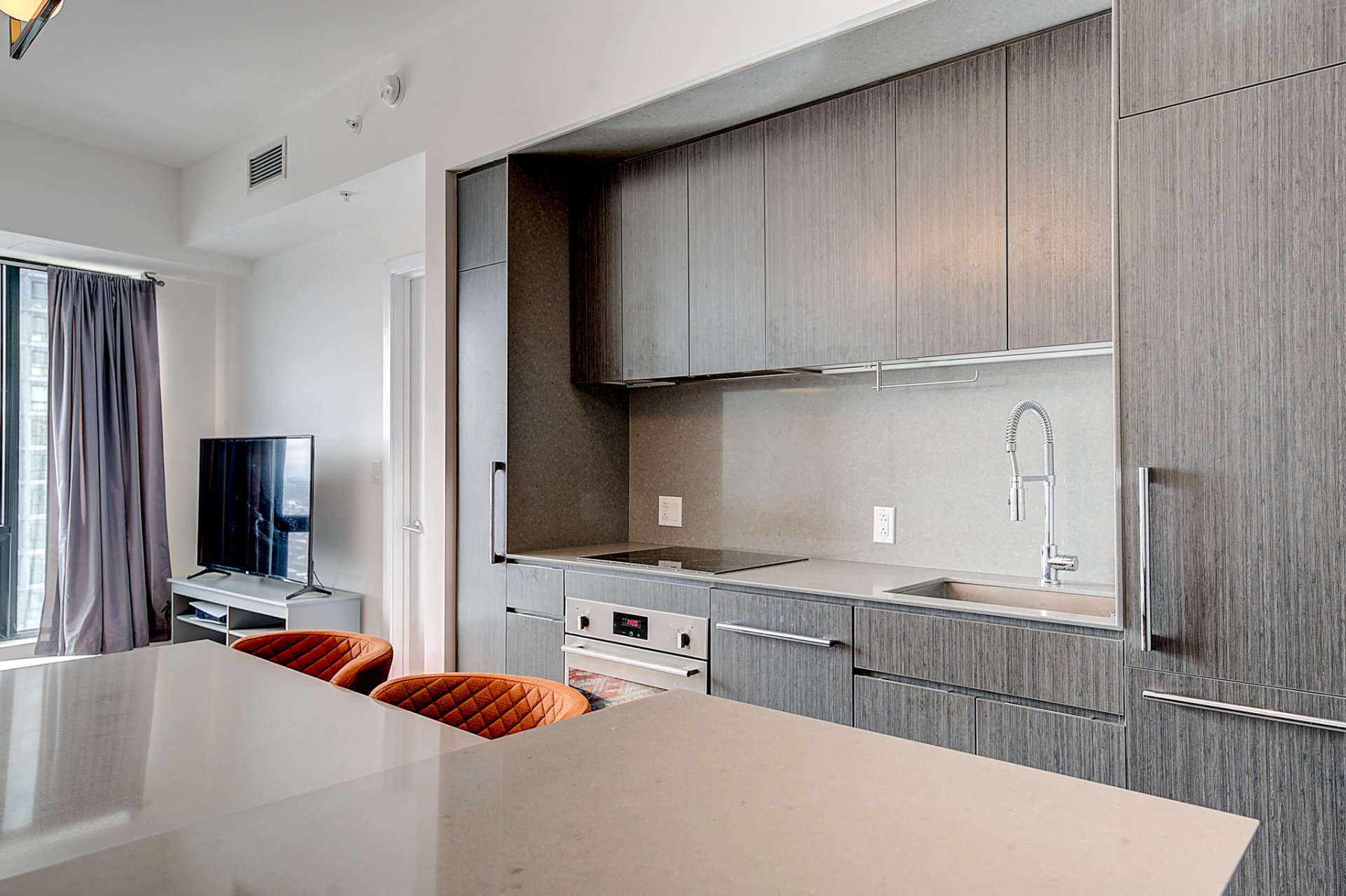 Live in a Luxury complex. 1+1 bedrooms,623 sq. open concept living/dining room. Indoor parking, locker, all appliances, are included in the asking price. Experience living on TOP (27th floor)! TOUR DES CANADIENS is Montreal's first and only sports- entertainment condominium complex, located in the heart of the city directly on top of the Bell Center- home of the Montreal Canadiens; walking distance to "Gare Windsor" and "Metro Lucien L'Allier".